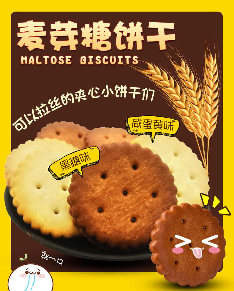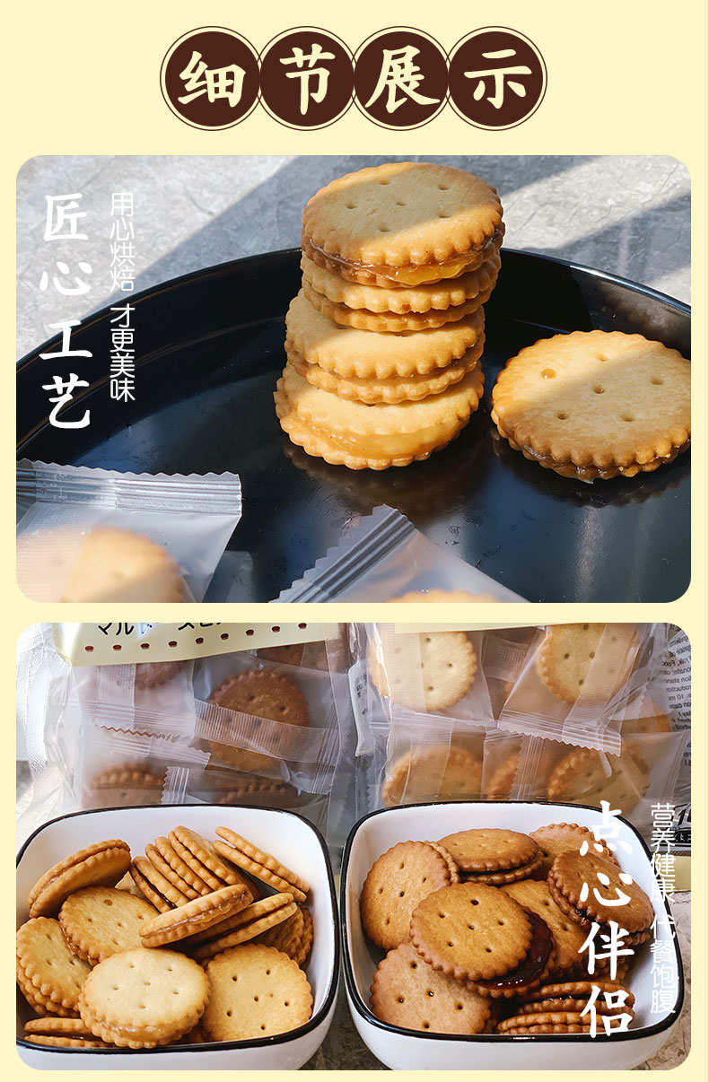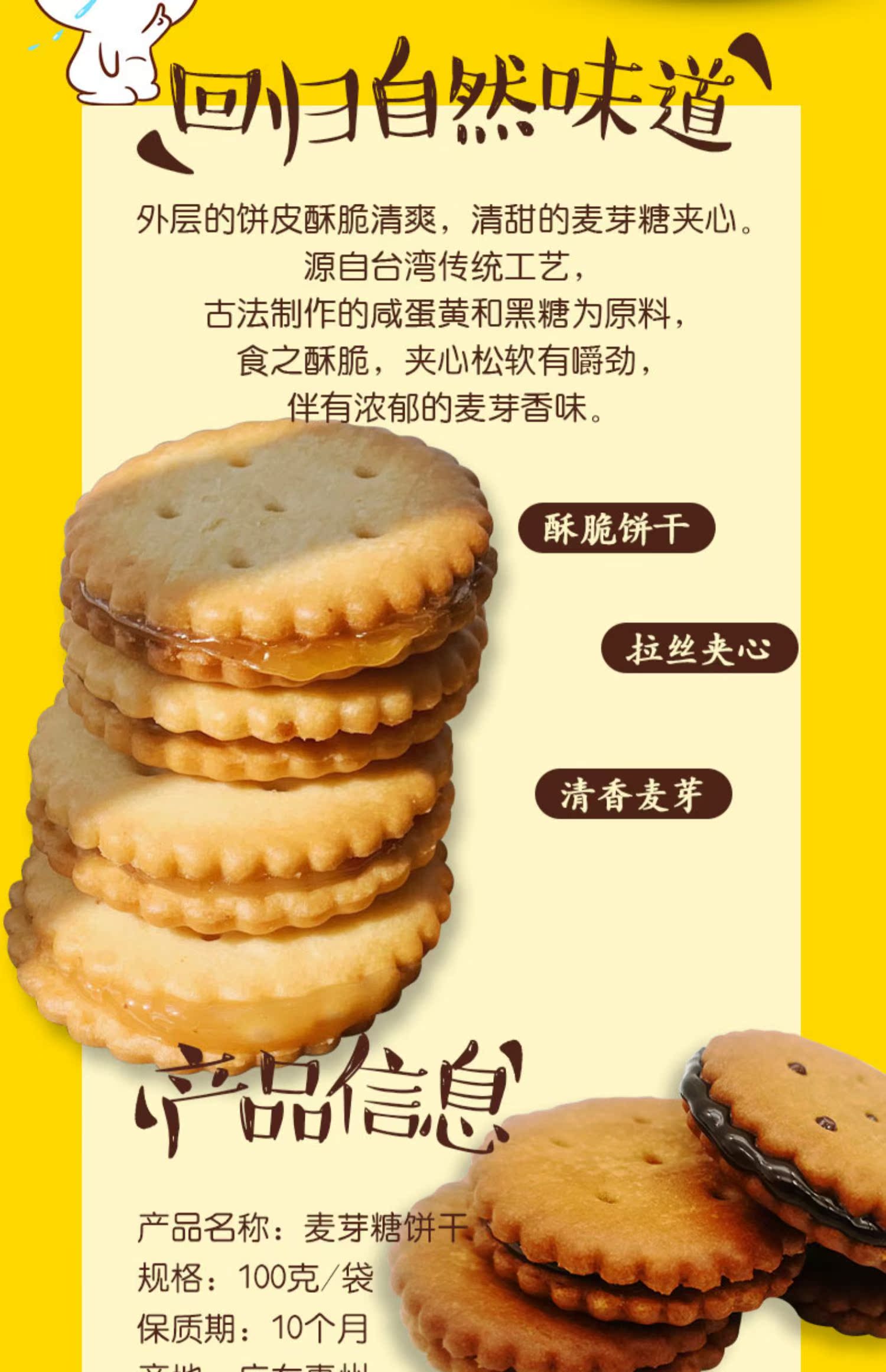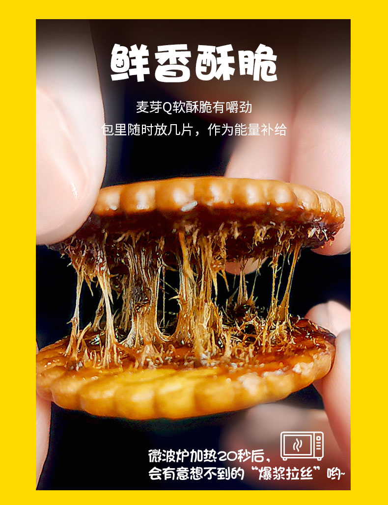 【拍4件!立减券后15.8元到手64袋,贼划算】拔丝夹心,酥脆有嚼劲,口味都很美味,健康营养的麦芽饼干,酥脆口感带着软软的夹心,甜而不腻,补充能量,保证吃过1次就上瘾~