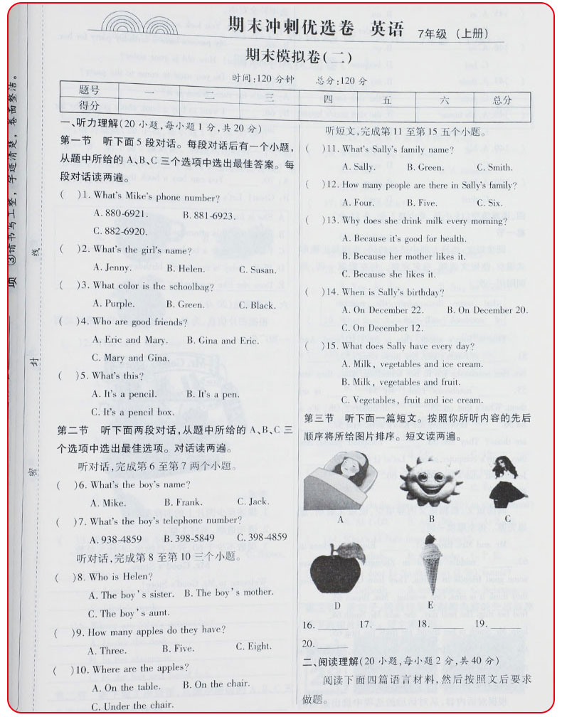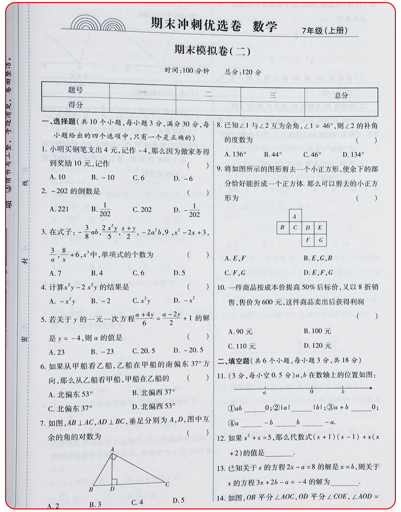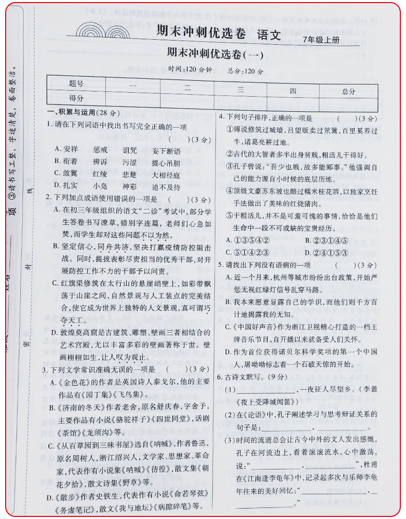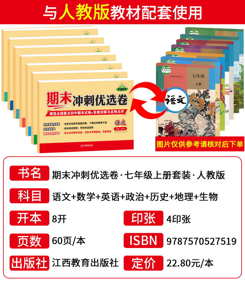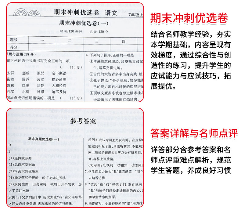 初中七年级上册下册期末试卷全套人教版,全国通用,重点初一精选,与教材同步,内容丰富,单元测试。知识整合,模拟检测。从小为孩子打好扎实基础!