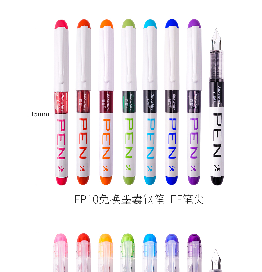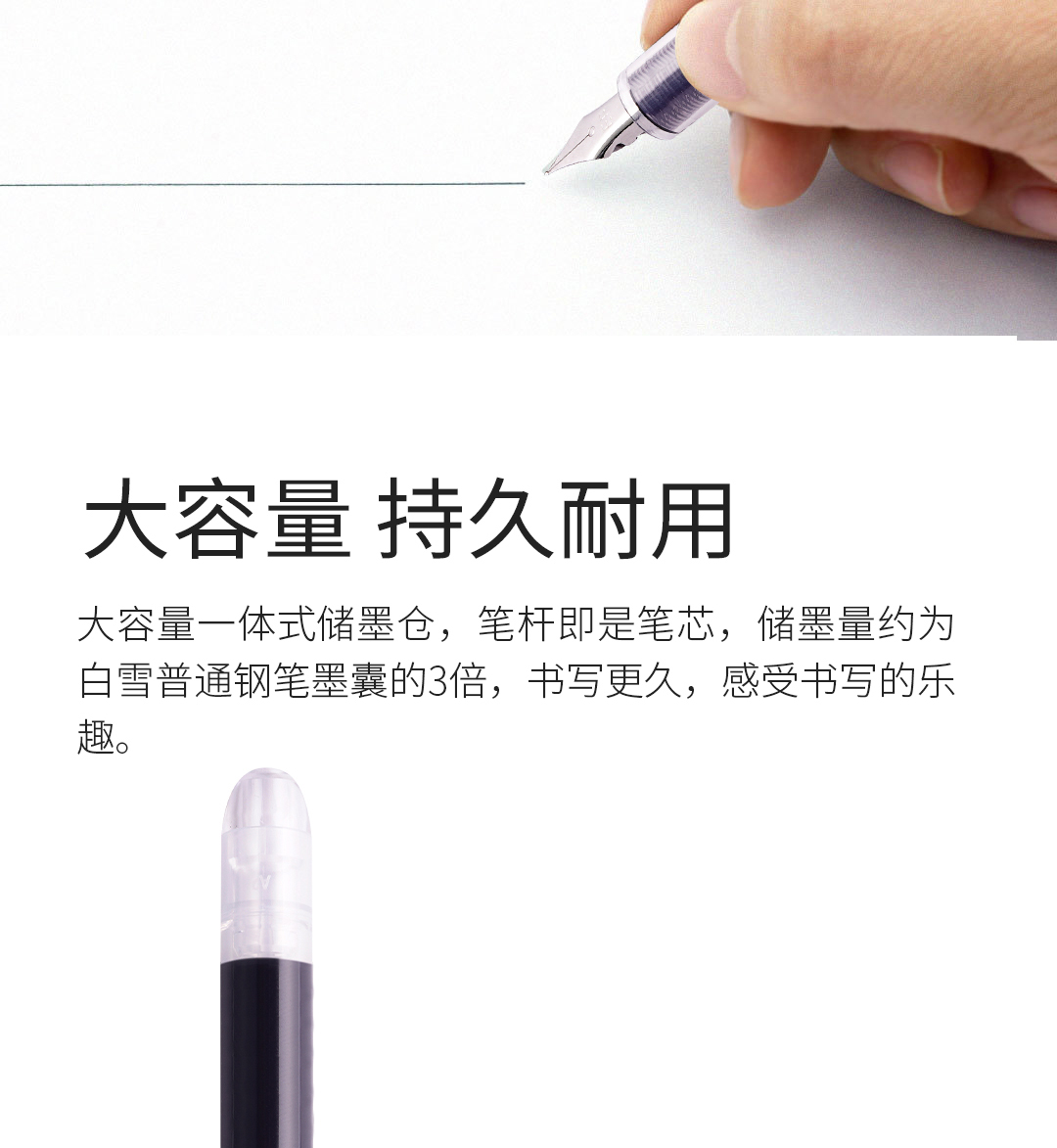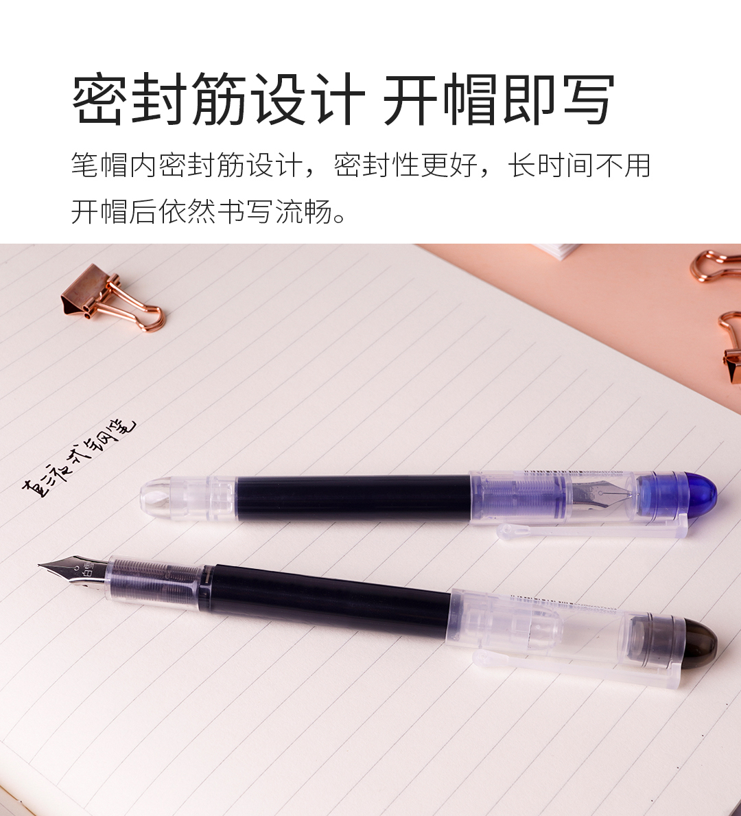 拔帽即写,适用于日常书写练字,8色可选,大容量免换墨囊钢笔,密封筋设计,PP树脂材质