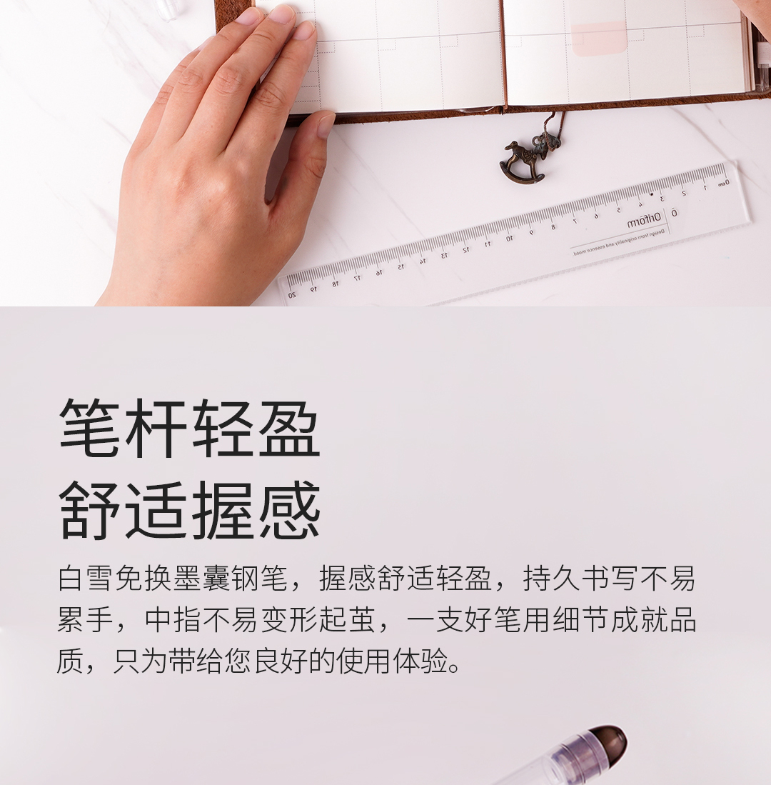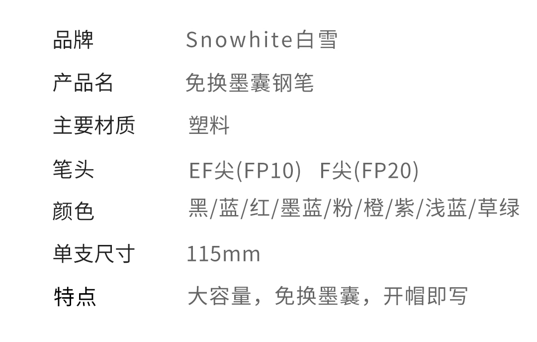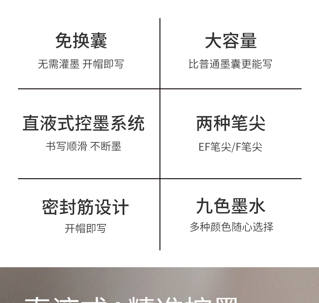 拔帽即写,适用于日常书写练字,8色可选,大容量免换墨囊钢笔,密封筋设计,PP树脂材质