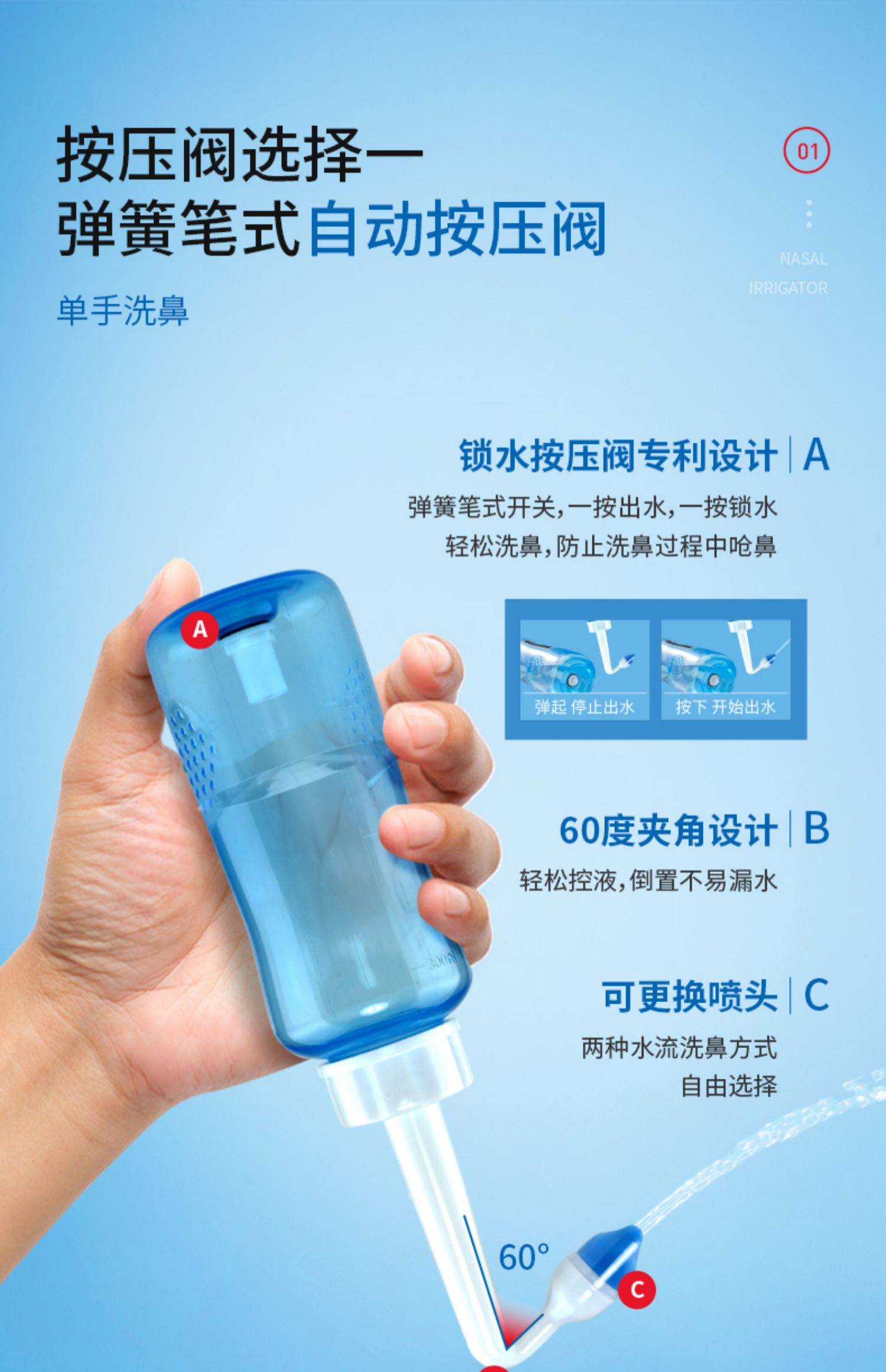 【振德】家用洗鼻喷雾,可调式鼻腔清洗剂,成人儿童均适用,浓度0.9%护理型,正规械字号,不含化学药剂,适用于多种鼻腔问题清洁,快给鼻子洗洗澡~
