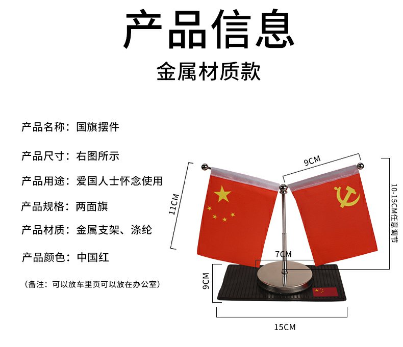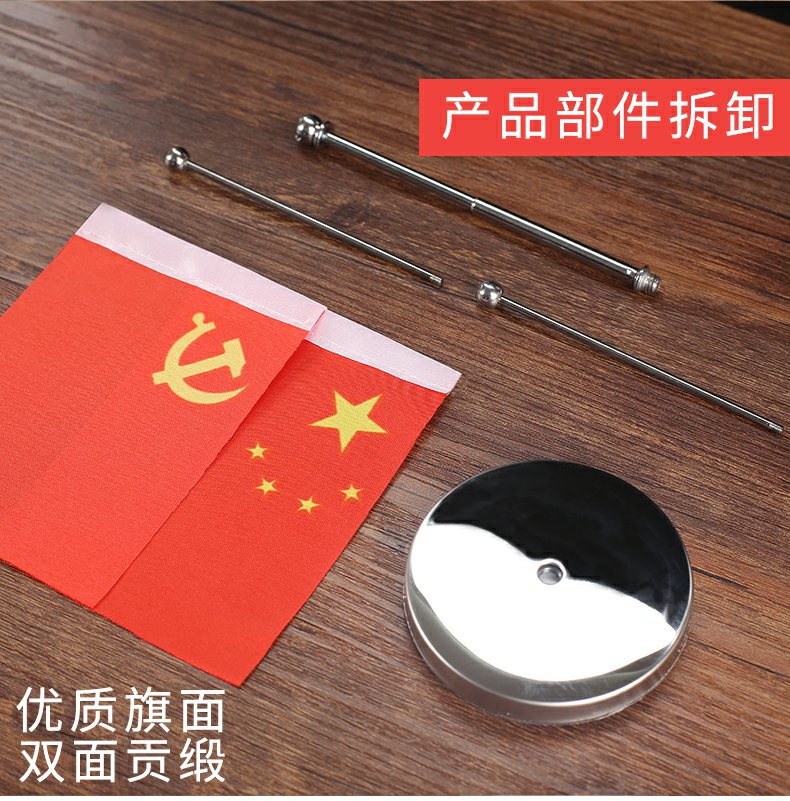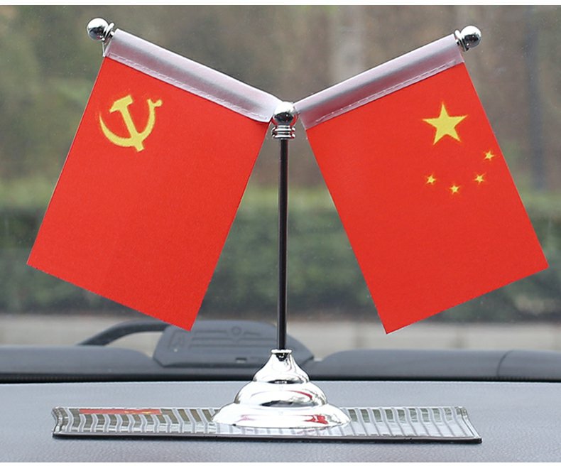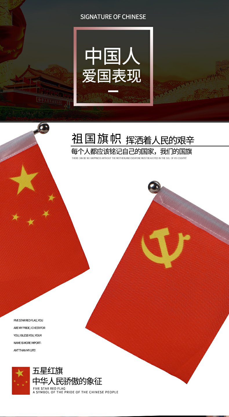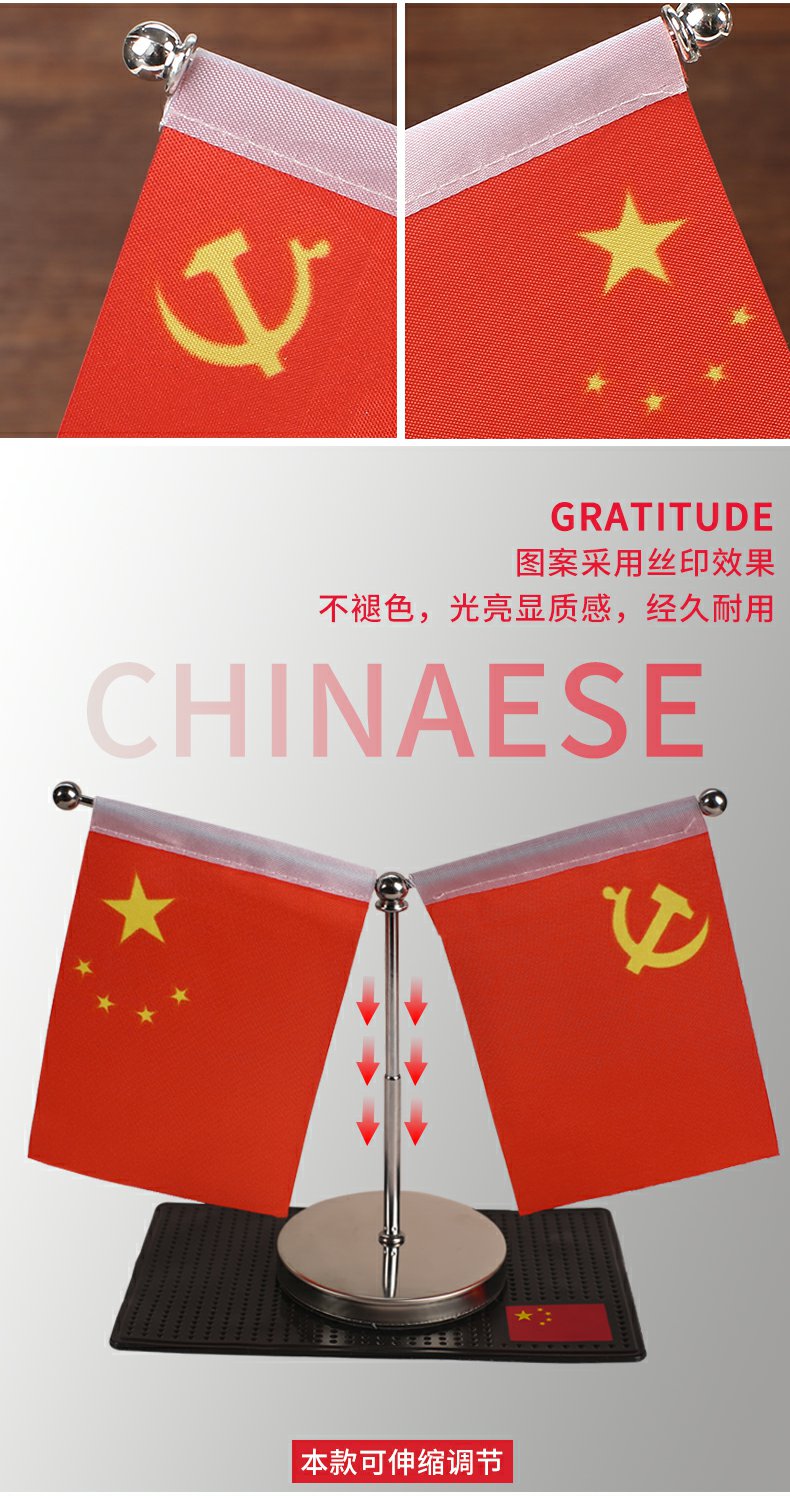 车载小红旗摆件中控台党旗汽车用品大全,五星红旗国旗车内饰用品装饰,双层加厚贡缎面料,合金伸缩旗杆!
