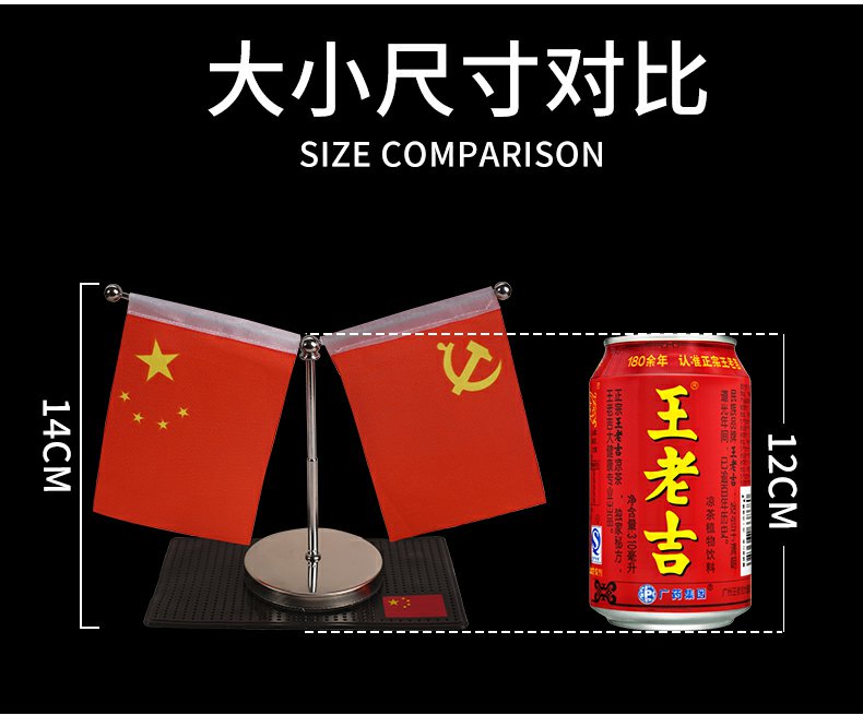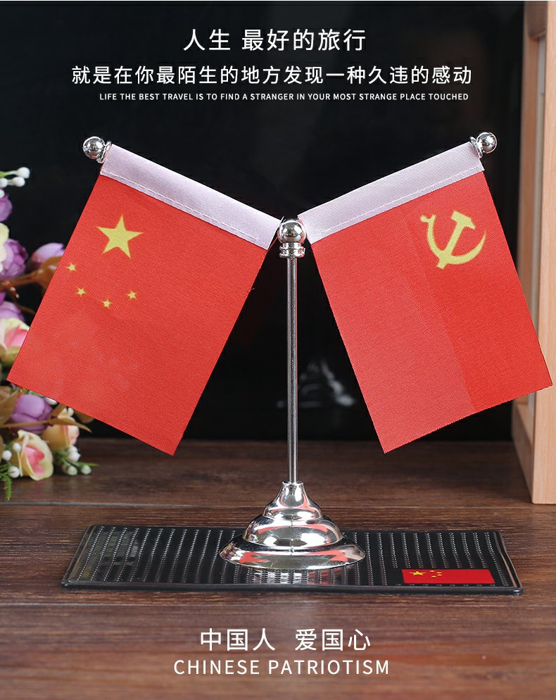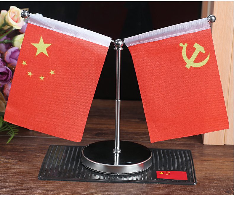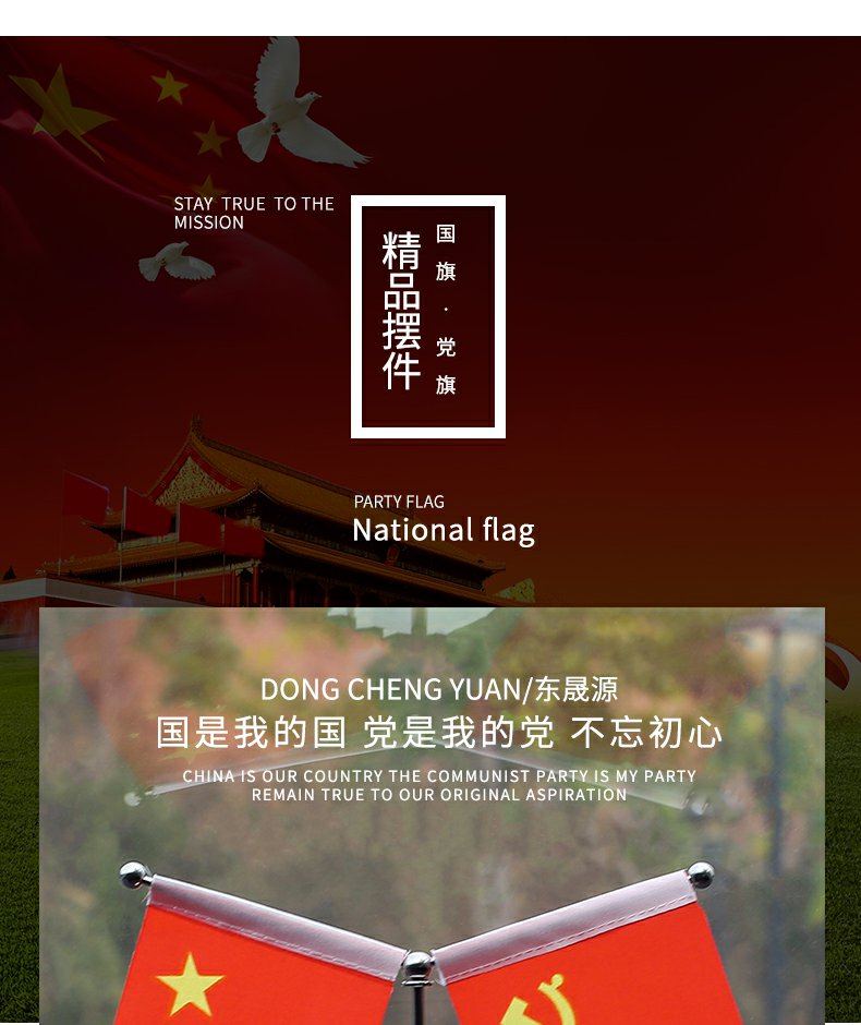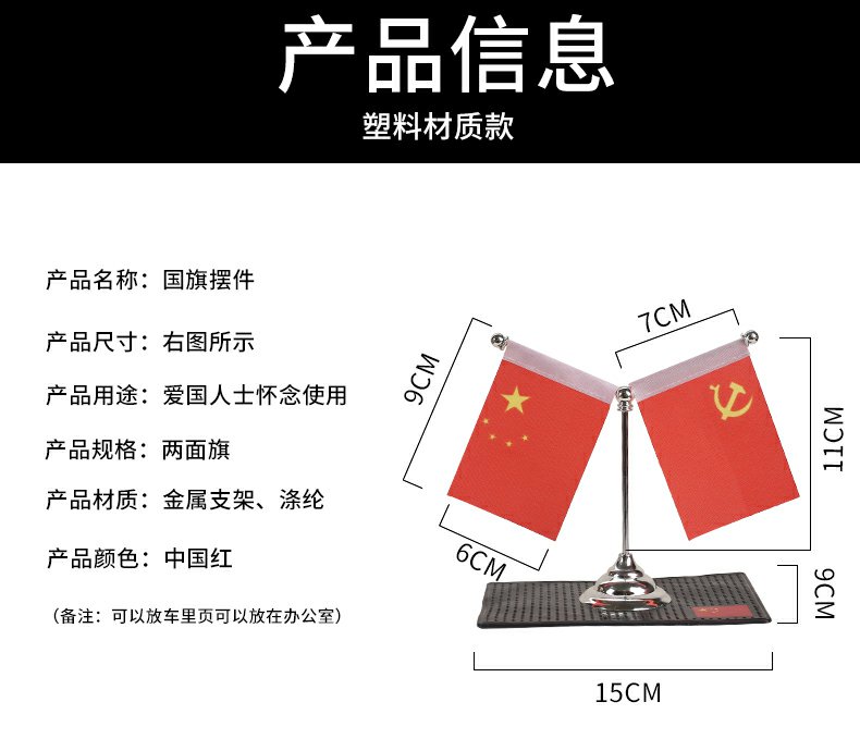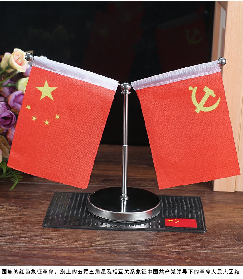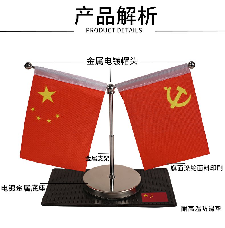 车载小红旗摆件中控台党旗汽车用品大全,五星红旗国旗车内饰用品装饰,双层加厚贡缎面料,合金伸缩旗杆!