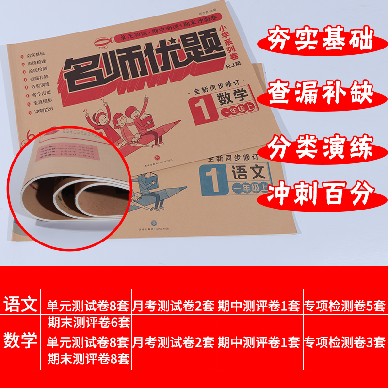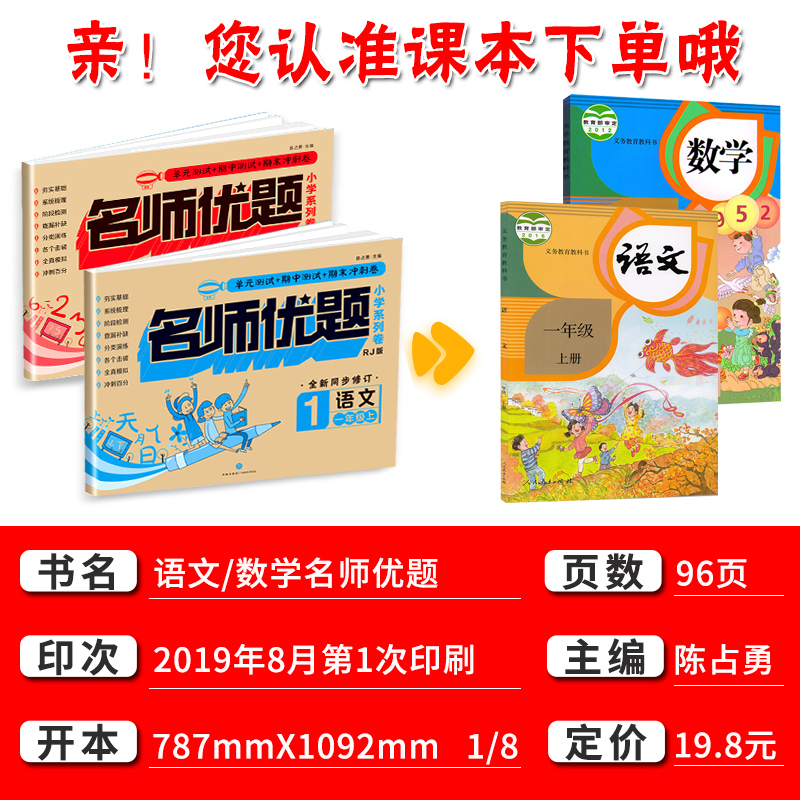 老师推荐!【语文+数学,全套2本】人教版教材同步试卷,各位家长们,开学一定要给孩子屯一套练习,黄冈名校同步训练,为了孩子你需要这样一份试卷,名师便携,助力提升,让孩子赢在起跑线上~【赠运费险】