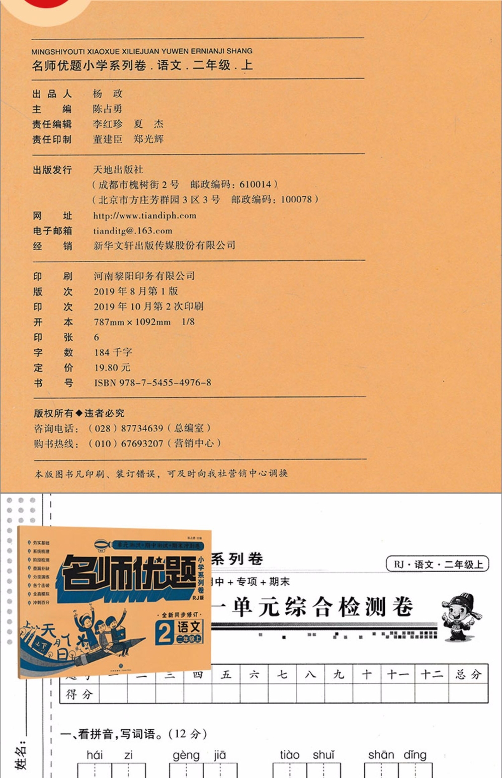 老师推荐!【语文+数学,全套2本】人教版教材同步试卷,各位家长们,开学一定要给孩子屯一套练习,黄冈名校同步训练,为了孩子你需要这样一份试卷,名师便携,助力提升,让孩子赢在起跑线上~【赠运费险】