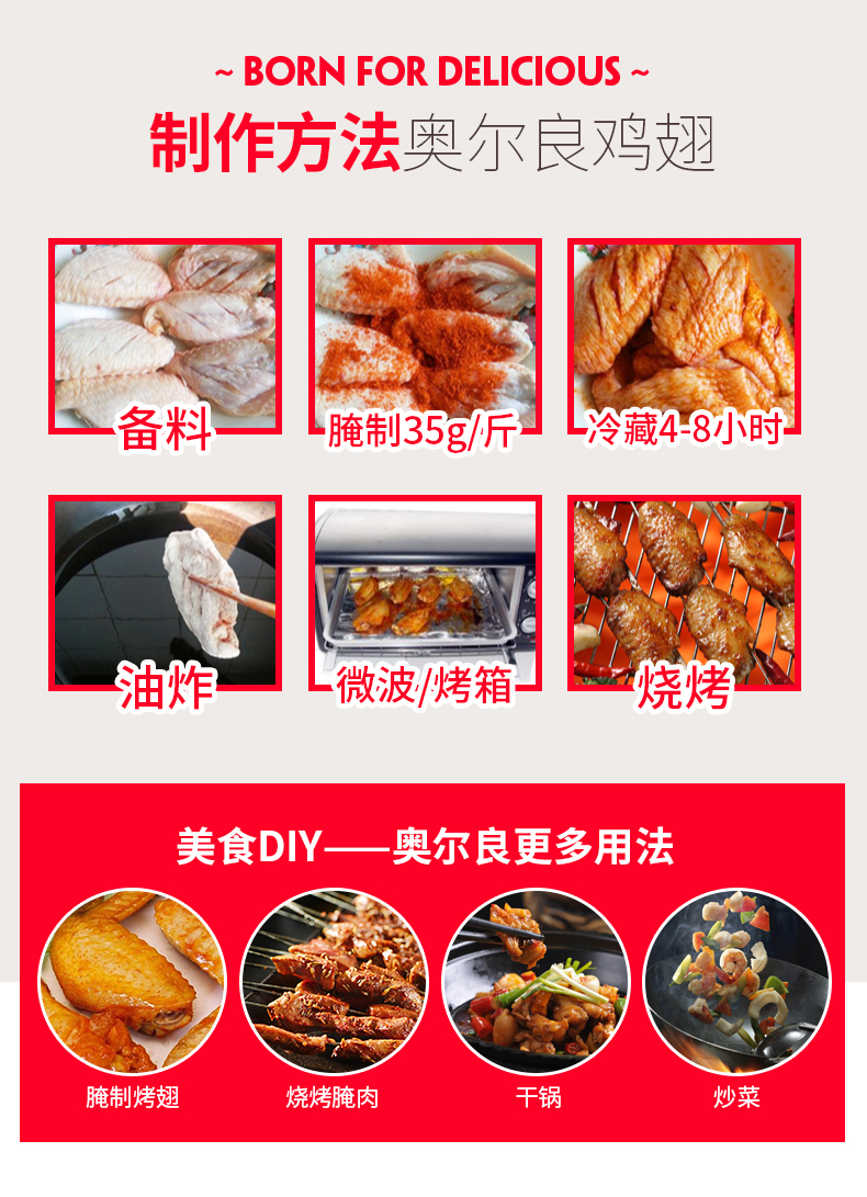 新奥尔良腌料,KFC专用烧烤调料,粉质细腻,味道香浓,挑战你的味蕾,小伙伴们,夏季怎能不吃烤翅呢!赶紧给家人朋友一道美味吧!【破损包退】