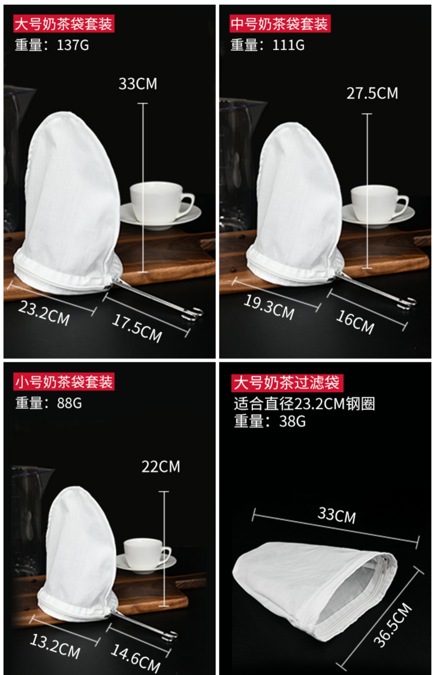 【唐雅】奶茶过滤袋过滤网滤茶袋,高密度过滤网,环保纯棉材质,纯棉布袋安全卫生,滤茶/滤豆渣/滤牛奶。