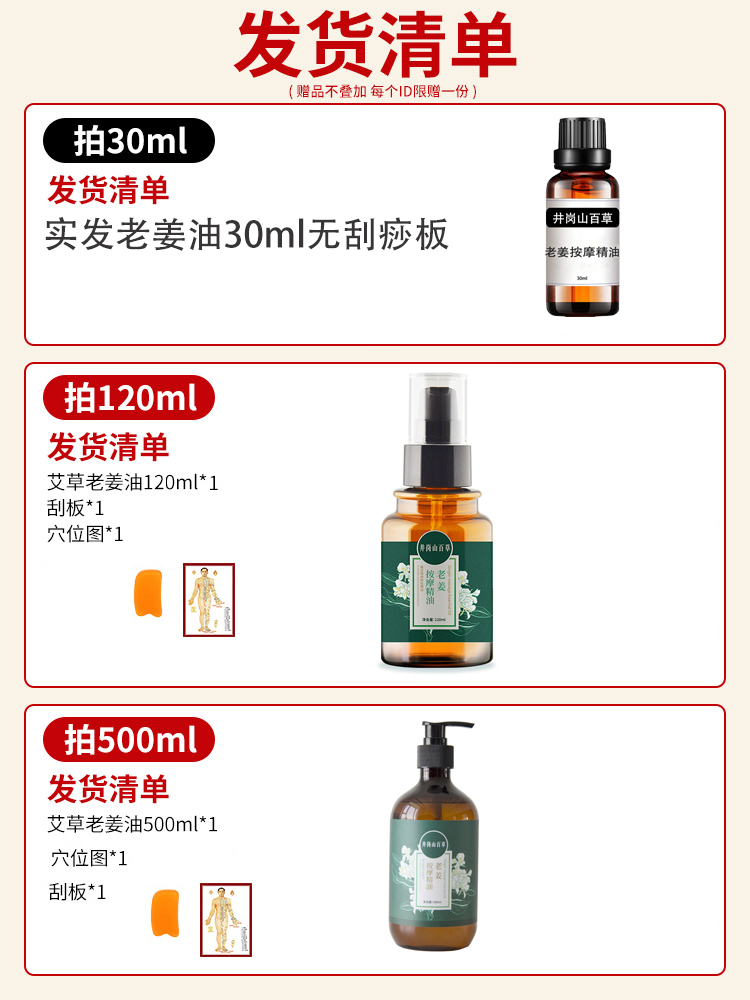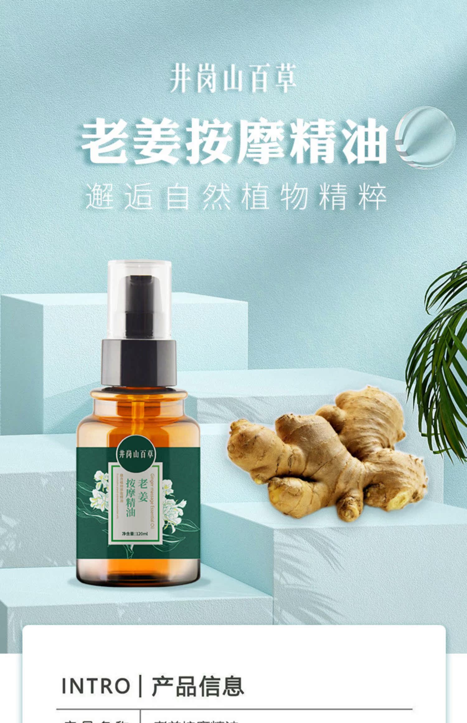下单赠:刮痧板+经络图!井岗山百草!老姜按摩精油,全身按摩,舒缓酸僵,舒缓身体,安全配方,中科检测报告!「7天无理由退换」