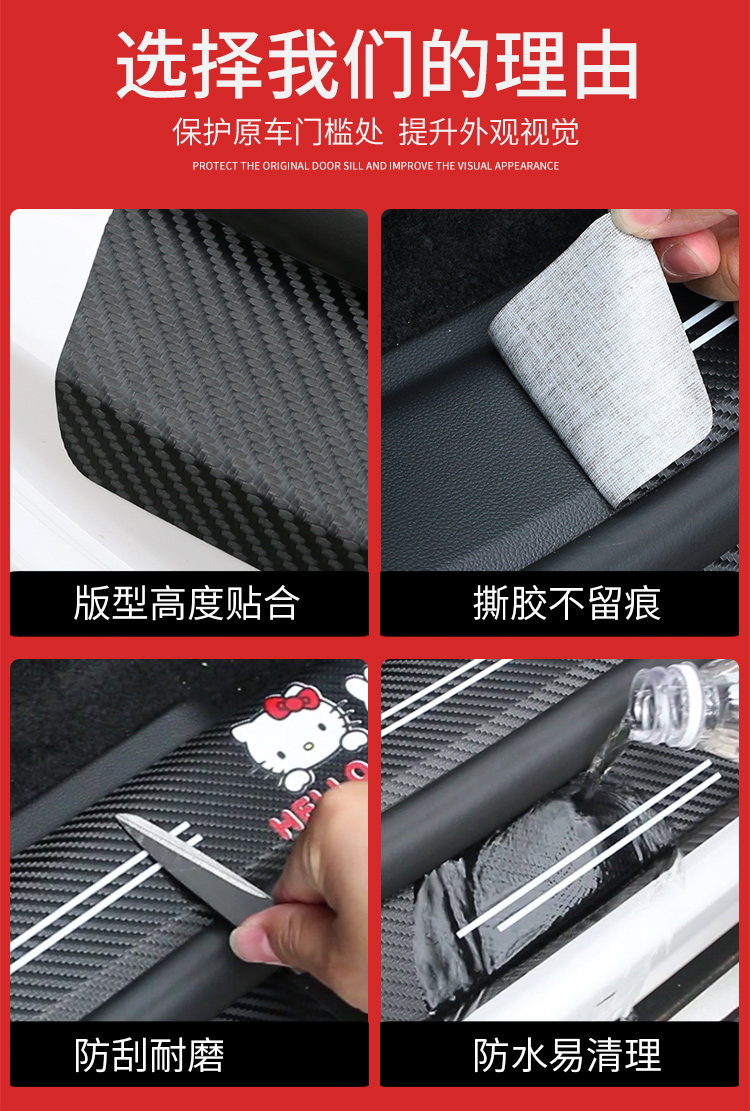 车门槛条汽车防踩踏通用自粘碳纤维迎宾车踏板包边防滑门边防撞贴,为自己的爱车做好最安全的保护,自带粘贴,持久耐用,【包邮】