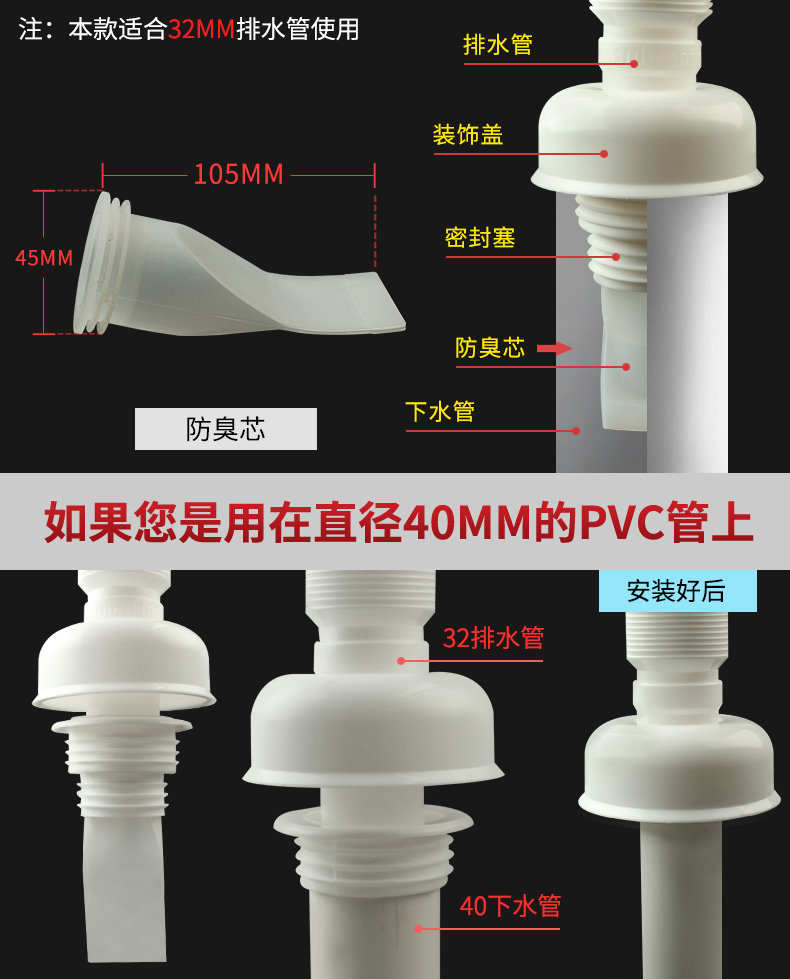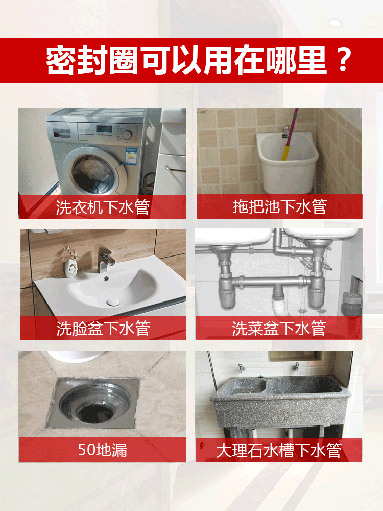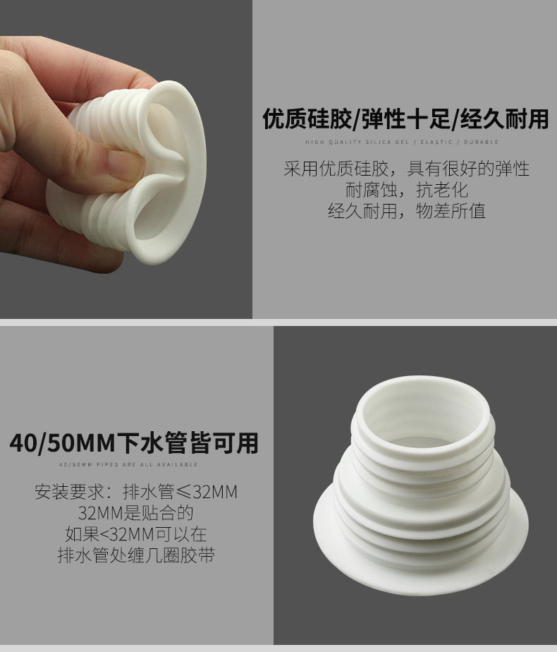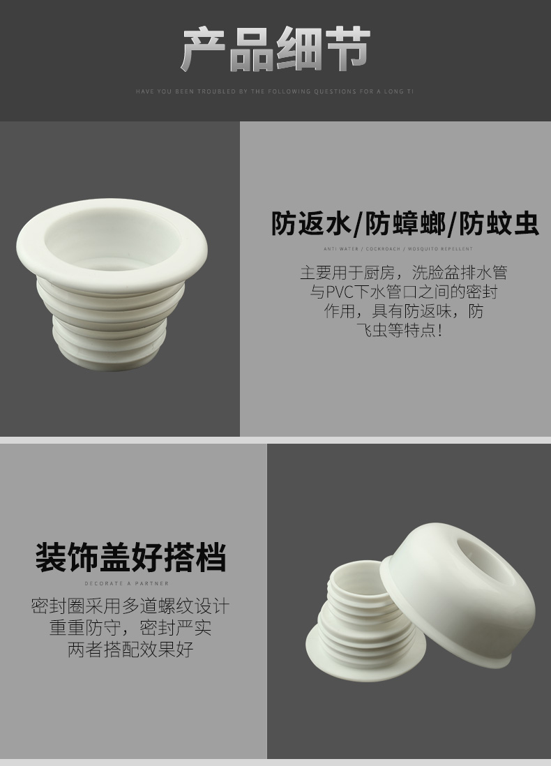 【买二送一】优质pvc材质,原厂直销,厨房、卫生间、洗衣机通用,防蚊虫蟑螂,防异味,防反水,优质硅胶,弹性十足!!