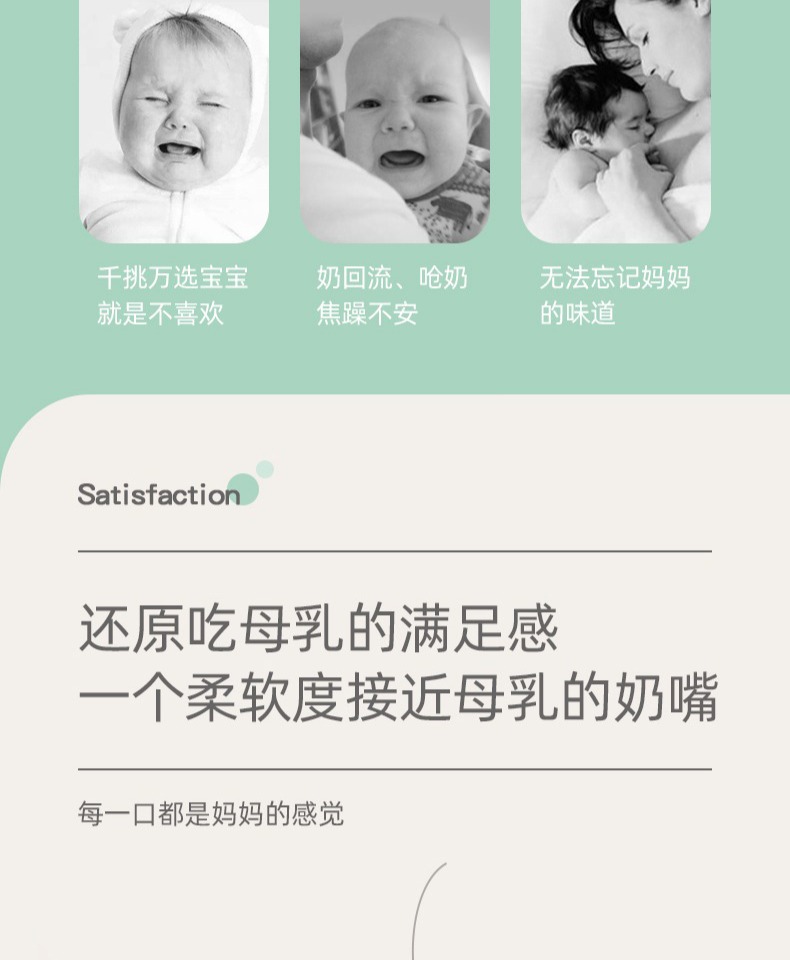 接近妈妈的母乳触感,宝宝一吸就爱上的奶嘴,还原吃母乳的满足感,硅胶材质加螺旋设计,耐高温,拒绝细菌,宝宝入口更安全~【赠运费险】
