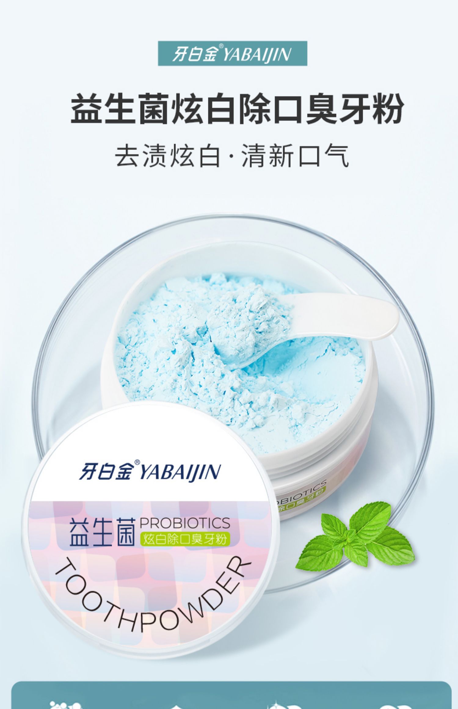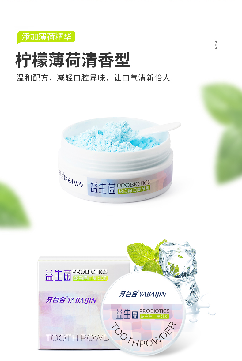 【买2发3盒】益生菌,炫白除口臭牙粉!深入齿缝清洁牙渍牙垢,清新口气,温和配方,减少牙菌斑形成,刷掉黄牙还你一口炫白牙齿!