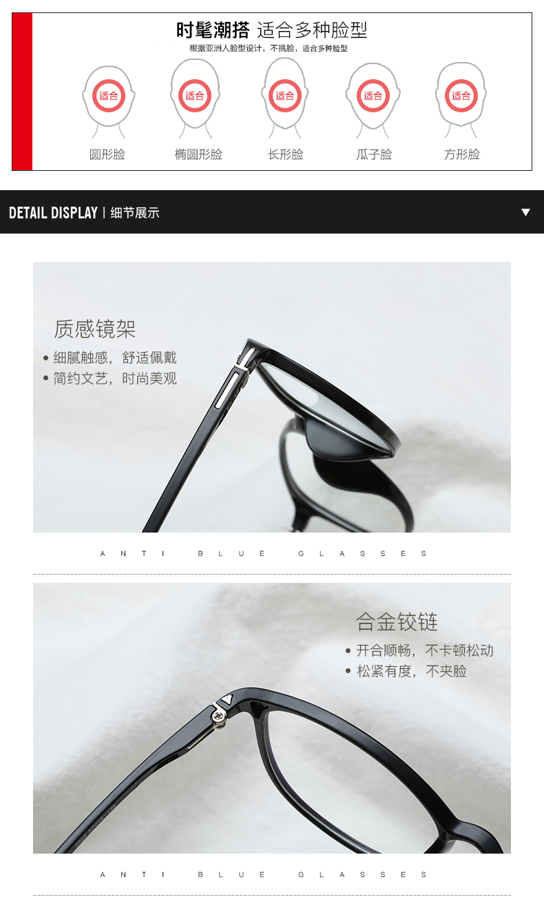 无度数抗手机近视眼睛,一副很轻的防辐射防蓝光眼镜,纤薄镜架,轻薄体验,修饰脸型,无感佩戴.