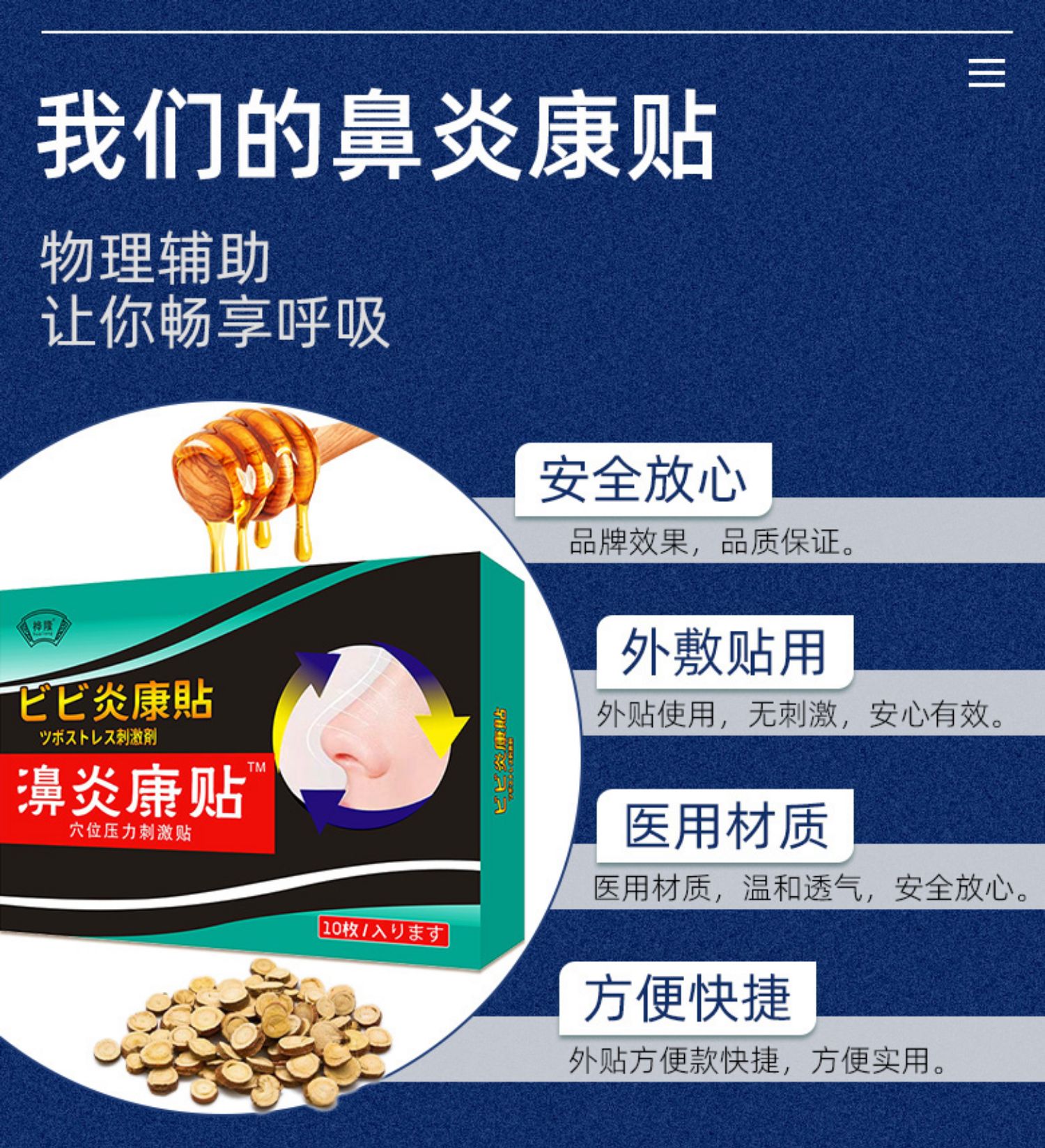 通鼻神器!桦隆鼻炎贴!优选高弹透气材质,撕贴方便,一贴就通气~物理式快速扩张鼻腔,增大通气量,可有效缓解鼻炎、鼻痒、流鼻涕等症状,无药物副作用!大人儿童均可使用,活动仅5.9,抢!!