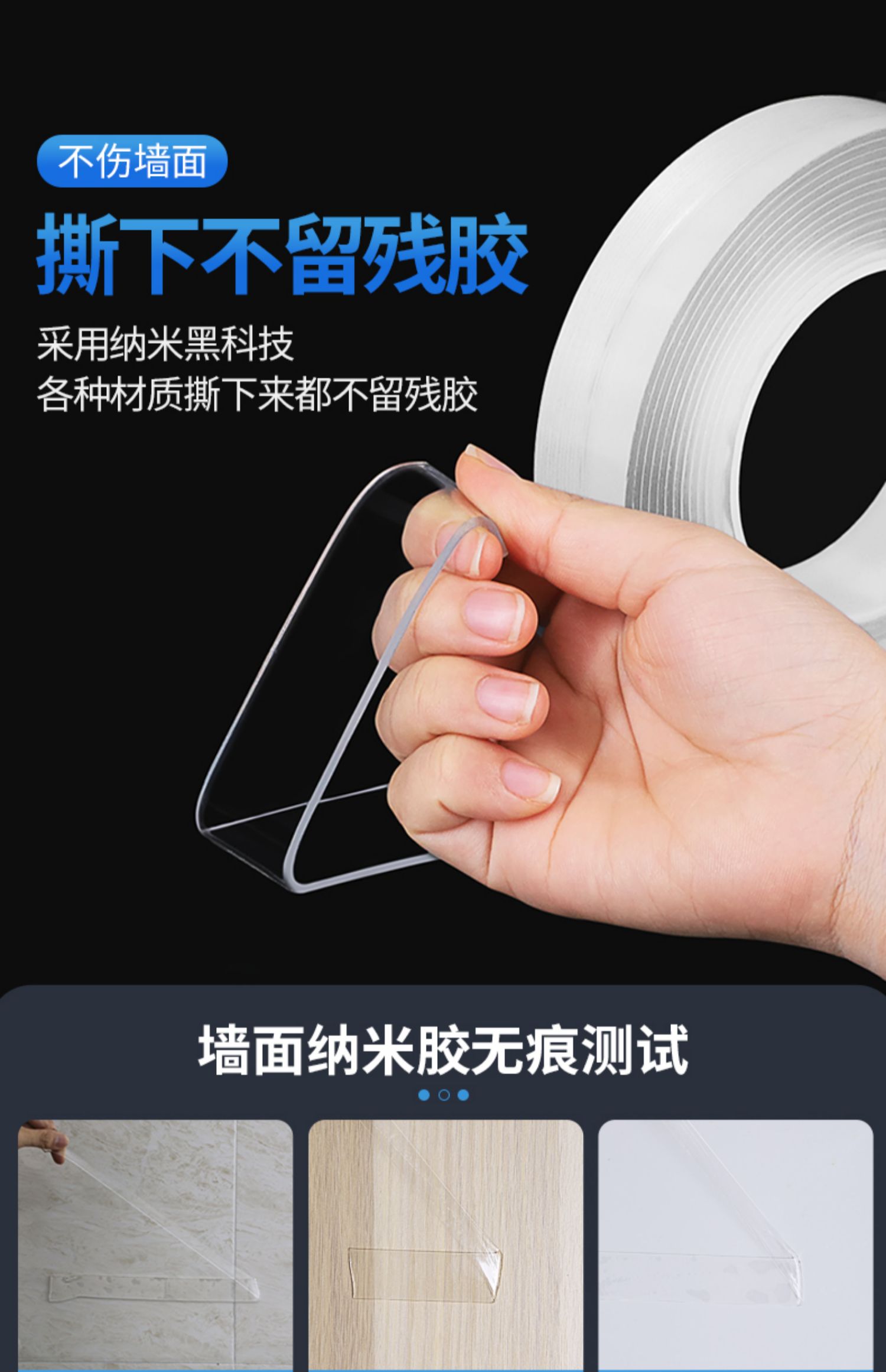 【买一送同款!赠送剪刀一吧】抖音同款!纳米强力双面胶,高粘度吸附,防水透明,撕下不留痕迹,耐高温不易掉,抗拉伸,可水洗反复使用哦~