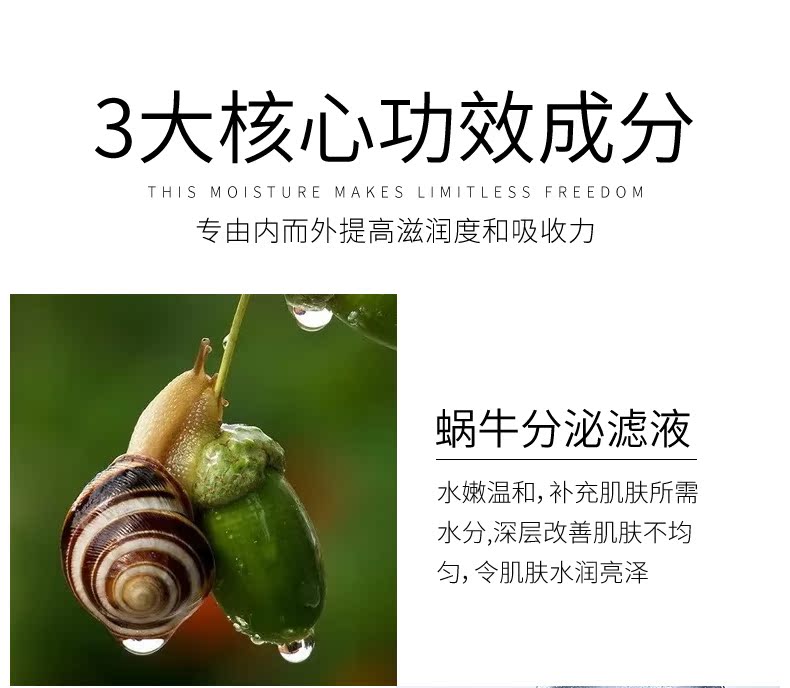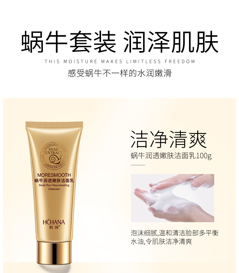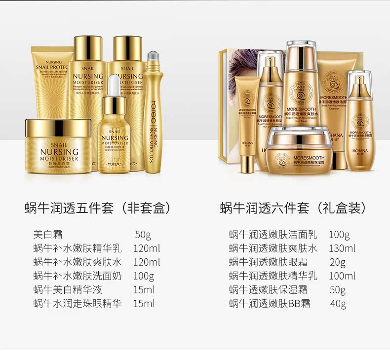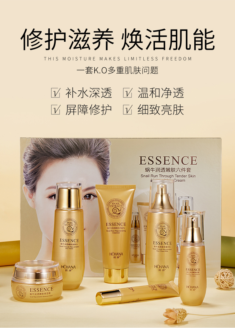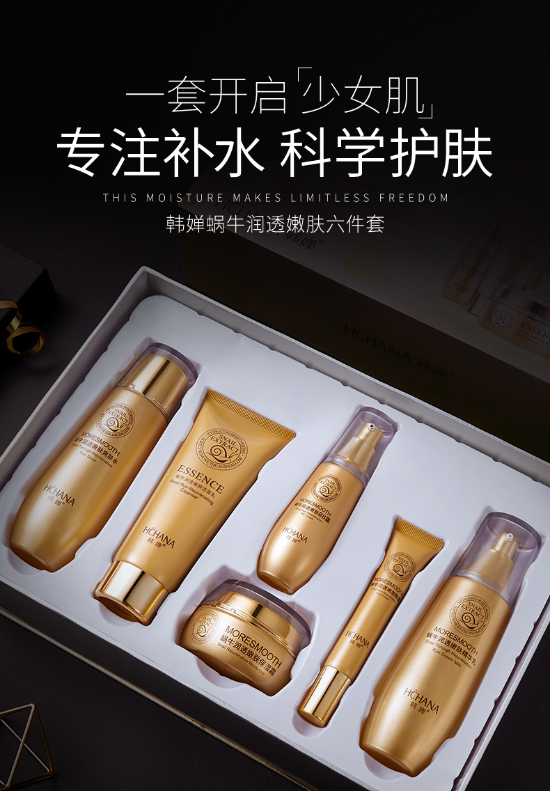 美丽俏佳人推荐,专柜大牌,明星达人力荐套装!韩婵蜗牛润透嫩肤6件套,专注补水,科学护肤,修护滋养,焕活肌能,蕴含丰富的蜗牛粘液提取物,水润保湿!