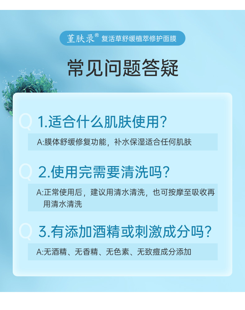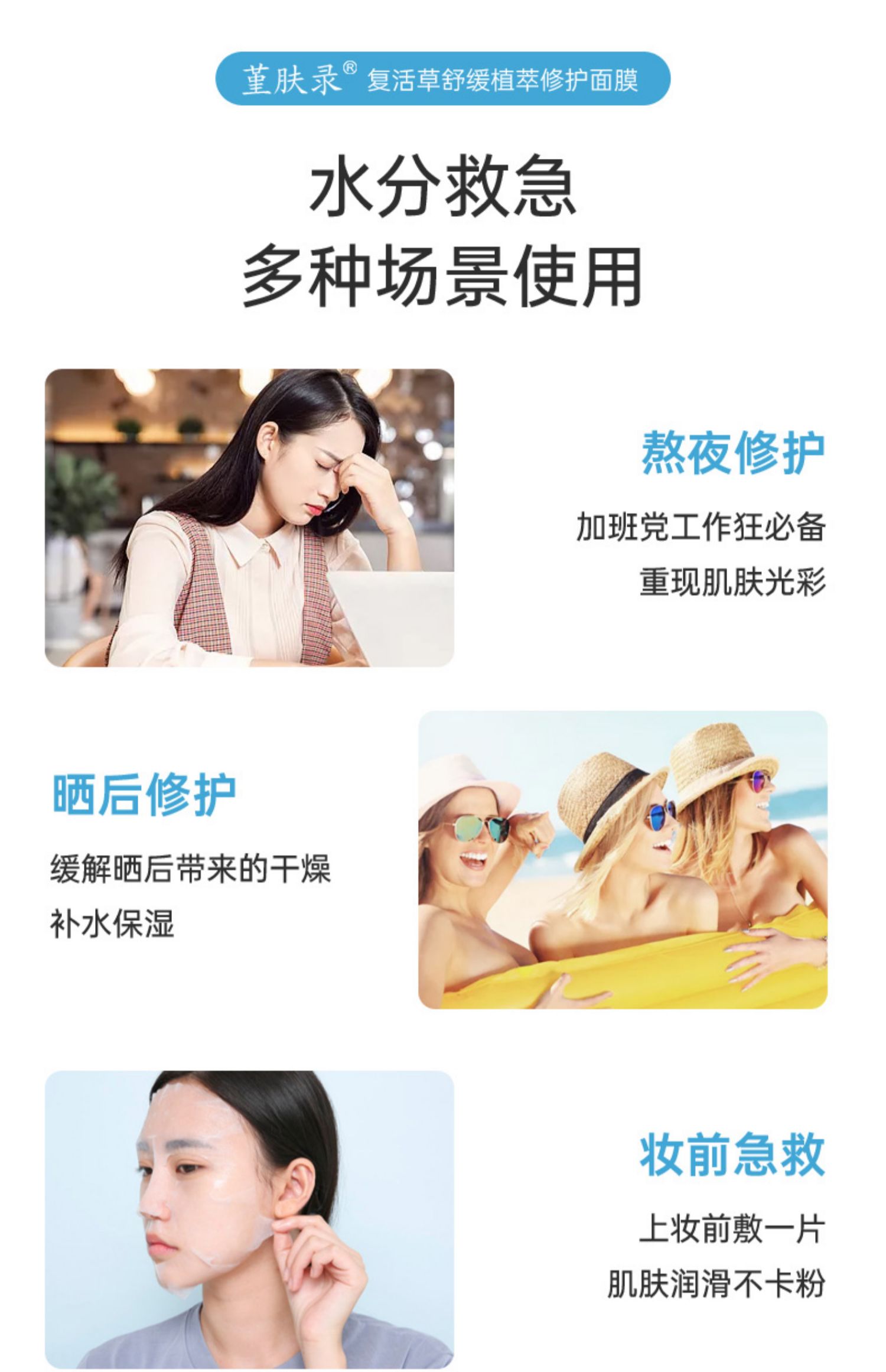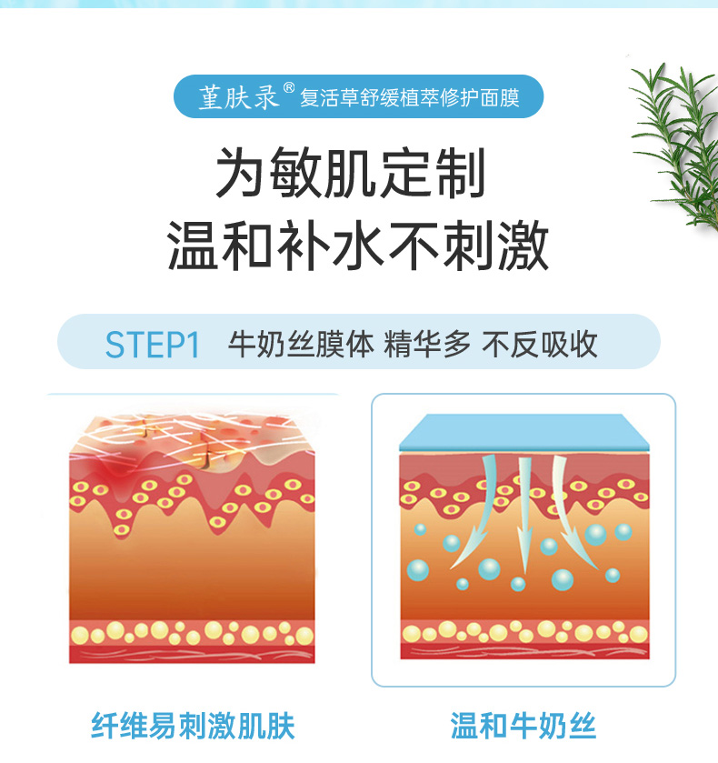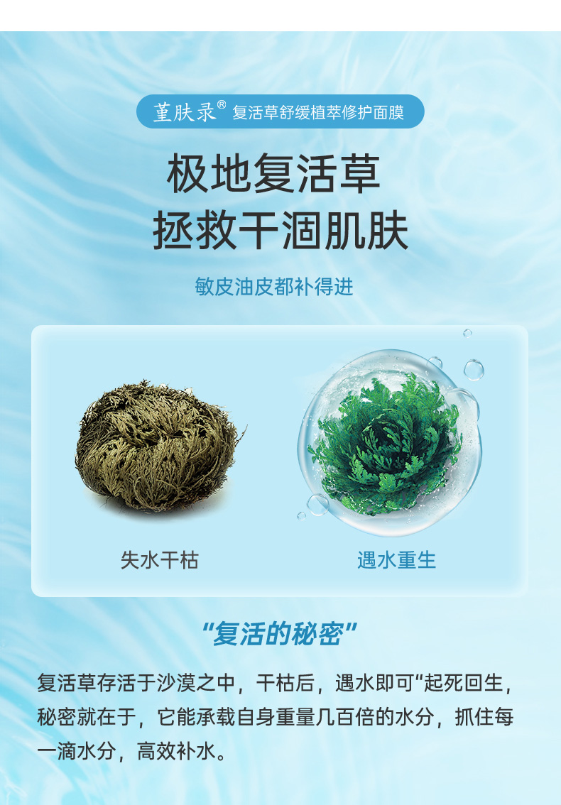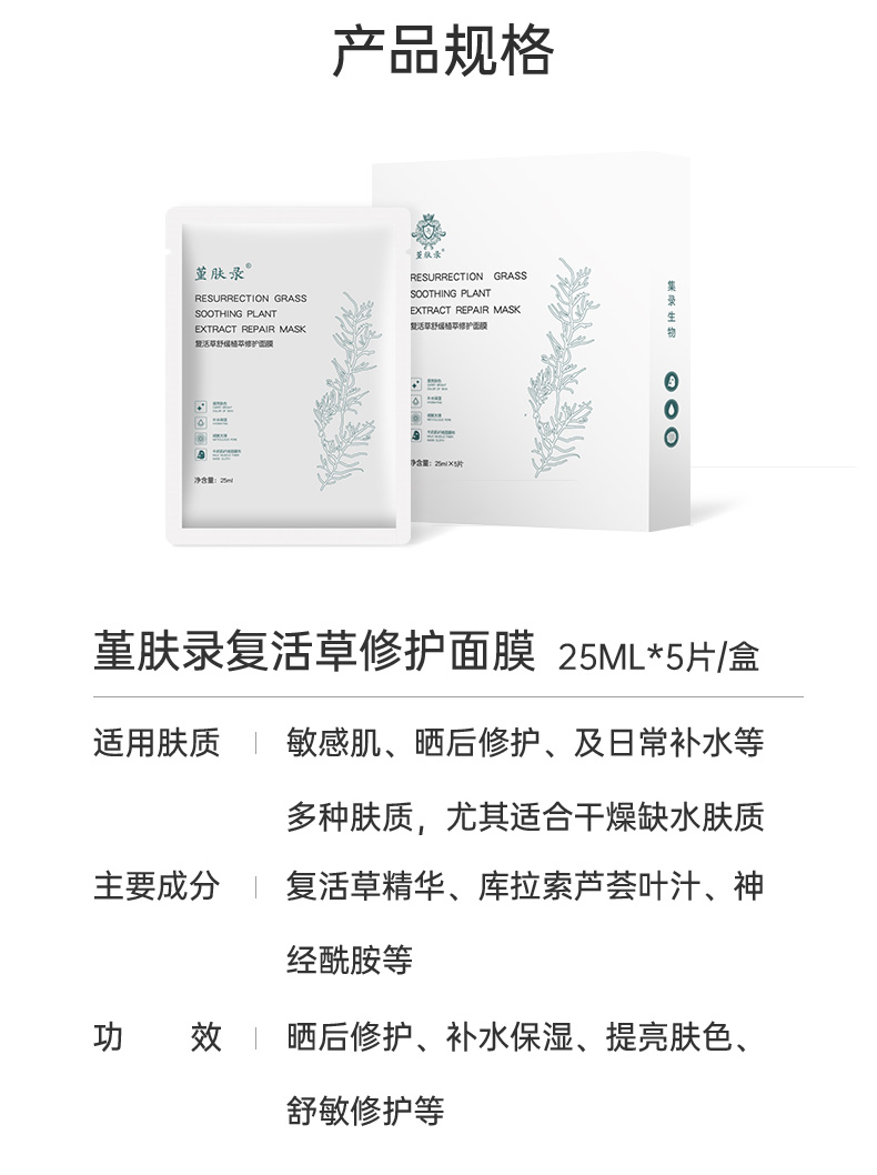【堇肤录】复活草舒缓植萃修护面膜,极地复活草,拯救干涸敏感受损肌肤,多效高能修护。牛奶丝膜体,精华多,不返吸收,消炎修复,提亮肤色,恢复肌肤弹滑水润。【赠运费险】