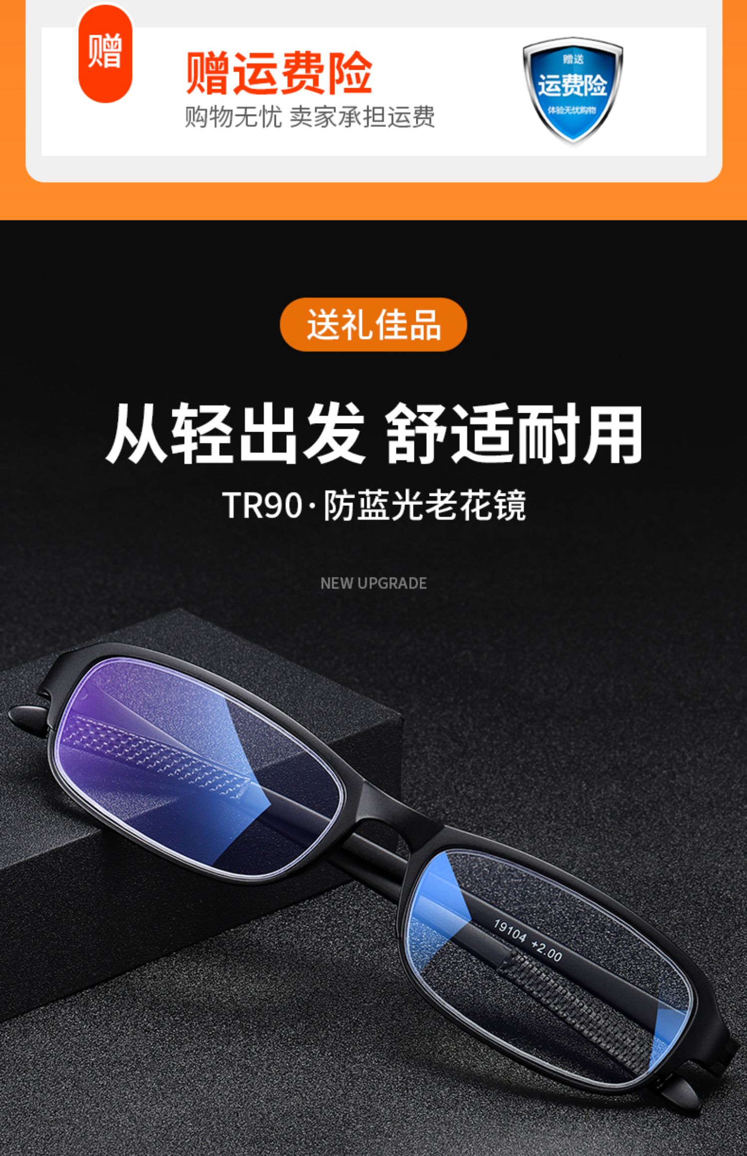 【可签到】送长辈优先选择!时尚老花镜,多度数可选,防辐射,防蓝光,防紫外线,360度不弯曲,耐磨轻巧,佩戴舒适,不夹脸不压鼻,男女通用,呵护老人健康,送爸妈送长辈很贴心!【赠运费险】