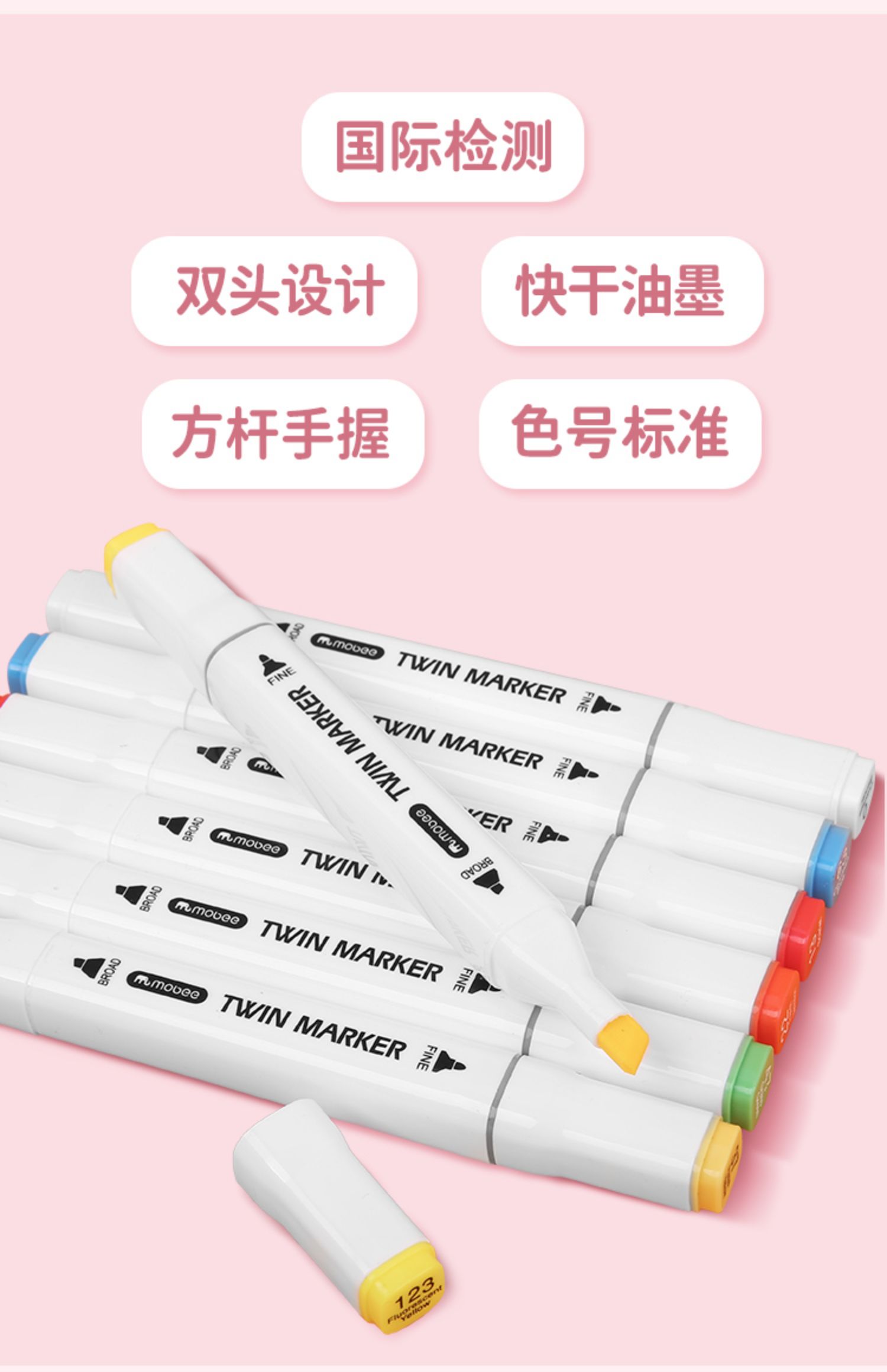 【美术老师推荐】mobee双头马克笔,耐磨双头设计,满足不同需求,出水、勾勒很顺畅,学生画画,动漫设计,室内设计,服装设计都适用!【赠运费险】