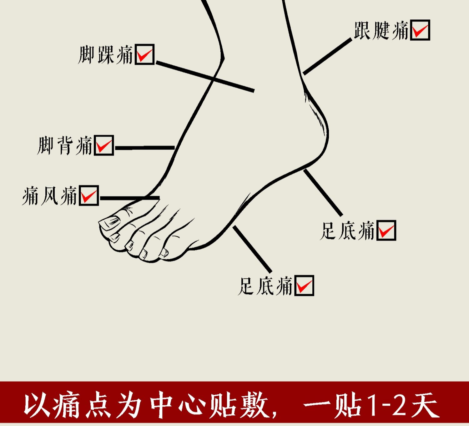 草本配方非激素黑胶贴,起效快透气性强!足跟痛,跟腱炎,筋膜炎都可用,使用方法,一贴贴18小时,间隔6小时,一天一片。4.9高评分!非常好用