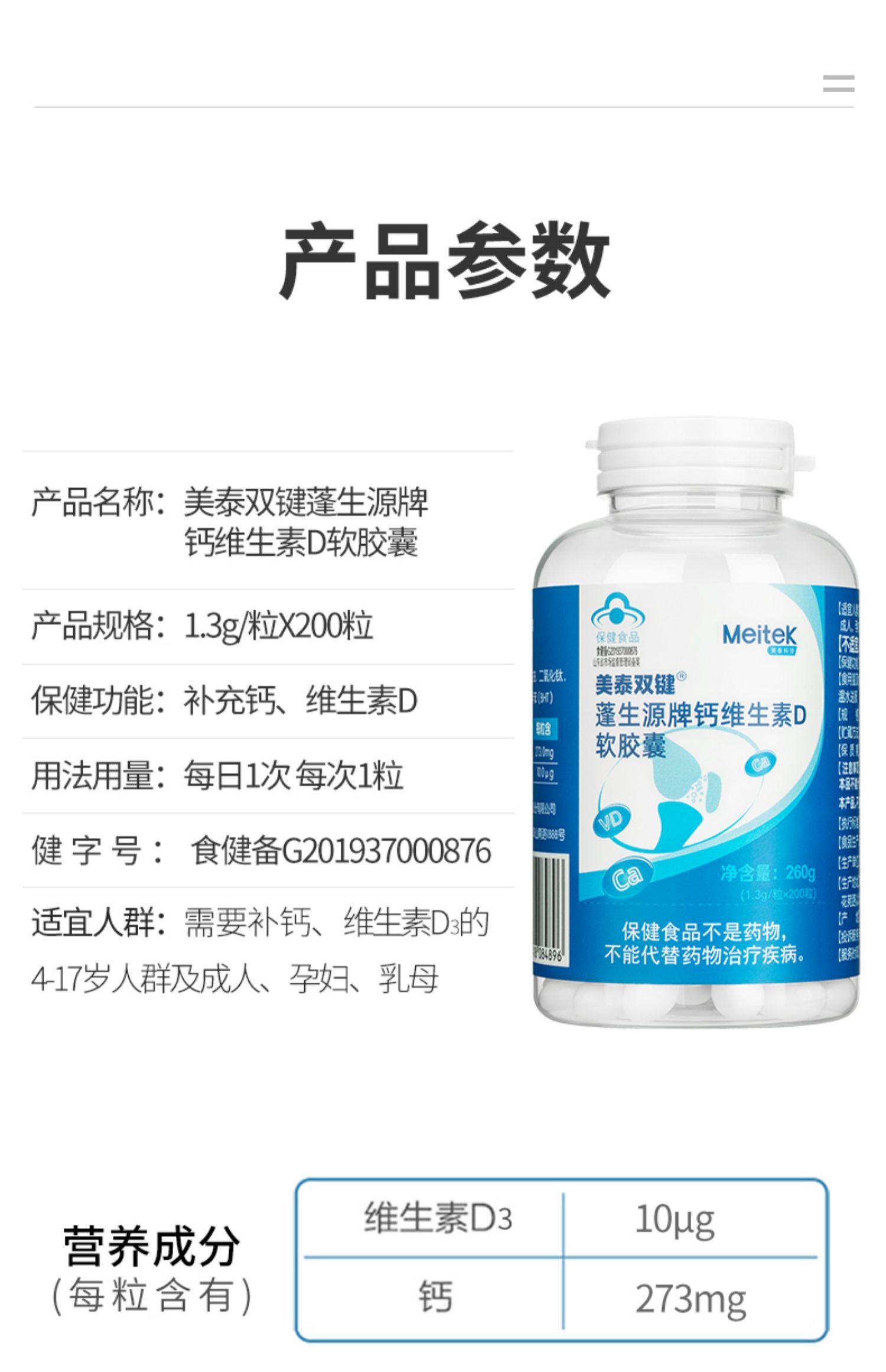 可抵扣签到!【美泰双健】国家蓝帽子认证,维生素d钙片氨糖软骨素60粒/瓶,儿童成年男中老年人钙铁锌液体钙片,液体钙,易吸收,科学补钙,促进吸收,维持血钙平衡。【赠退货运费险】