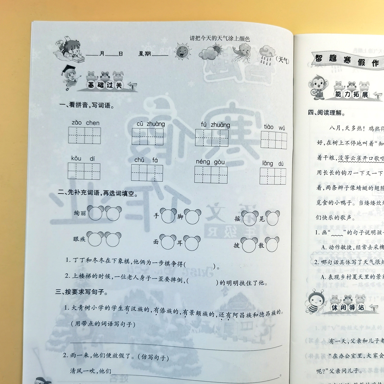2022新版三年级智趣寒假作业,综合复习训练寒假衔接练习题集,彩色印刷,人教版练习题,每天坚持练习,快速提高孩子的学习能力,让孩子赢在起跑线上!!!
