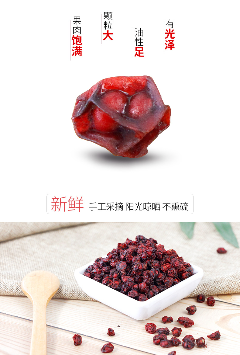 新鲜手工采摘,阳光晾晒,不熏硫,有止咳、止渴、生津的功效,益脾胃,营养丰富,皮质厚,养分足,浆气均衡,颗粒饱满,表面暗红色有光泽果肉丰厚饱满。