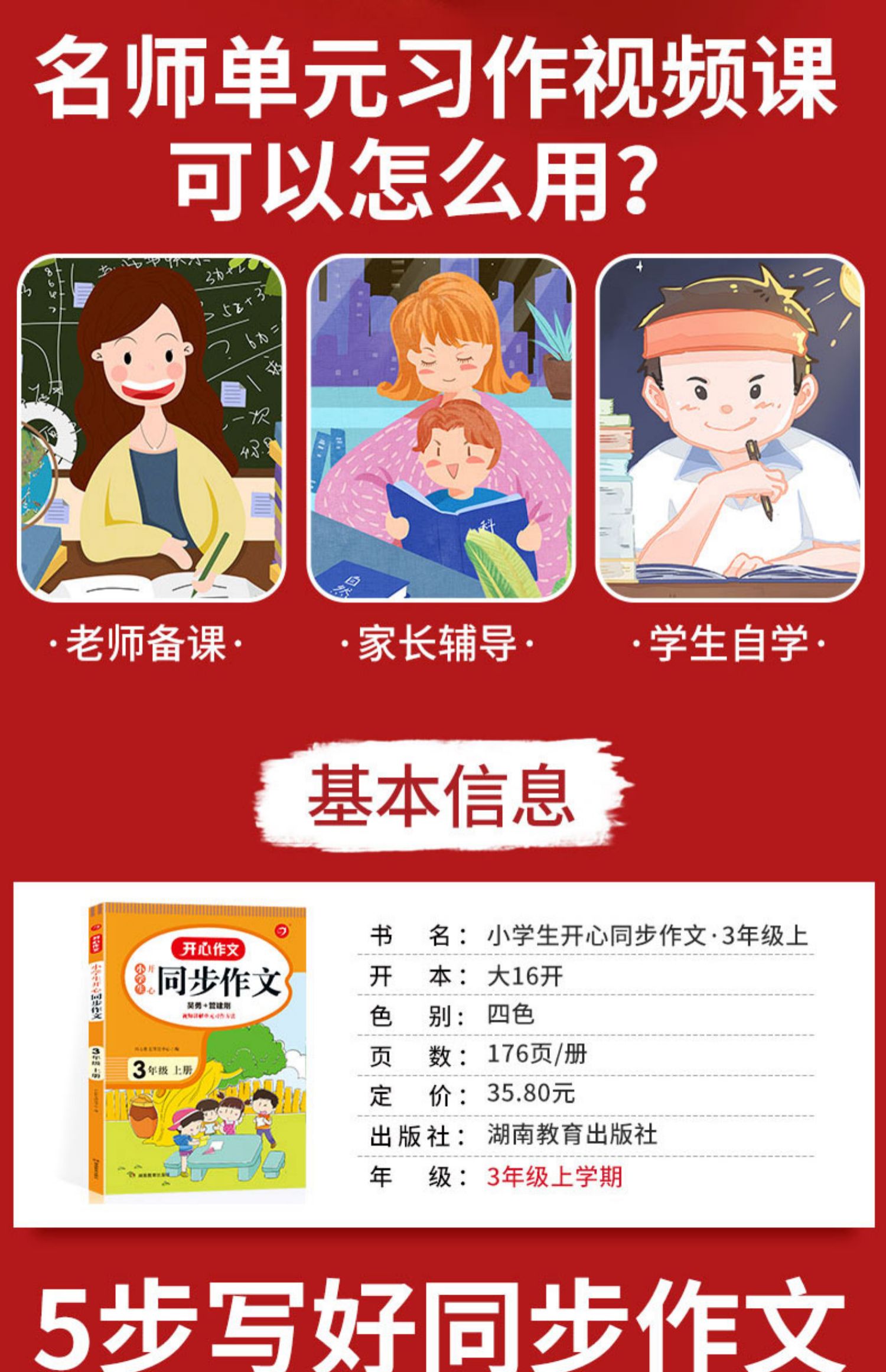 【天猫图书专营店】老师备课,“保姆级”写作指导,三步写好作文!2022新版,吴勇示范课,管建刚评改课,精美彩图,印刷清晰,优质纸张,家长辅导,让孩子赢在起跑线上!【赠运费险】