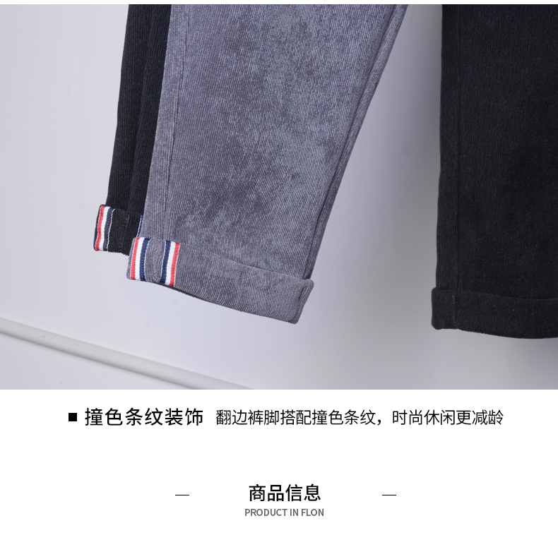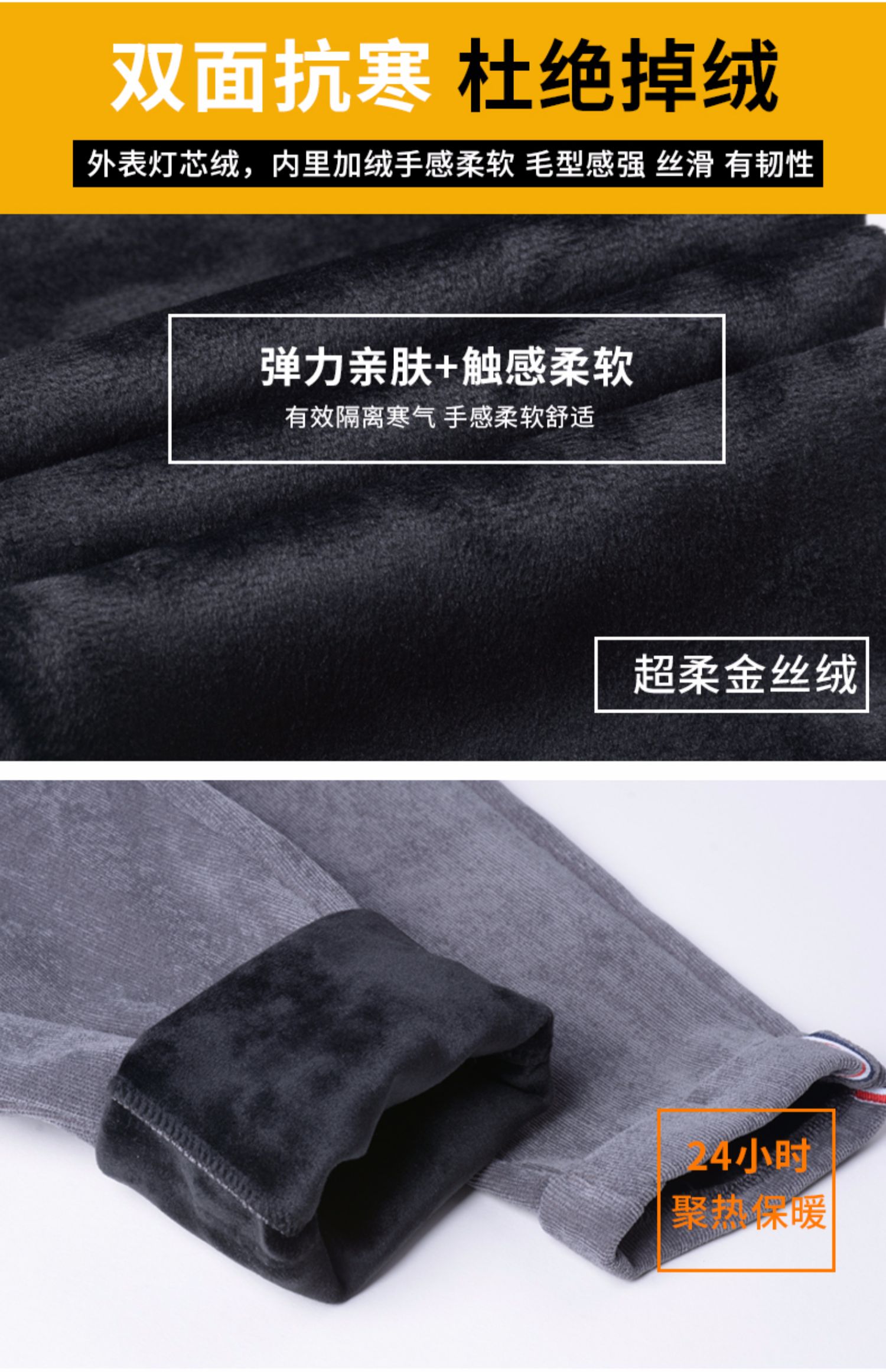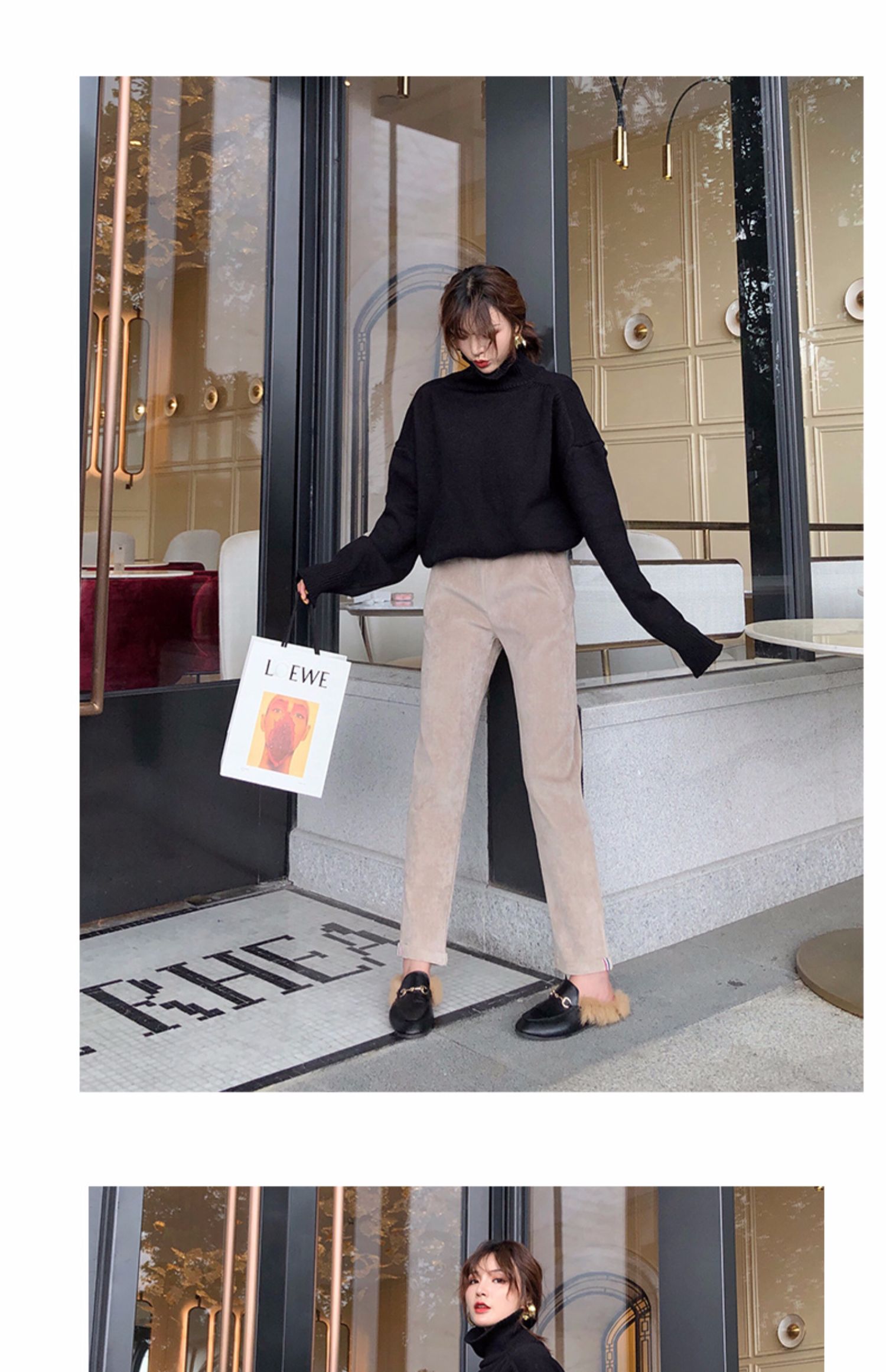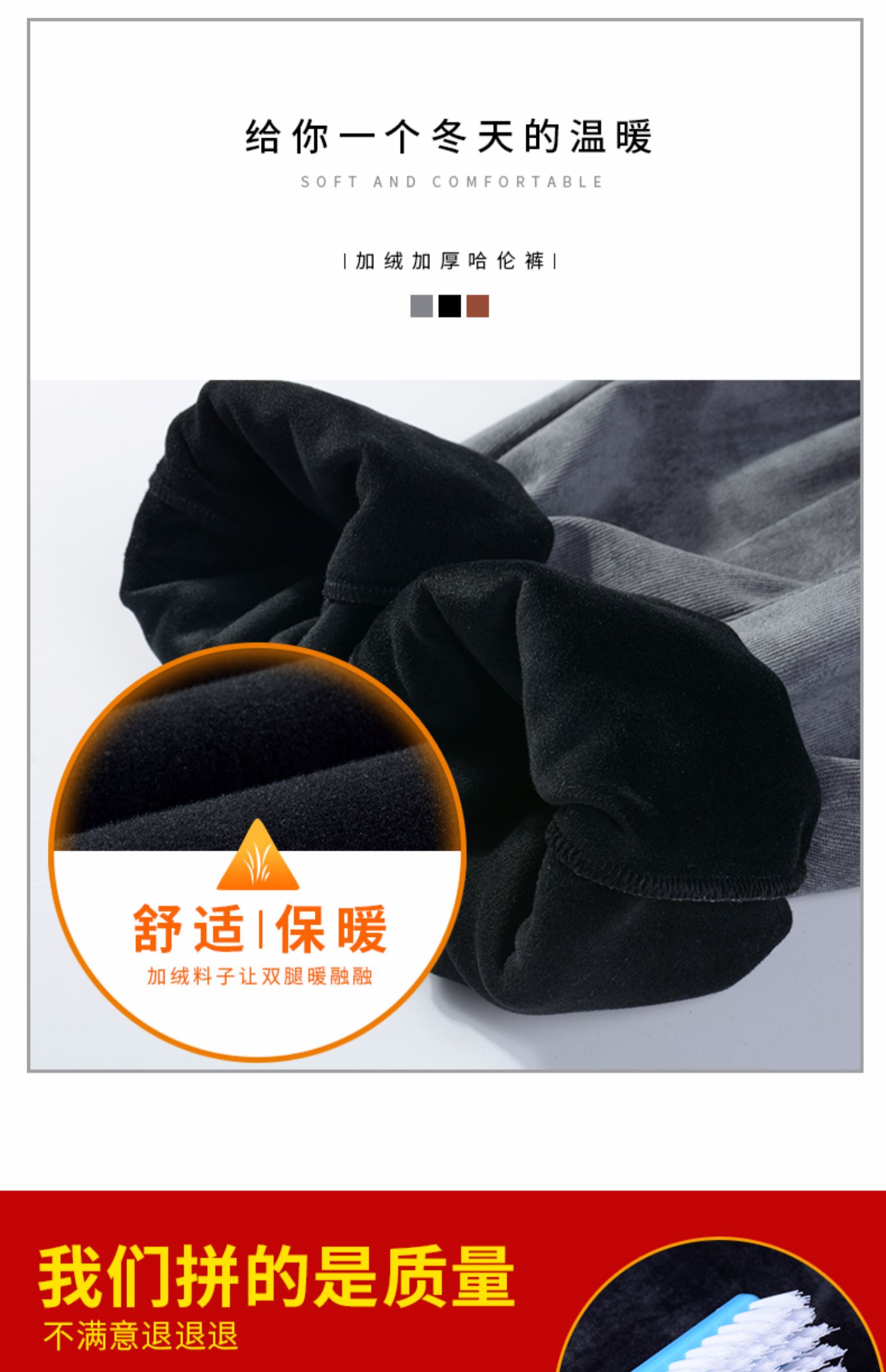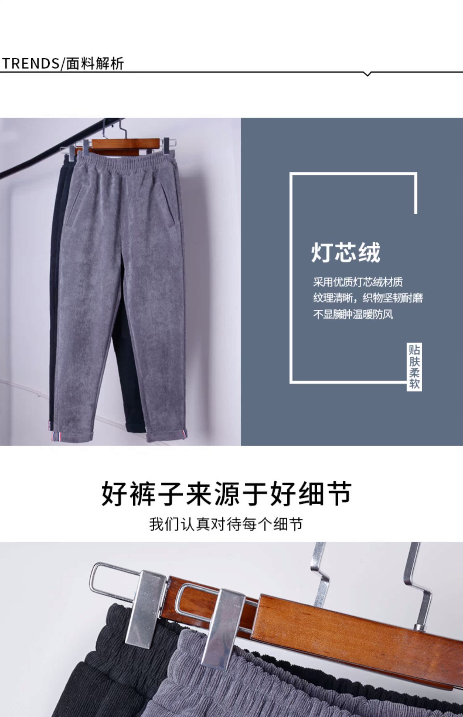 面料采用了超柔金丝绒,做旧复古感,不掉色不掉绒;松紧收腰的设计,上身舒适且有包容性;宽松的哈伦版型,很适合秋冬季节。