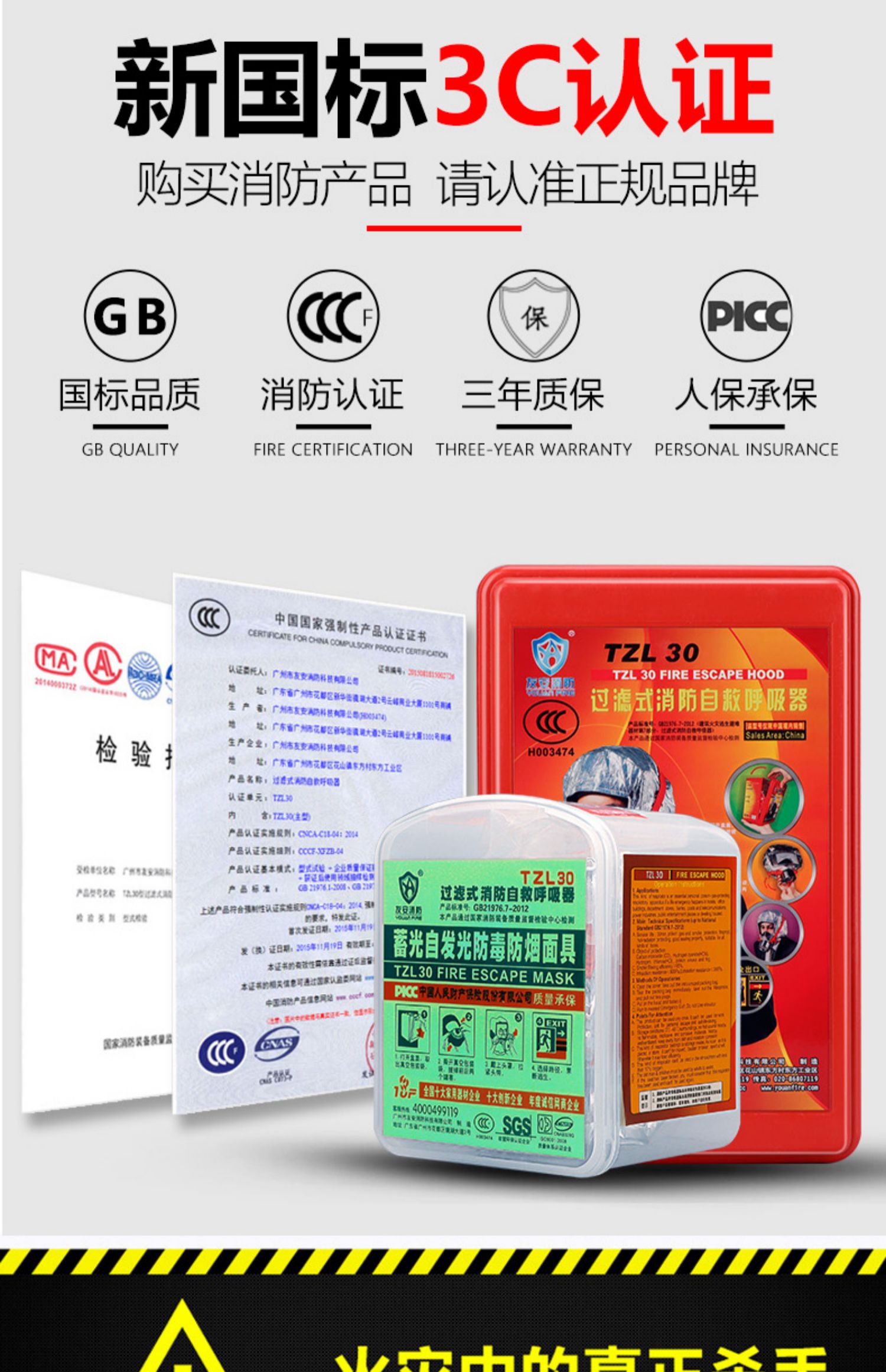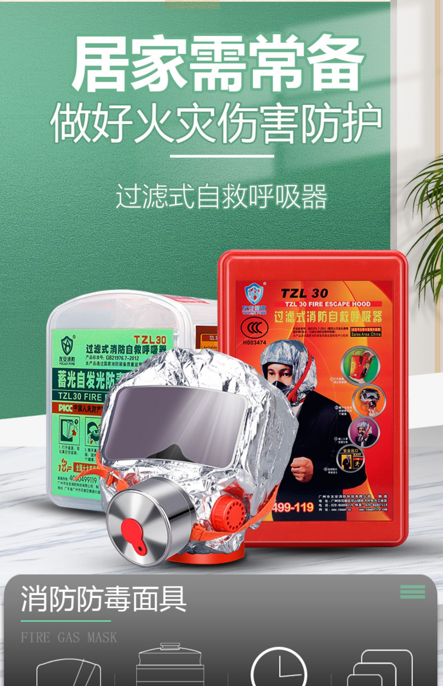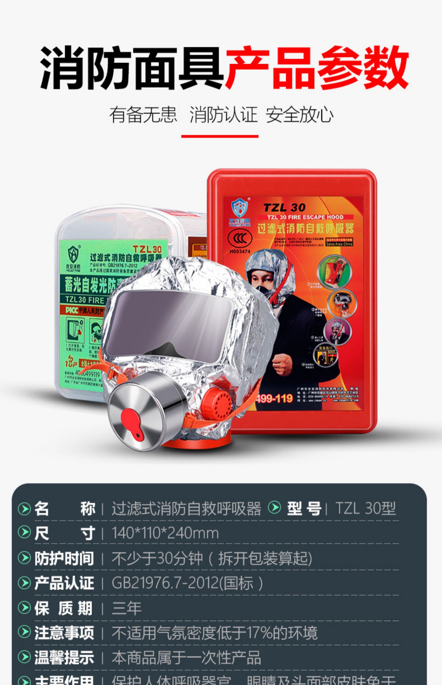 【官方3C认证】【可开发票】【火灾逃生】过滤式自救呼吸机,火灾逃生自救呼吸器,酒店人防战备应急包【消防推荐验收包过】