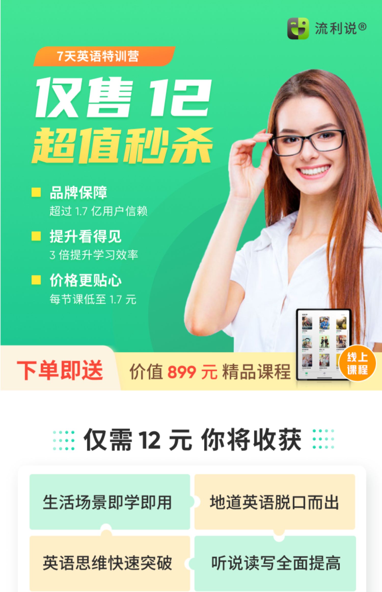 加服务群联系班主任送常用口语课!流利说1对1训练课程!个性化学习方案,AI老师因材施教,满足多样学习需求,零基础轻松上手,课程体系新升级,听说读写全覆盖,随时随地畅快学。