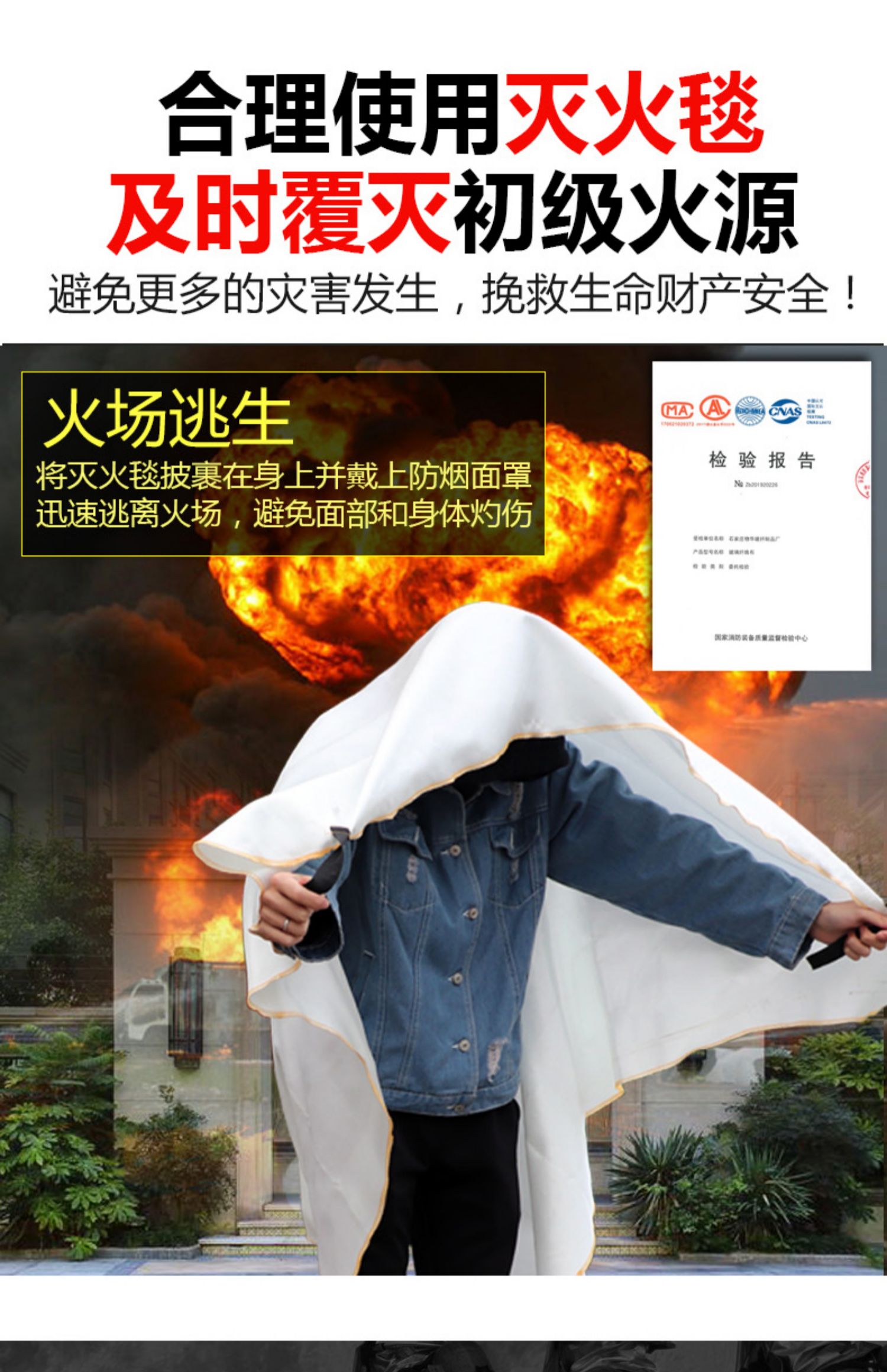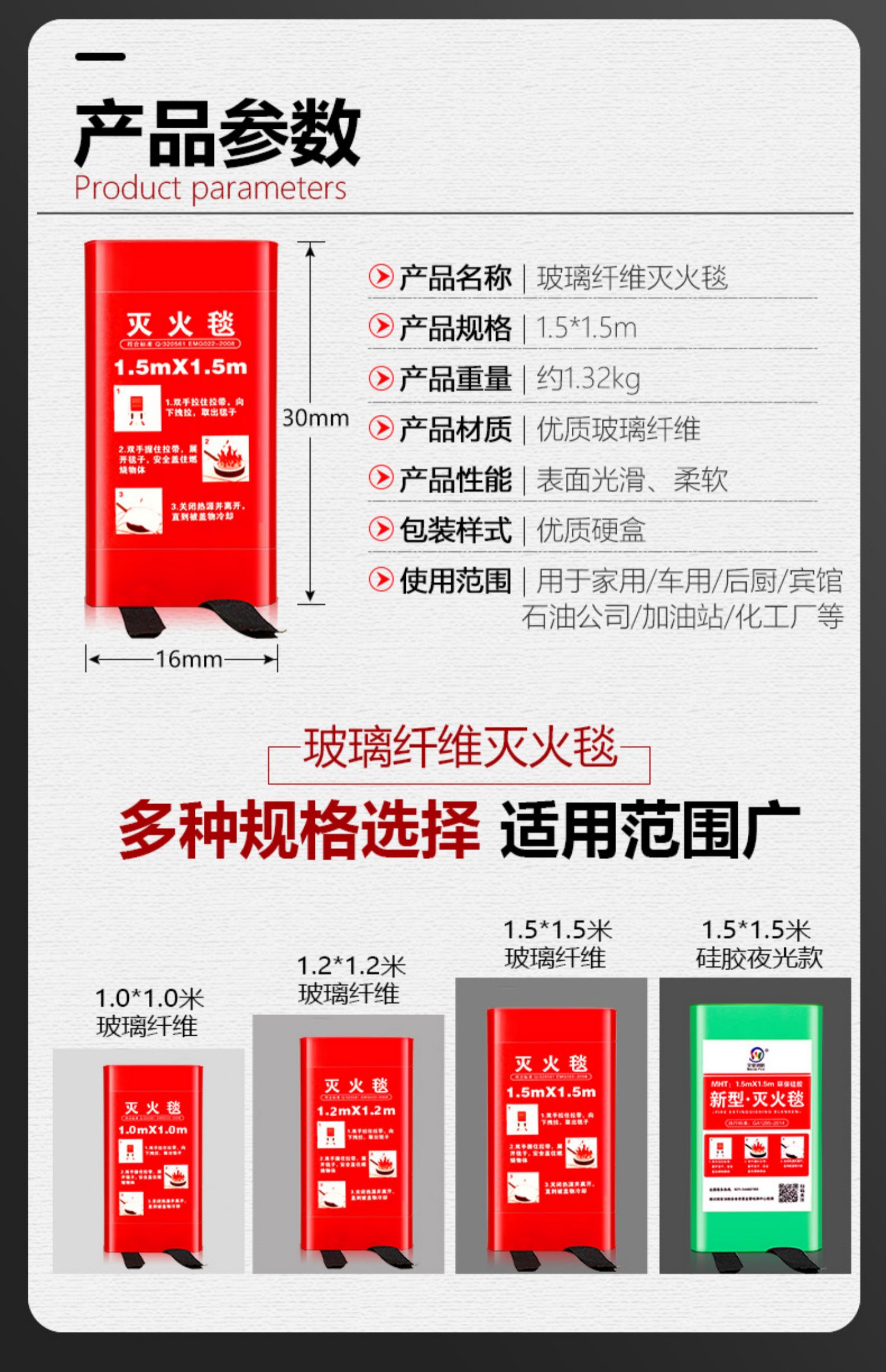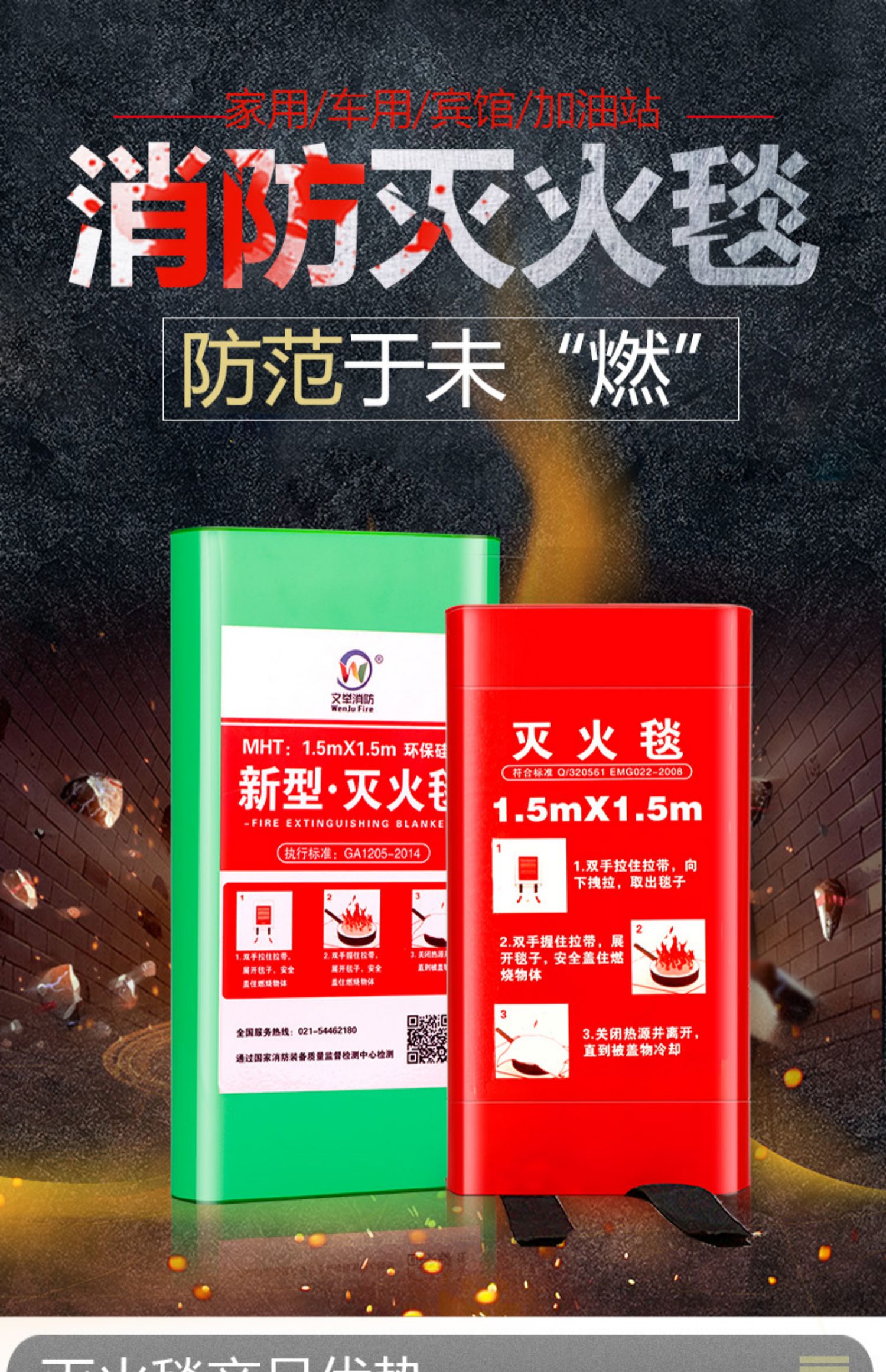 【买就送价值15元防护手套+专用挂钩】【限量3000件秒杀,仅5.5元】优质玻璃纤维哇胶灭火毯,厨房防火神器,大厂出品今日限量亏损。