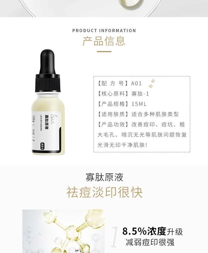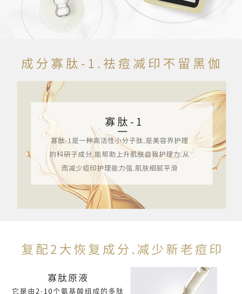 【拍三件!!第②、③件0元】!寡肽面部精华原液,寡肽原液精华祛痘,淡化痘印,美白滋润,提亮肤色,深度补水修复面部肌底!【过敏包退】