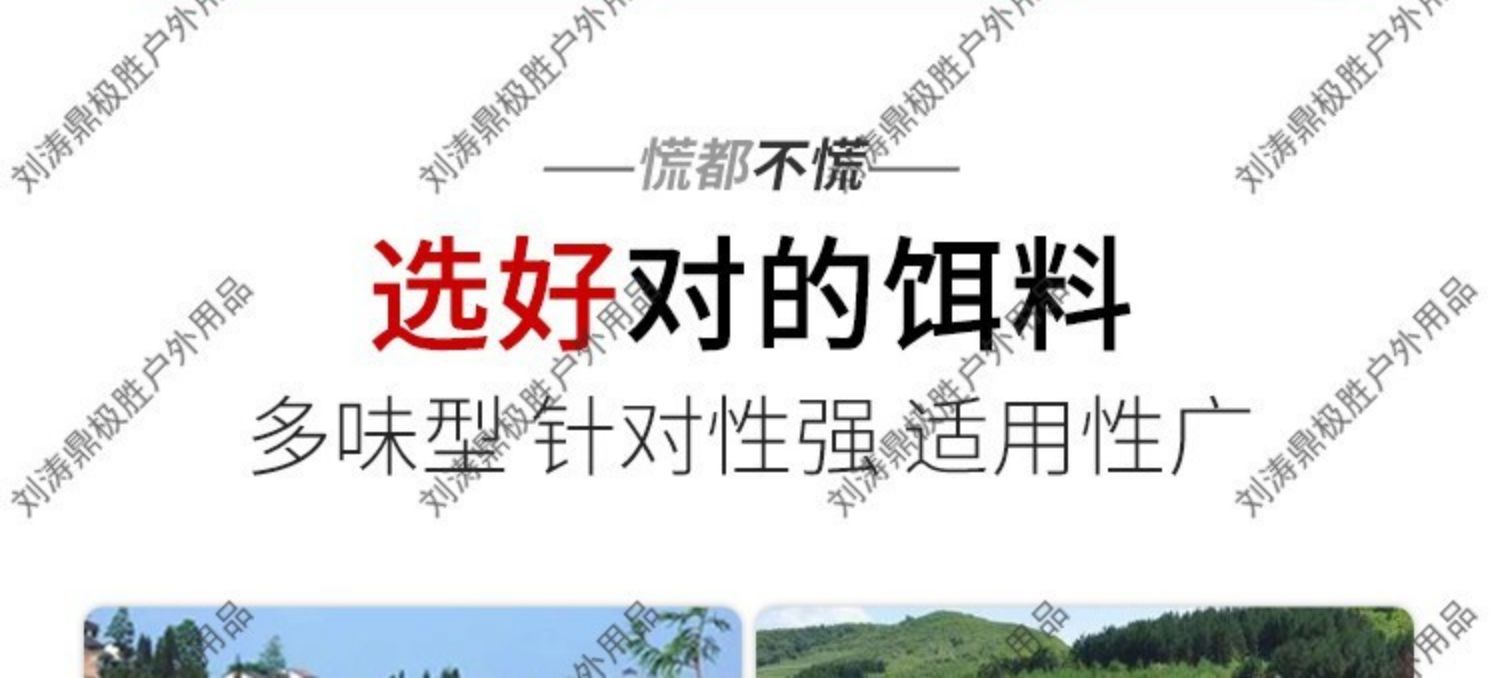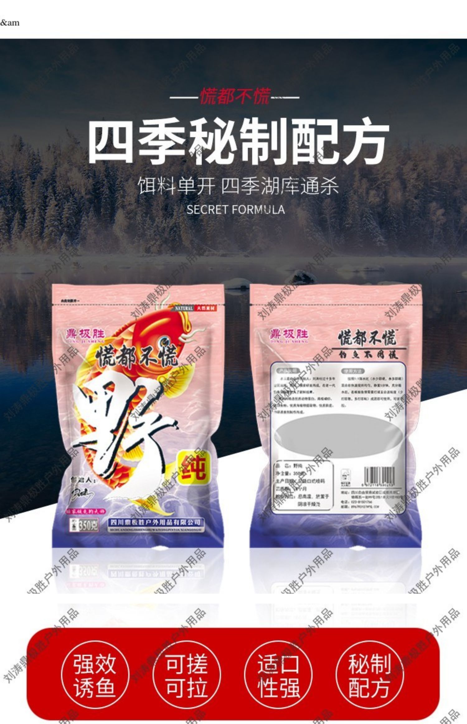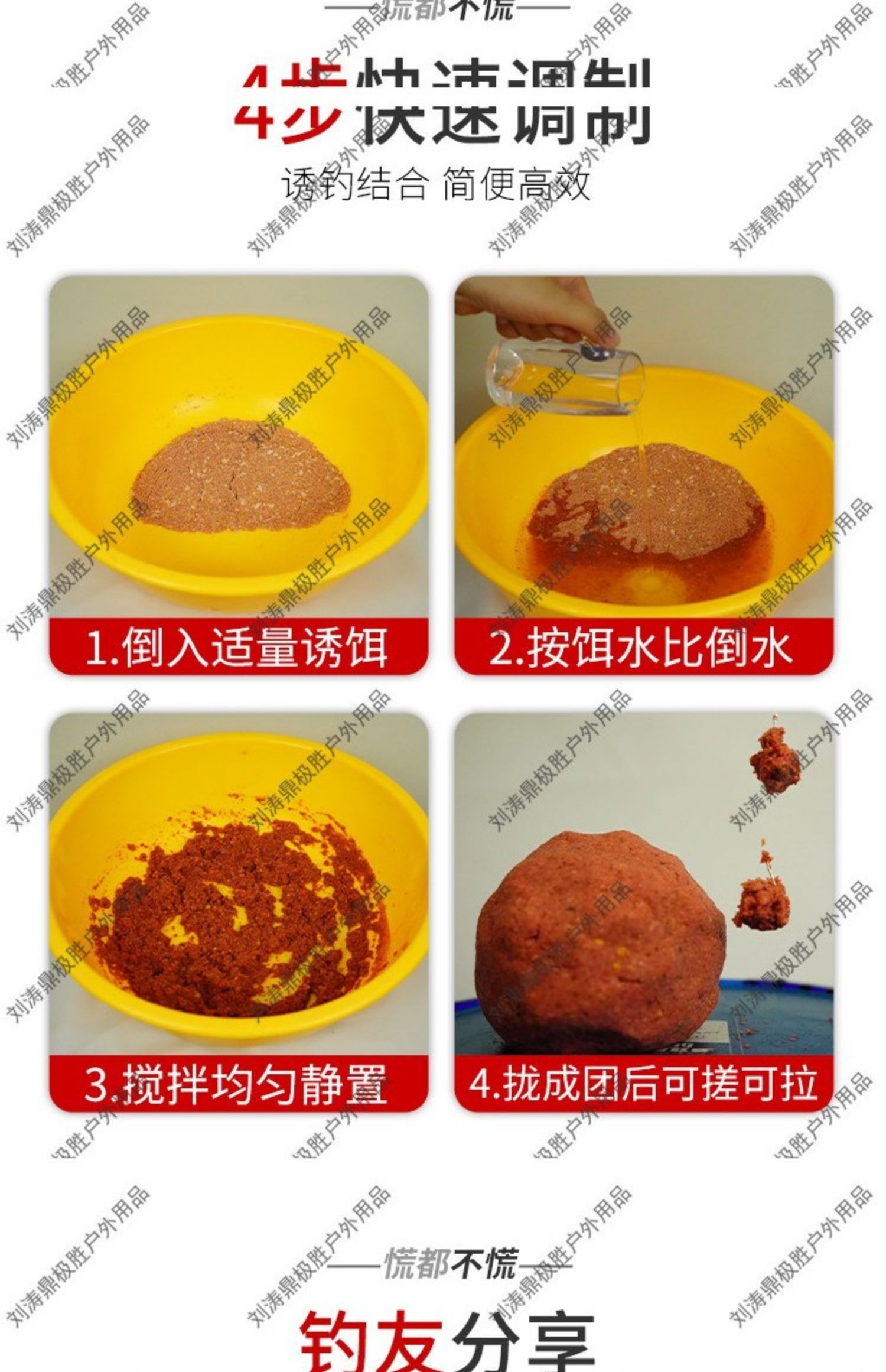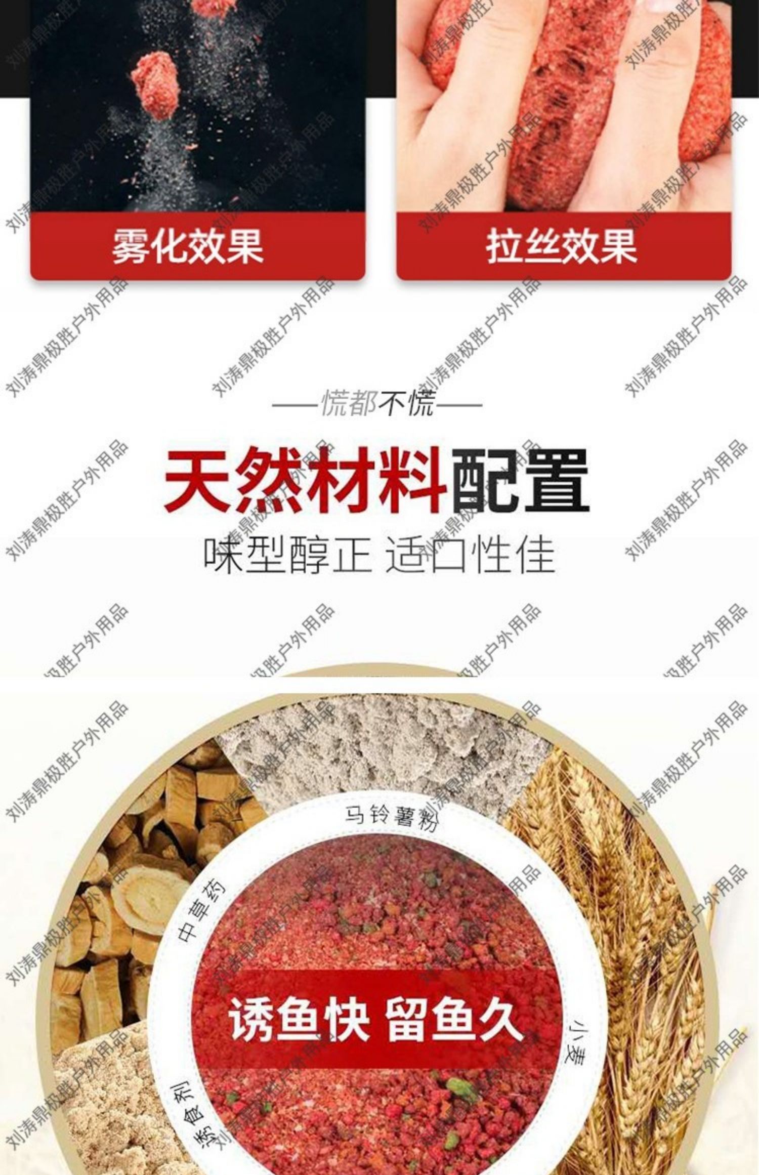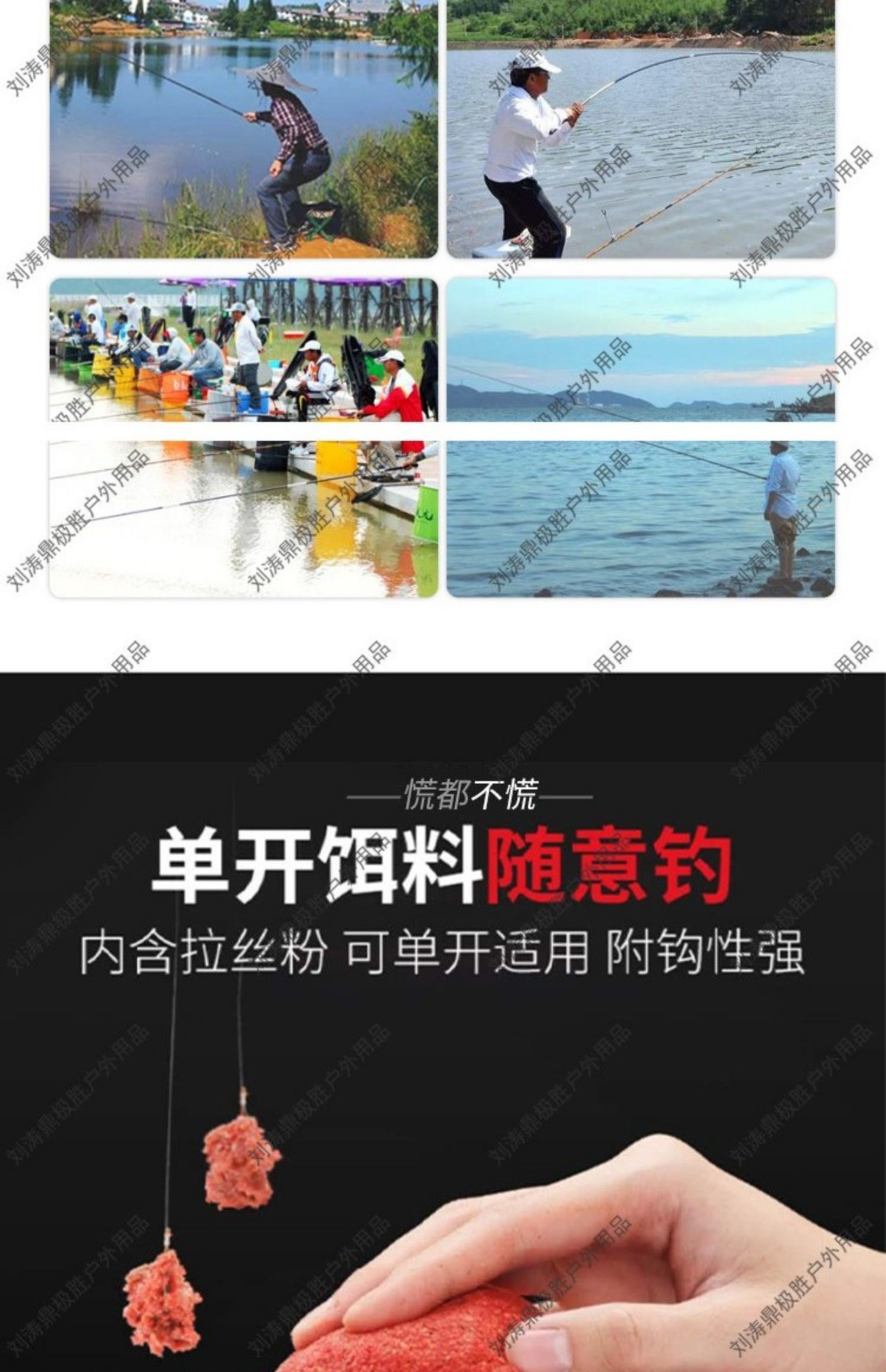 精选原料,集合多种天然谷物,特加龙王恨诱鱼因子、用上九一九、钓鱼成高手、专心做好每一款鱼饵!