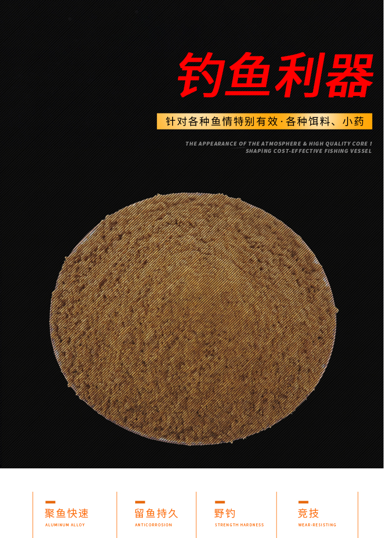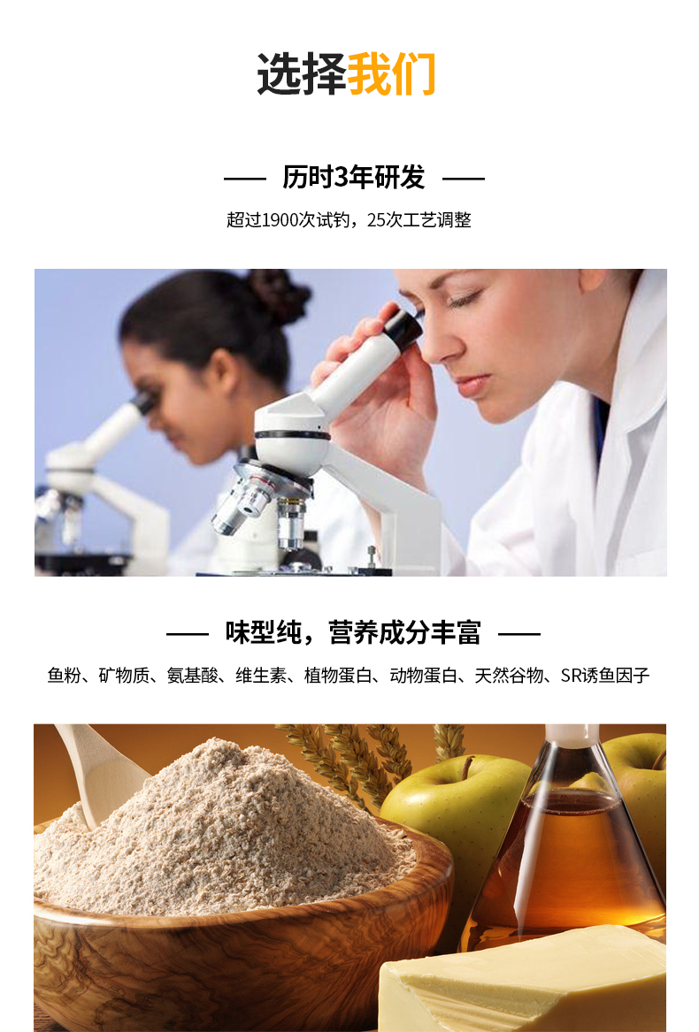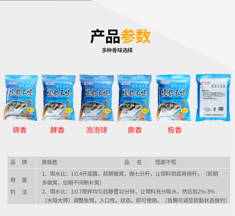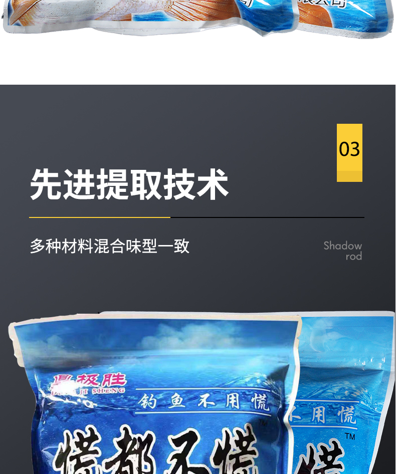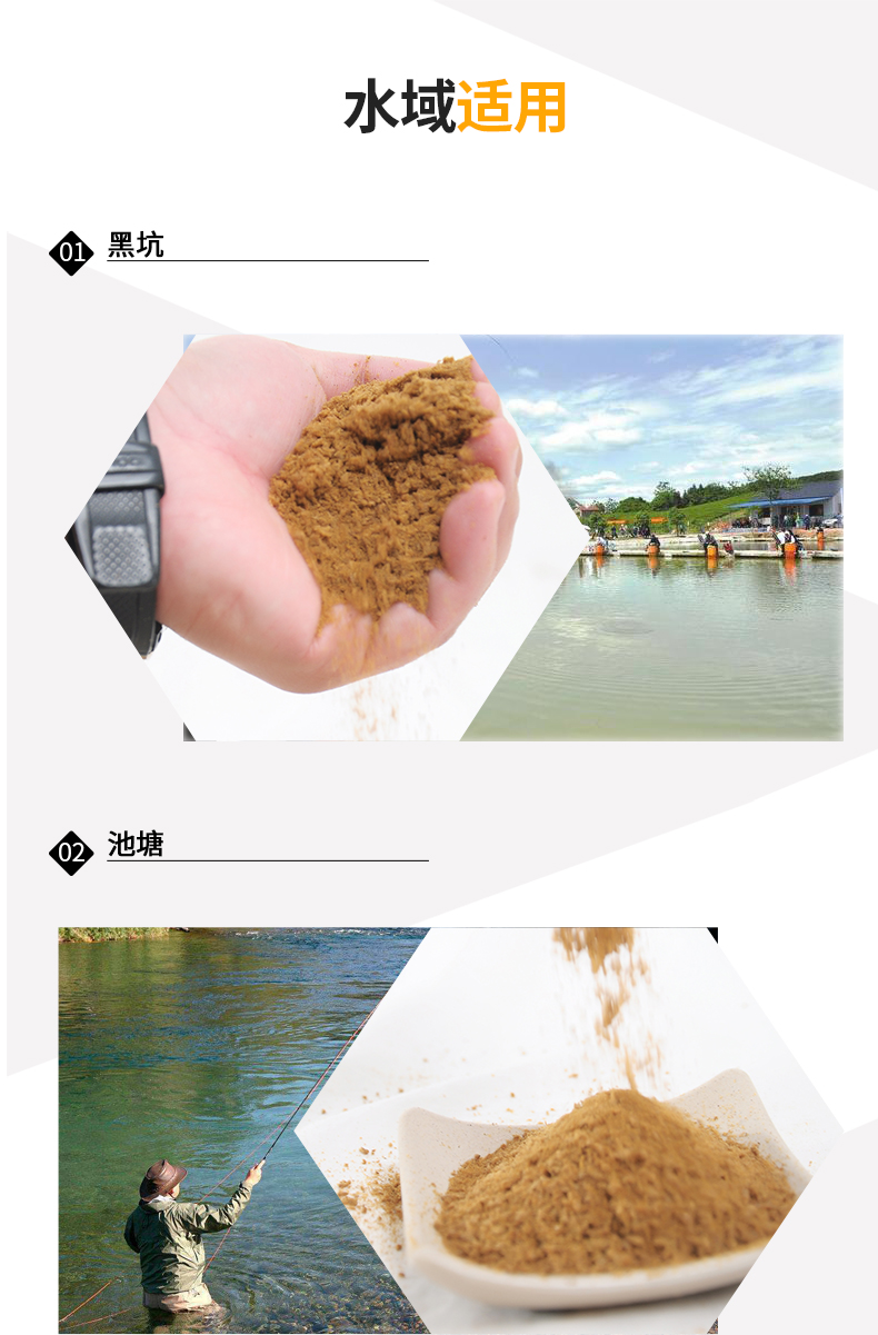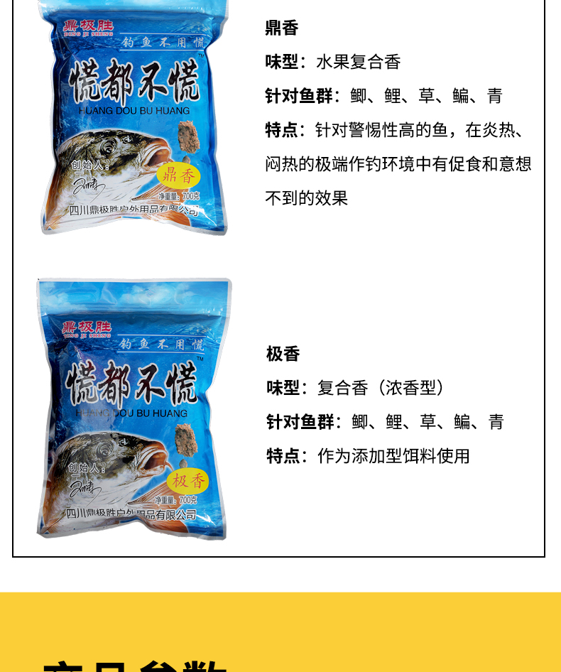 精选原料,集合多种天然谷物,特加龙王恨诱鱼因子、用上九一九、钓鱼成高手、专心做好每一款鱼饵!
