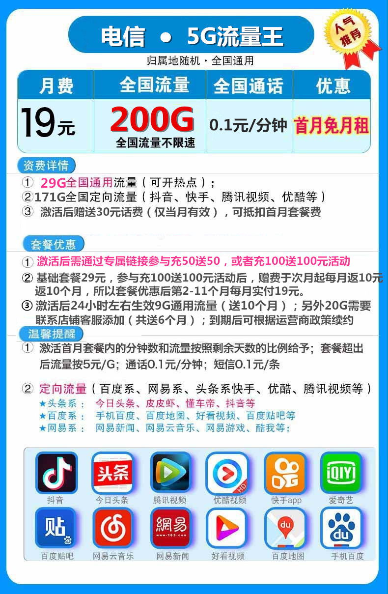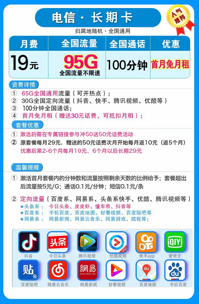 中国电信新号码套餐