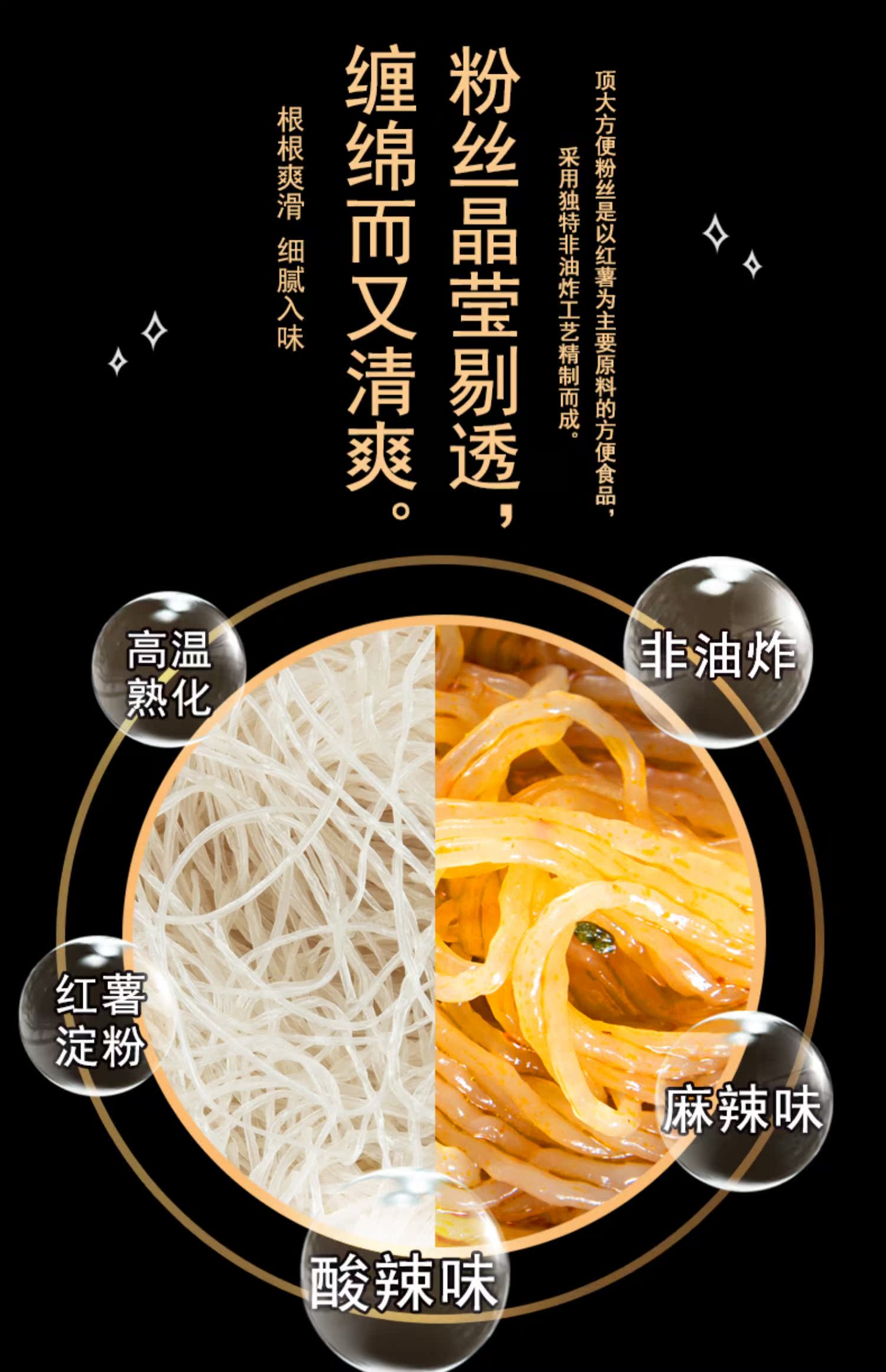 精选好料,根根爽滑,麻辣入口,酸爽过瘾,吃一口回味无穷,桶装食用更方便,酸辣、麻辣两种口味任你选择。