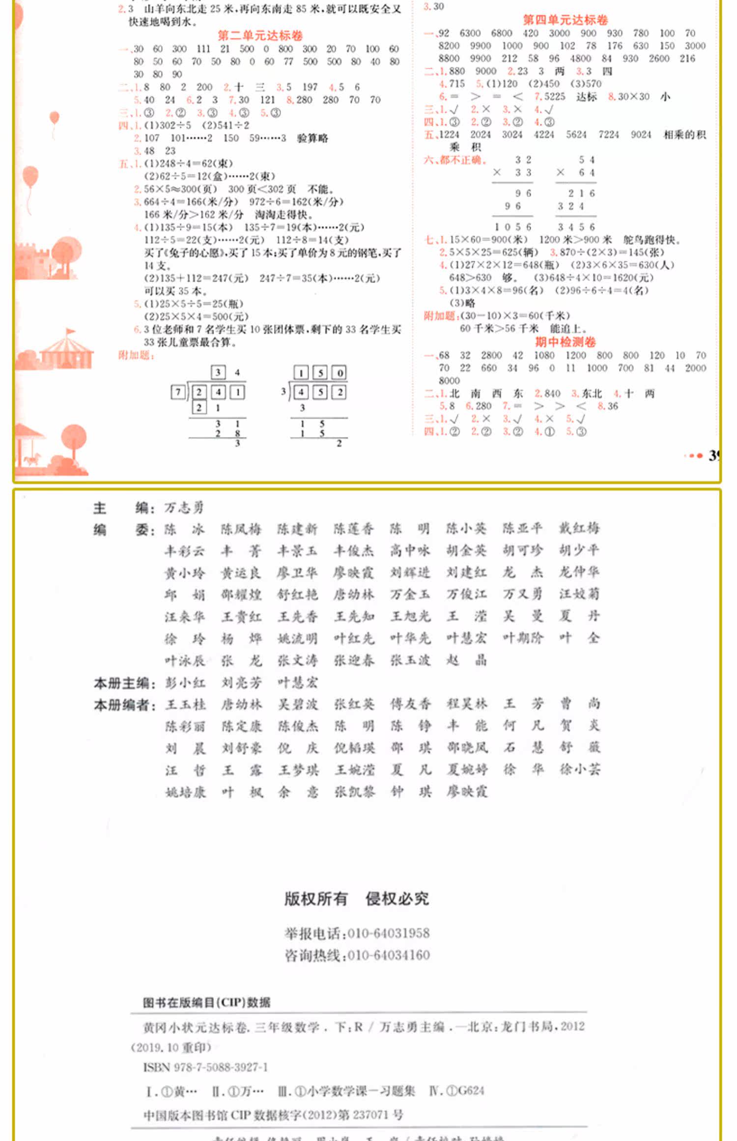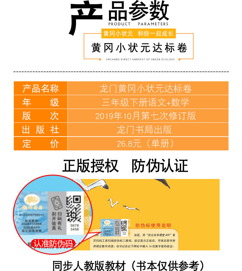 【三年级下】黄冈状元语数试卷2本