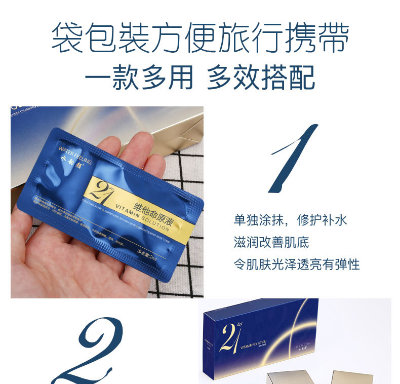 【赠运费险】熬夜、加班,肌肤变得干燥、粗糙?快用21天维他命精华液~蕴含多重补水因子,保湿滋润,实力护肤!睡前来一袋,第2天皮肤变得水润又嘭弹!