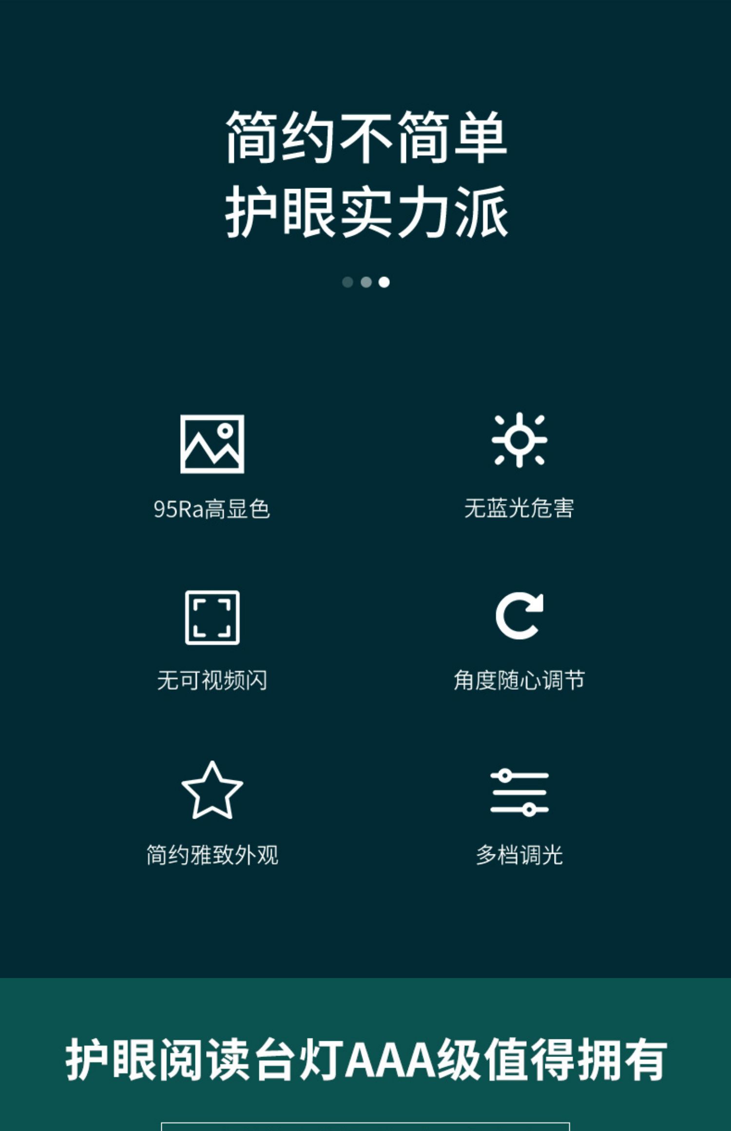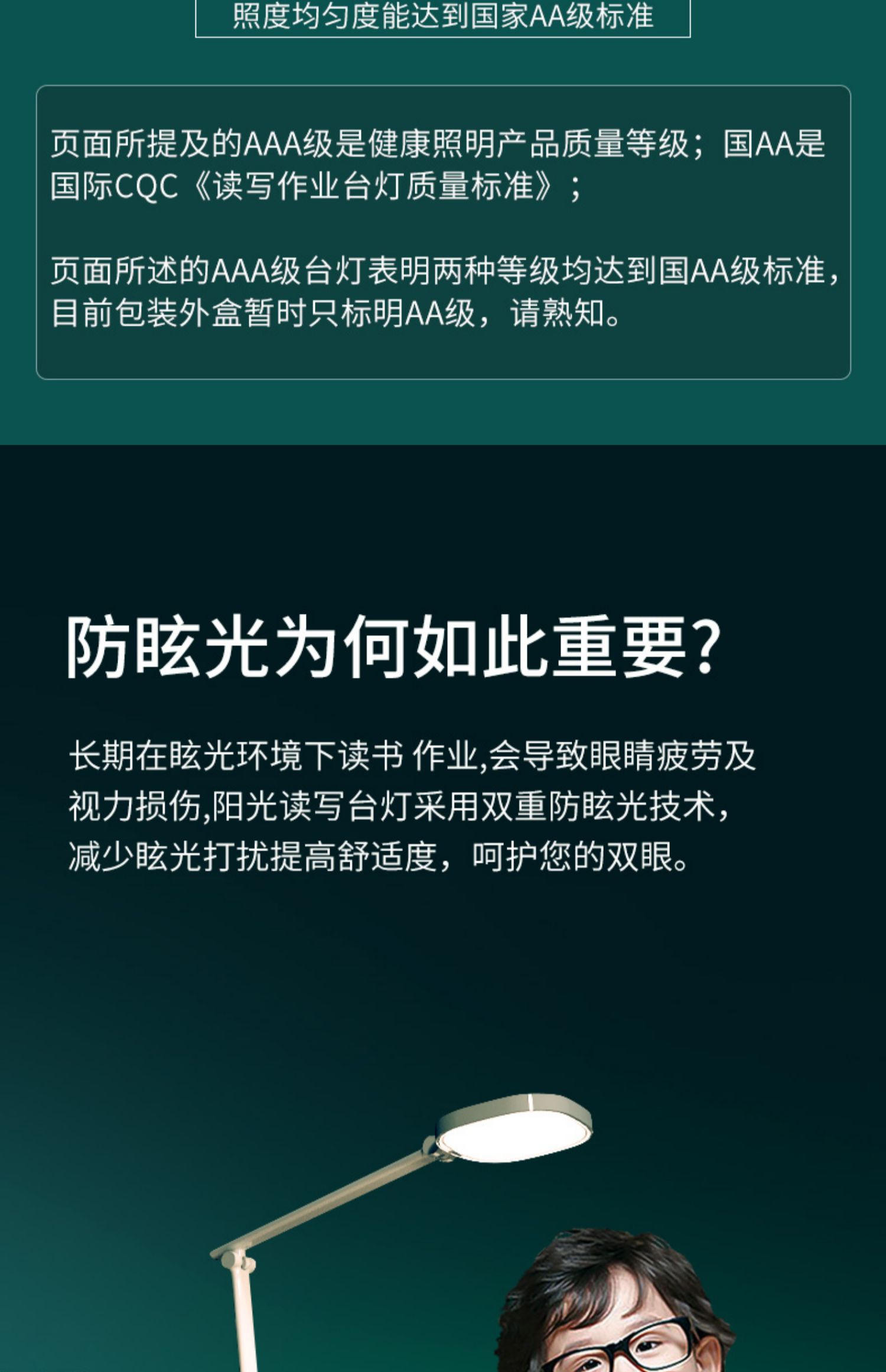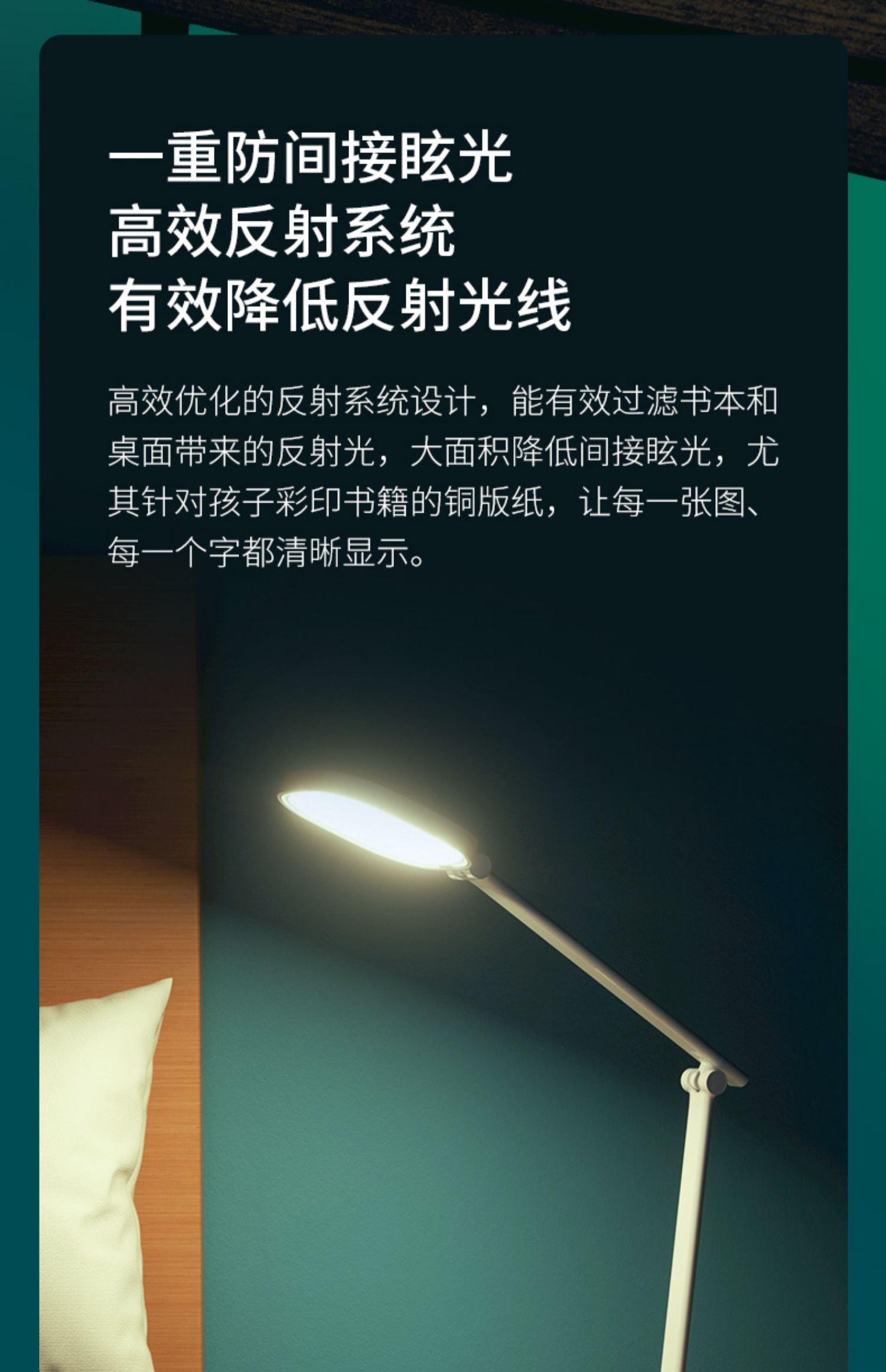 AAA级护眼台灯,保护每双稚嫩双眼,双重防眩光,明亮护眼面面俱到,阳光读写台灯采用双重防眩光技术,减少眩光打扰提高舒适度,呵护您的双眼。