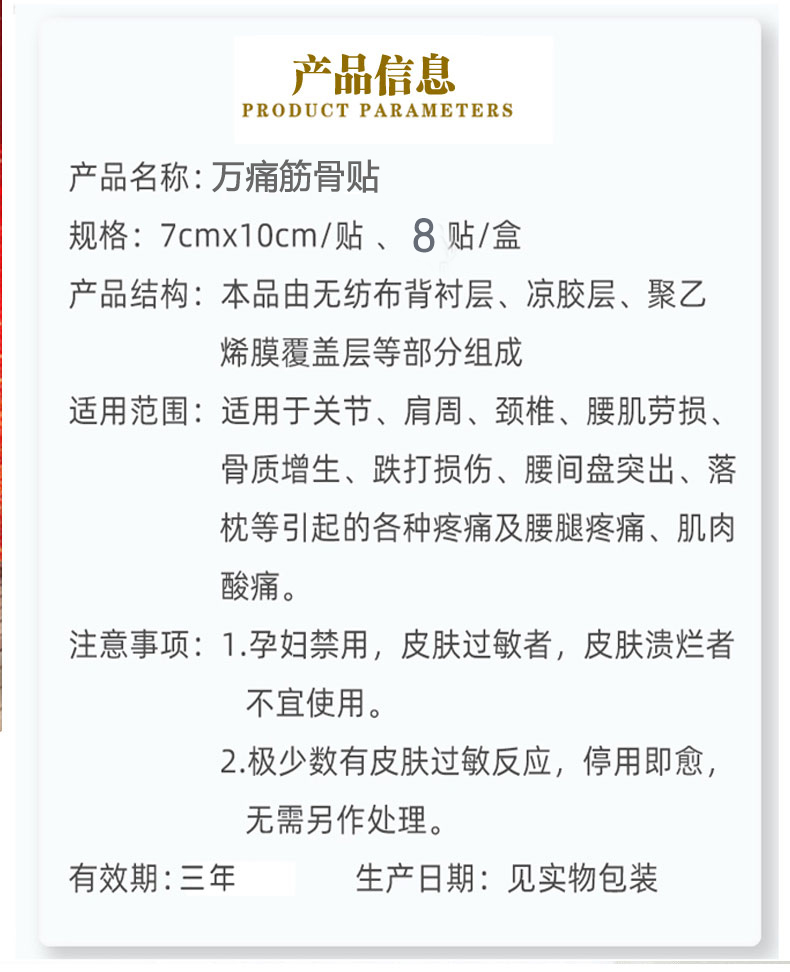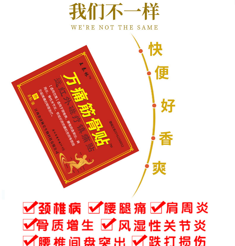 【拍两件】膏药贴5盒40贴,适用于颈椎病、腰椎间盘突出、肩周炎、骨性关节炎、软组织损伤、腰肌劳损等原因引起疼痛的物理治疗,哪里疼痛贴哪里。