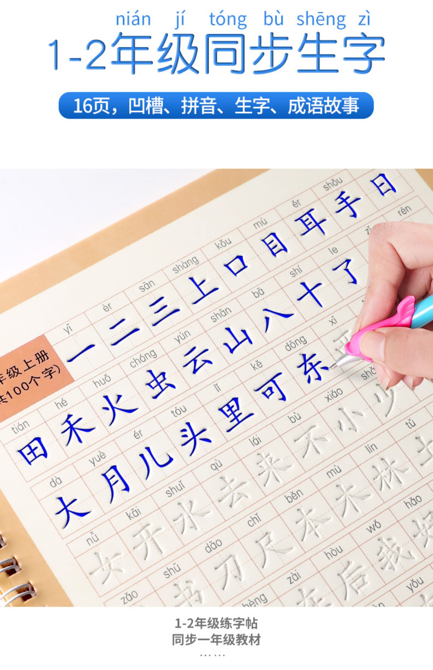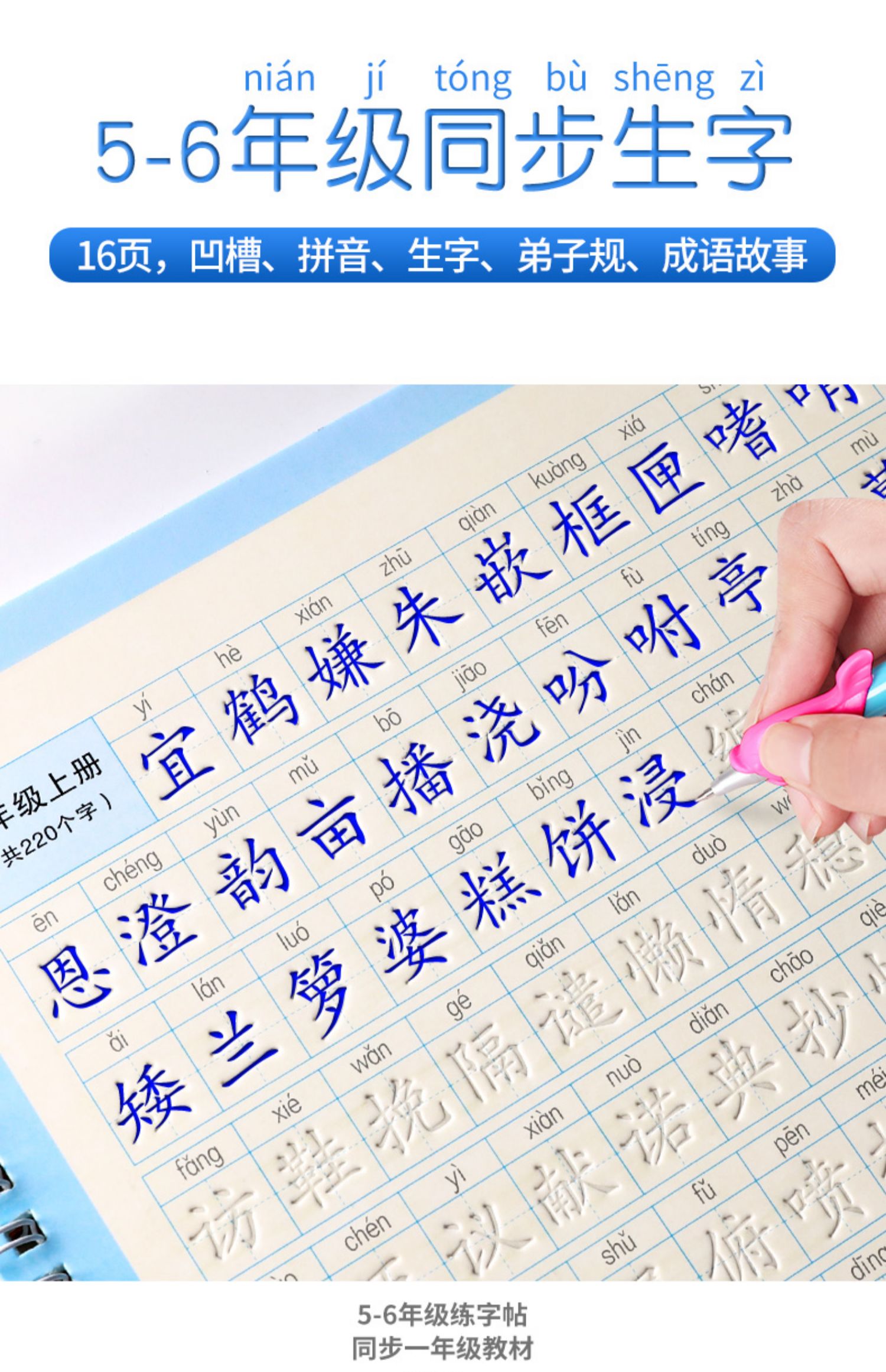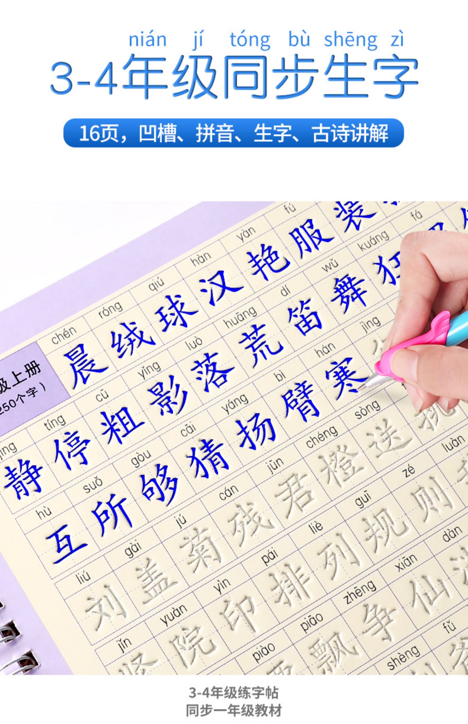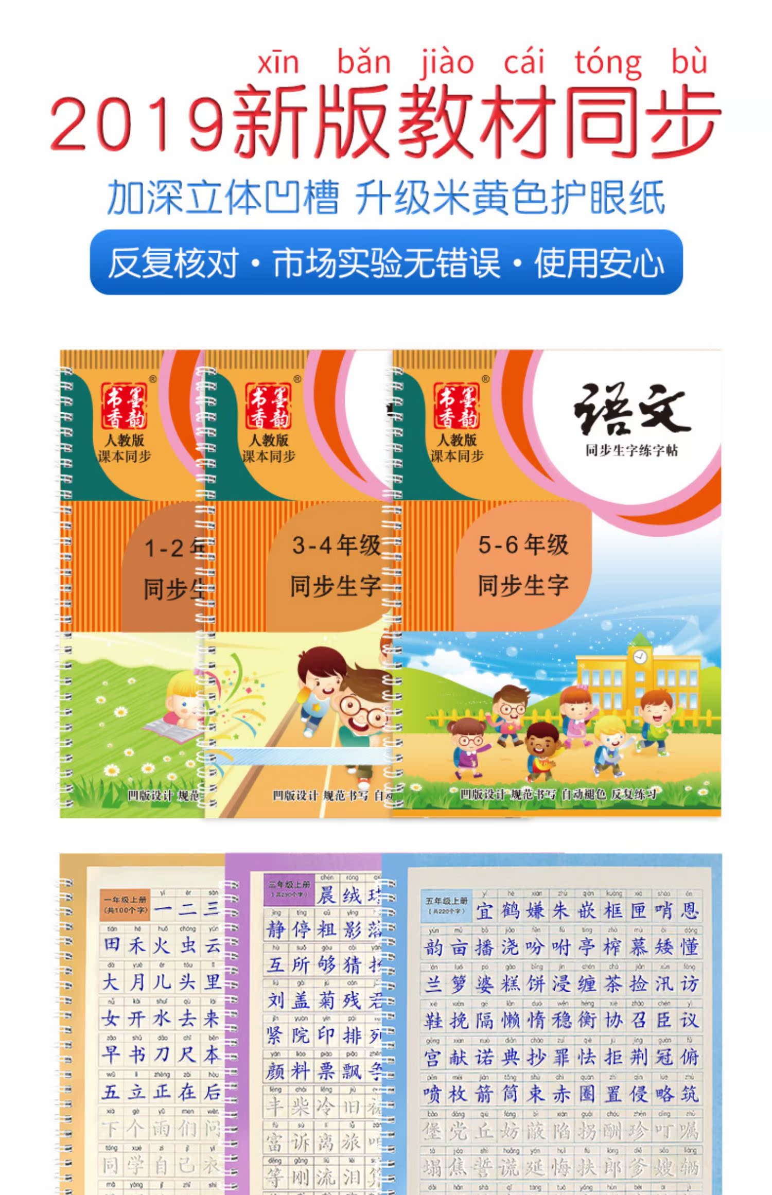 【买就送一支笔杆+握笔器+10支消失笔芯】1-6年级小学生课文同步练字帖,每日一练速成凹槽字帖,2-3-4正楷书儿童21天神器,人教版初学者,班主任墙裂推荐!!