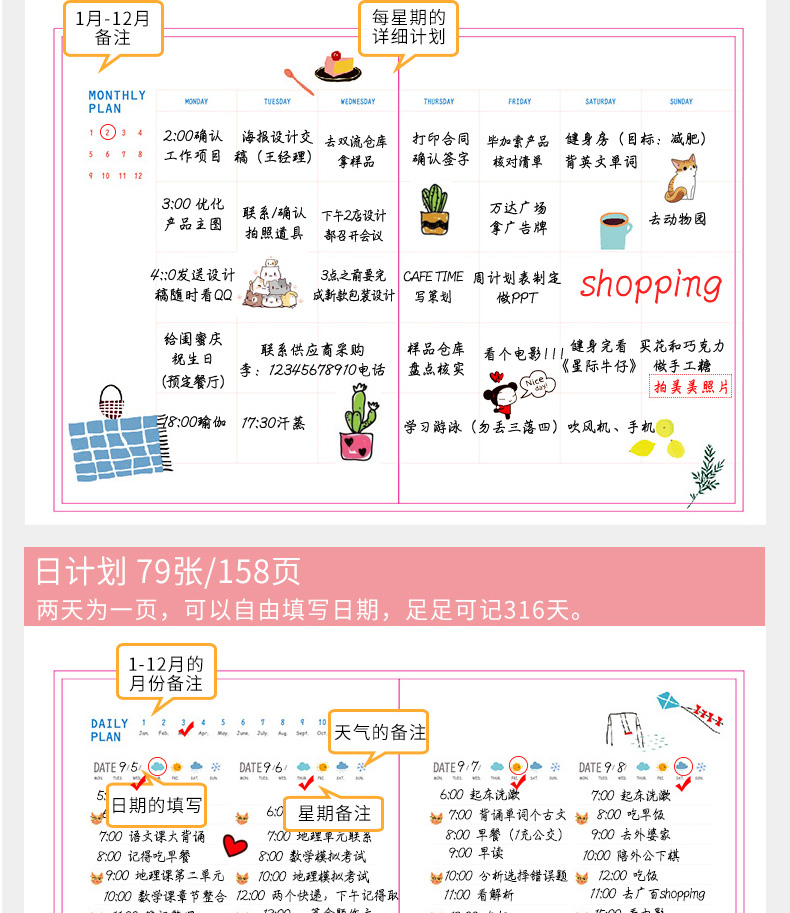 全新litemini系列,在颜色上选择流行的色素,封面内侧页则选择和封面搭配起来能营造出高级有沉着氛围的颜色,日程本,学生,时间管理书衣~