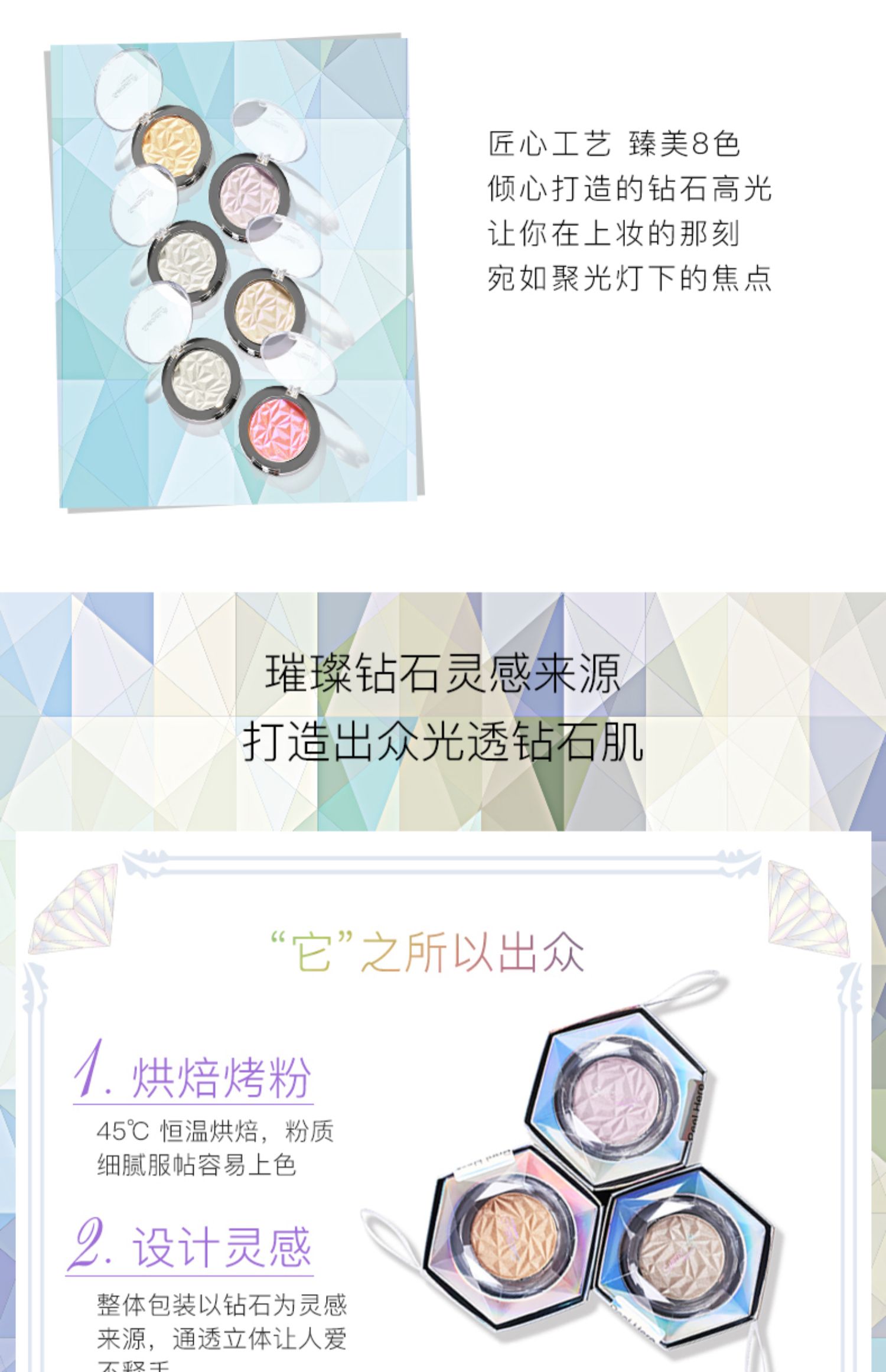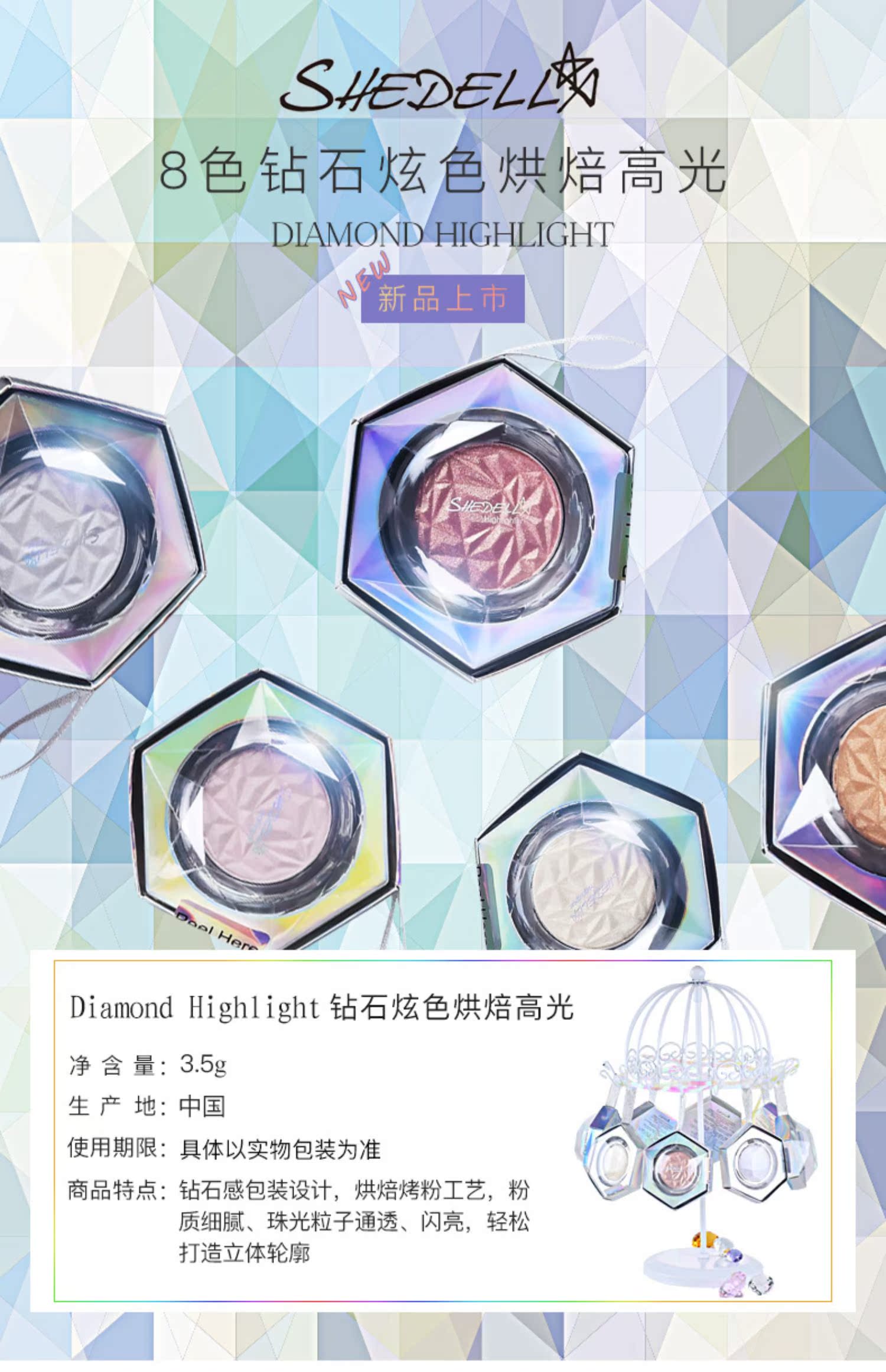 【诗蒂娅】炫色烘焙高光,钻石感包装设计,烘焙烤粉工艺,粉质细腻,珠光粒子通透。闪亮,轻松打造立体轮廓