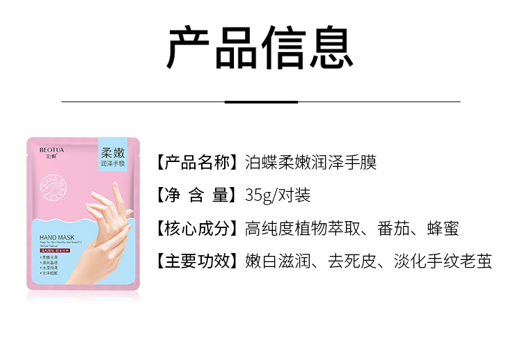 第2-5件0元,5件5对只要29.9!【全国包邮】【赠运费险】手是女人的第2张脸!日常也要好好护理!泊蝶润泽手膜赶紧敷起来~高纯度植物萃取精华,补水保湿,嫩白滋润,有效淡化手纹老茧!还你白嫩纤纤玉手~
