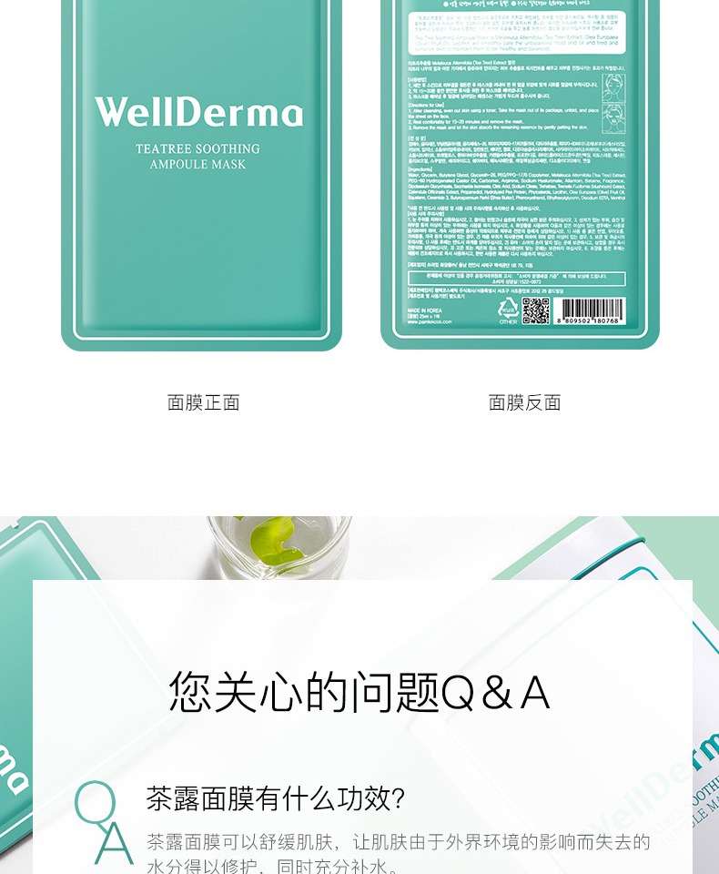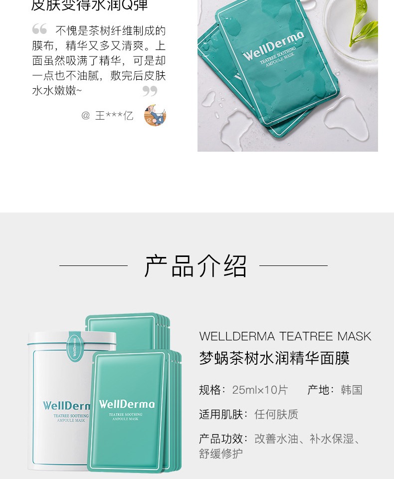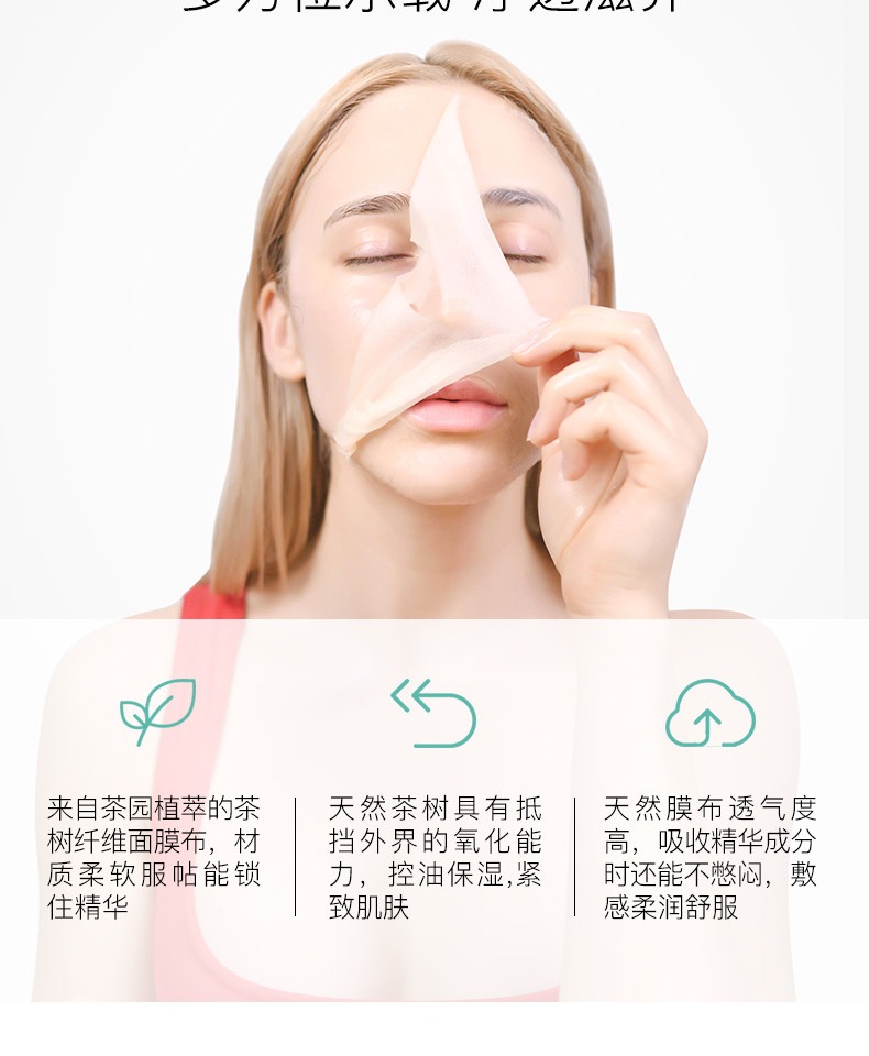 【买即送刮痧板】原装进口面膜,茶树与露珠结合,清爽补水,控油保湿,多种植物提取物,滋养修护肌肤,茶树纤维面膜布,轻盈透气,敷完皮肤水水嫩嫩,简直是混油肌的福音!