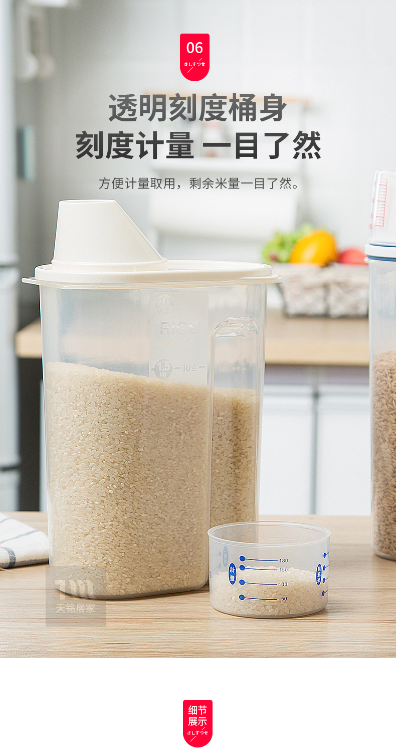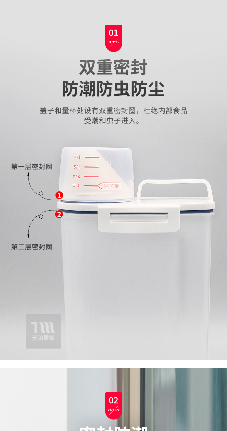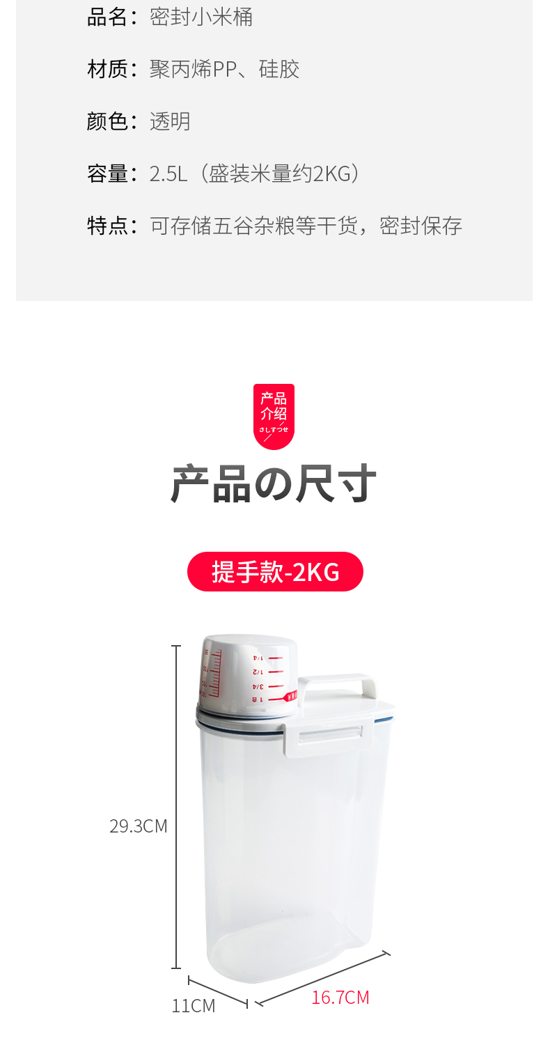 厨房收纳加厚防潮米桶,防虫环保,全新PP材质,安全健康,塑料密封,美观大方,大米面粉一桶多用,健康保鲜,帮您全方位的保存粮食。