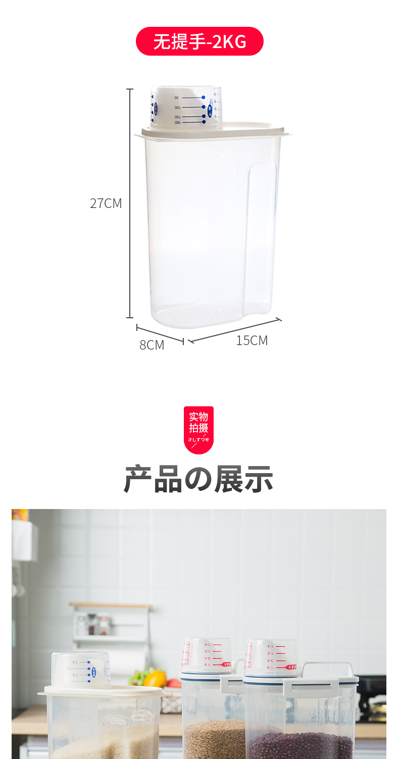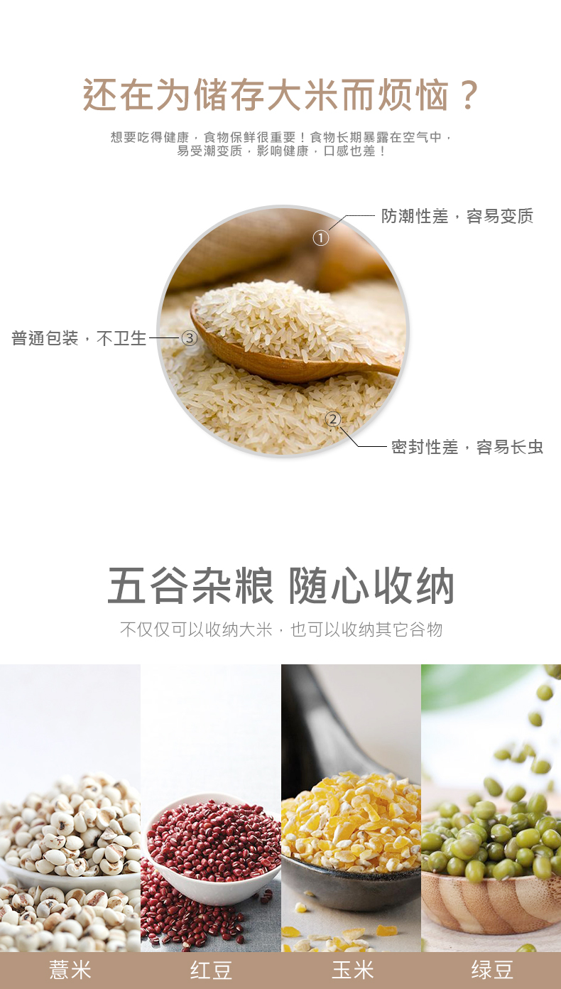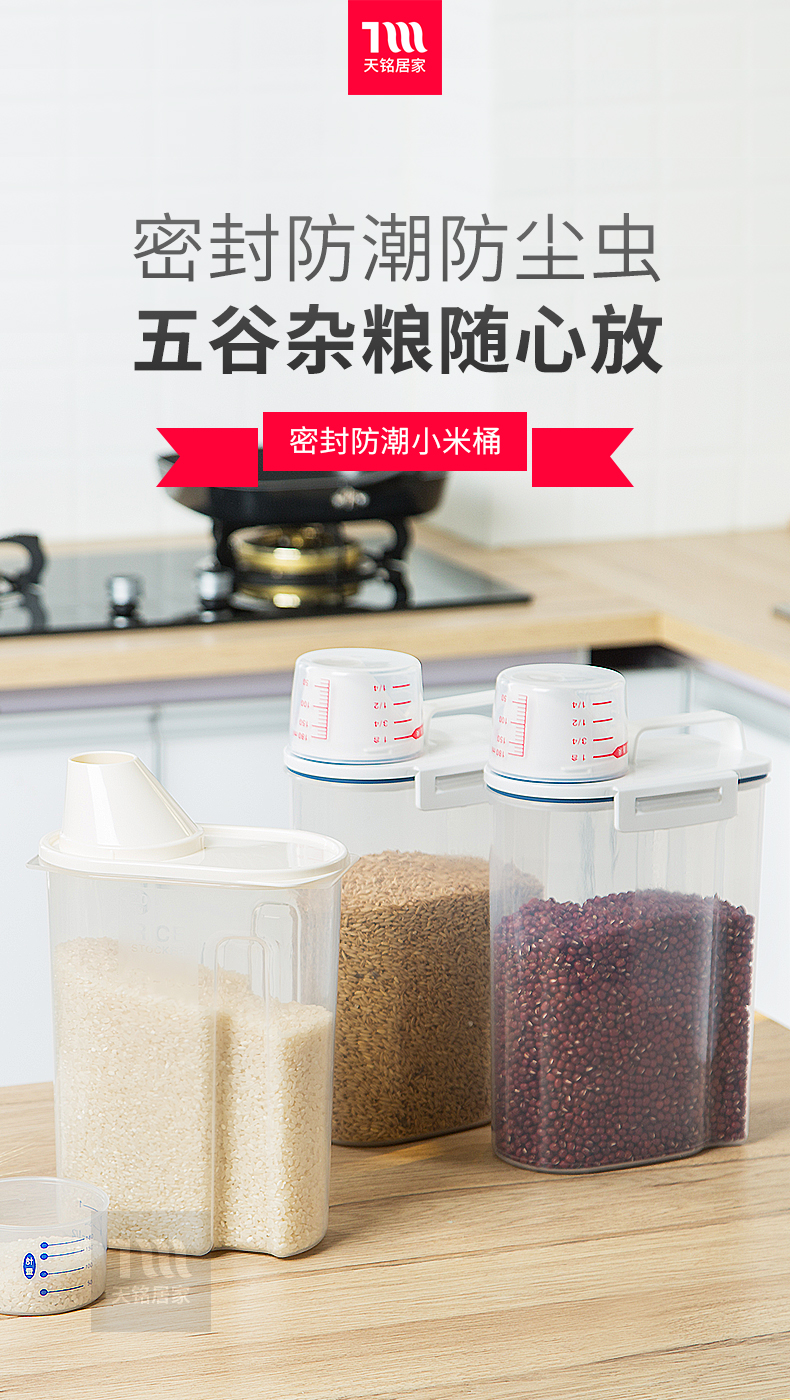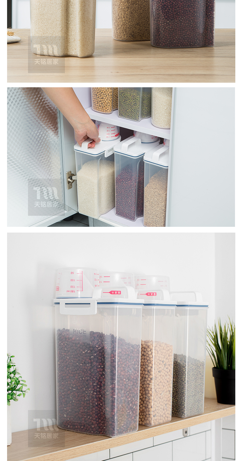 厨房收纳加厚防潮米桶,防虫环保,全新PP材质,安全健康,塑料密封,美观大方,大米面粉一桶多用,健康保鲜,帮您全方位的保存粮食。