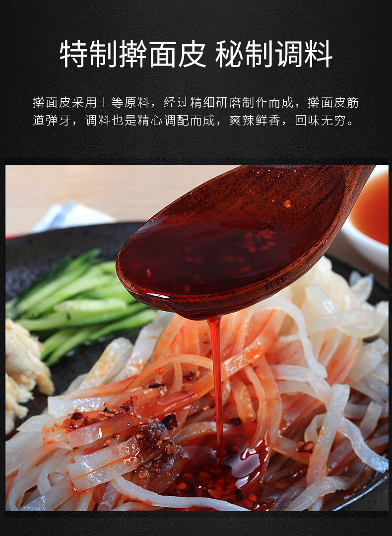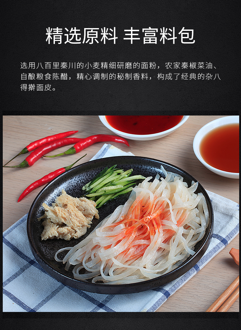 【网红凉皮,西安名小吃】300g*5袋,味美劲道,鲜香麻辣!采用北纬37°长日照筋道小麦粉,可饮用碱性水洗制,不用出门就可以吃美味的网红擀面皮啦【赠运费险】