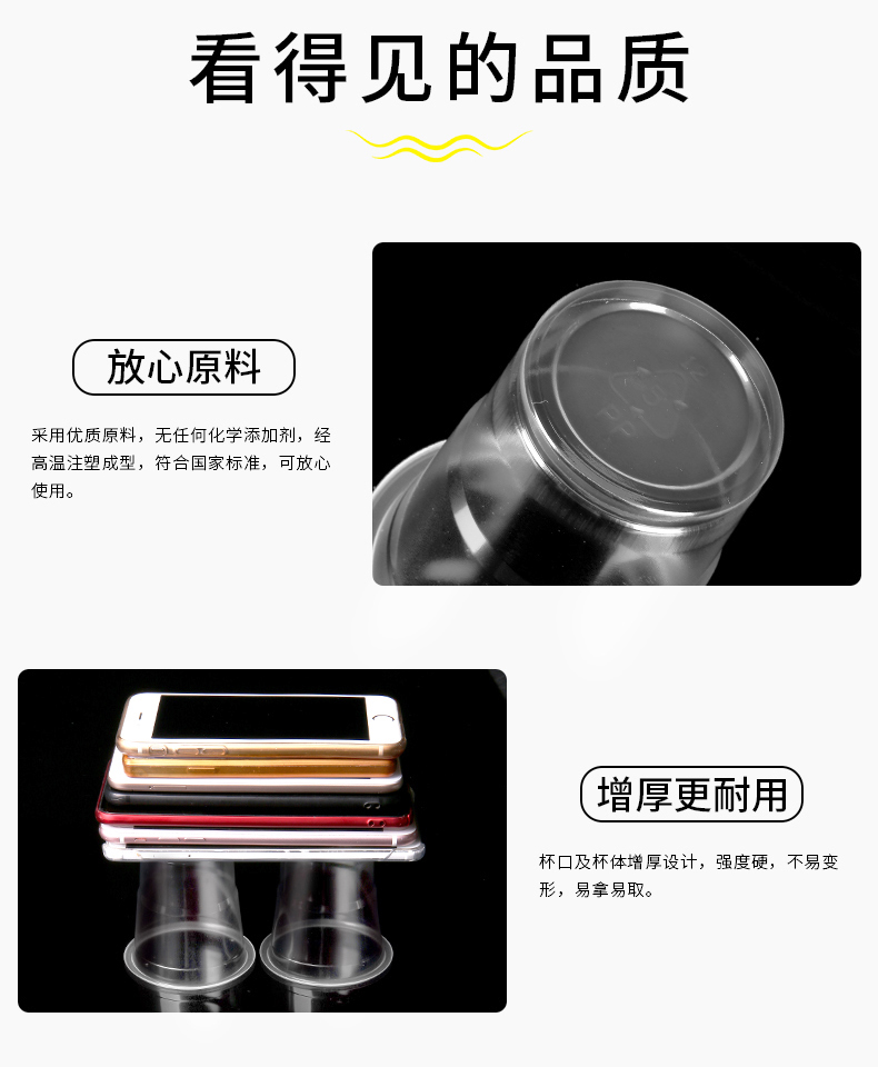 【买三送一】家里来客人水杯不够用?别慌!一次性水杯整整100只,采用食品级PP材质,环保健康,安全无异味,杯身加厚设计,耐高温不易变形,时尚美观!杯口光滑,不会刮伤嘴唇,喝着放心。